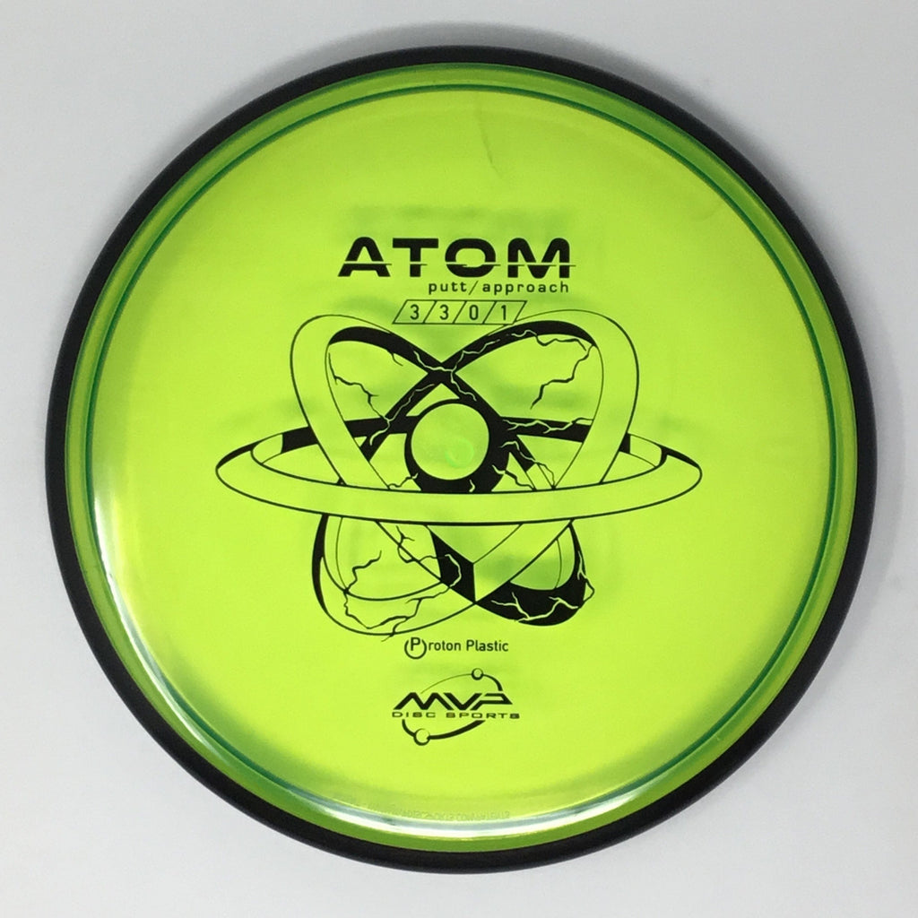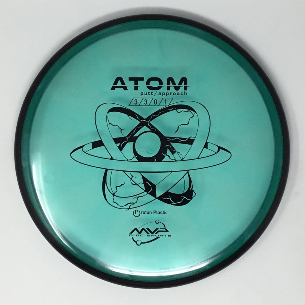 The Atom is a straight-stable putt and approach disc. The Atom is a straight flyer with enormous potential off the tee and on long approaches. Right off the shelf, the Atom has a neutral stability with just a bit of fade. In premium GYRO® plastics the Atom will retain its neutral stability indefinitely. In Electron baseline plastic the Atom will wear into an extremely straight and floaty putter, with extra tactile feedback inside the circle or in adverse weather. The Atom’s defining flight characteristic is its straight stable flight with a late subtle fade. For both high and lower power throwers, the Atom will hold a dependably straight line with a subtle fade. The Atom’s relatively large plate diameter and narrow wing design provide an exceptionally long-gliding line. This property combined with the stability neutralizing break-in of Electron and the line locking GYRO® flight phases make the Atom a remarkably controllable putter.