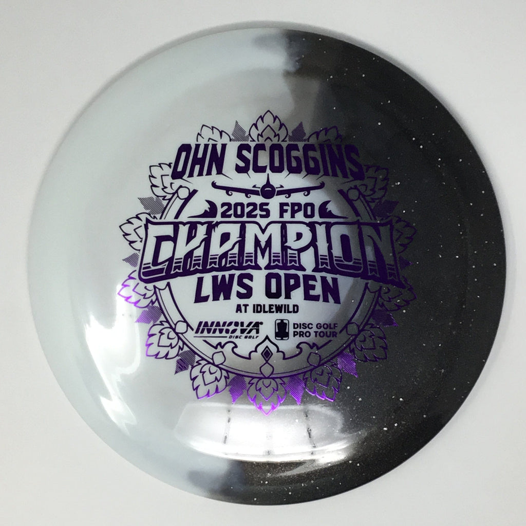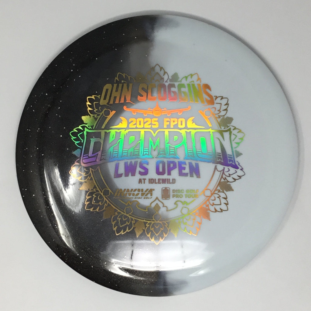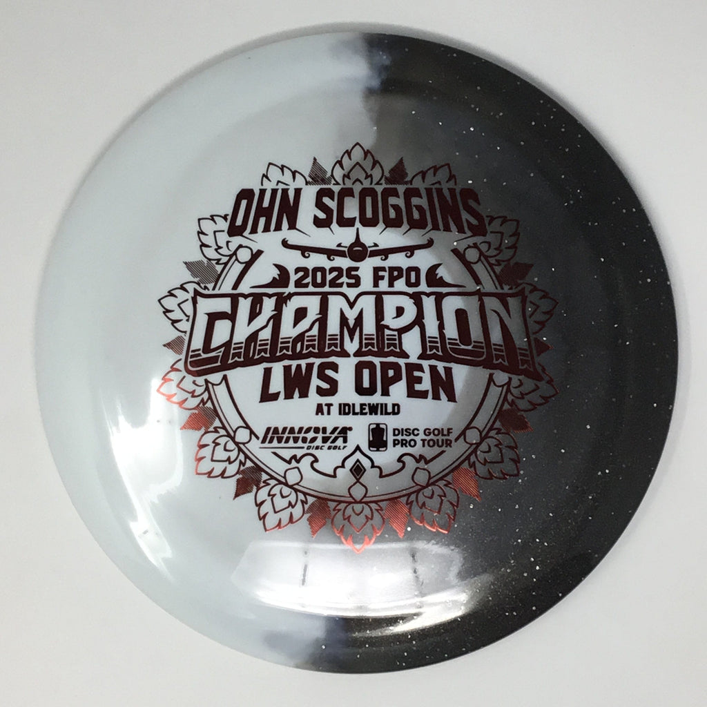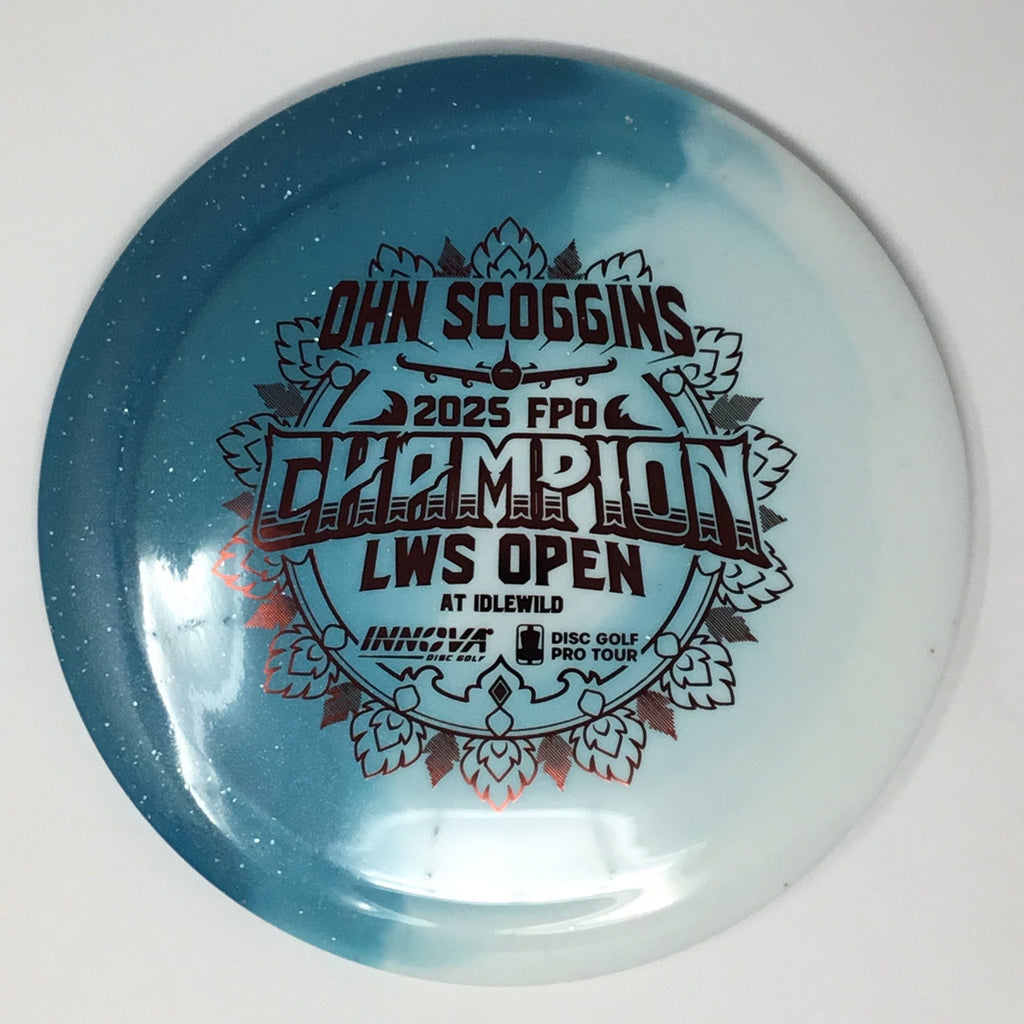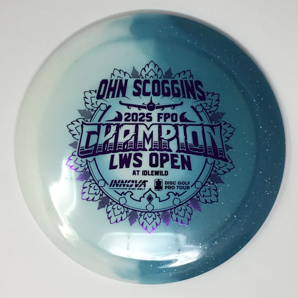 Ohn Scoggins Halo Champion Destroyer – When you watch Ohn Scoggins play it is evident that she loves to lean on the Destroyer for all of those forehand flex shots. The stability and glide that these Destroyers have is what everyone is looking for in a pure distance driver. Ohn loves to lean on the Innova Destroyer for tons of shot shapes. The Halo Champion plastic is as pretty as it gets and it has tons of durability. Ohn won the 2024 The Open at Austin and this run commemorates that awesome win. The Ohn Scoggins Halo Champion Destroyer is the perfect disc to support Ohn. Whether you are hanging it on the wall or throwing it all over the course, make sure you pick one up! A substantial portion of each sale of a Tour Series disc supports the touring efforts of Ohn Scoggins.