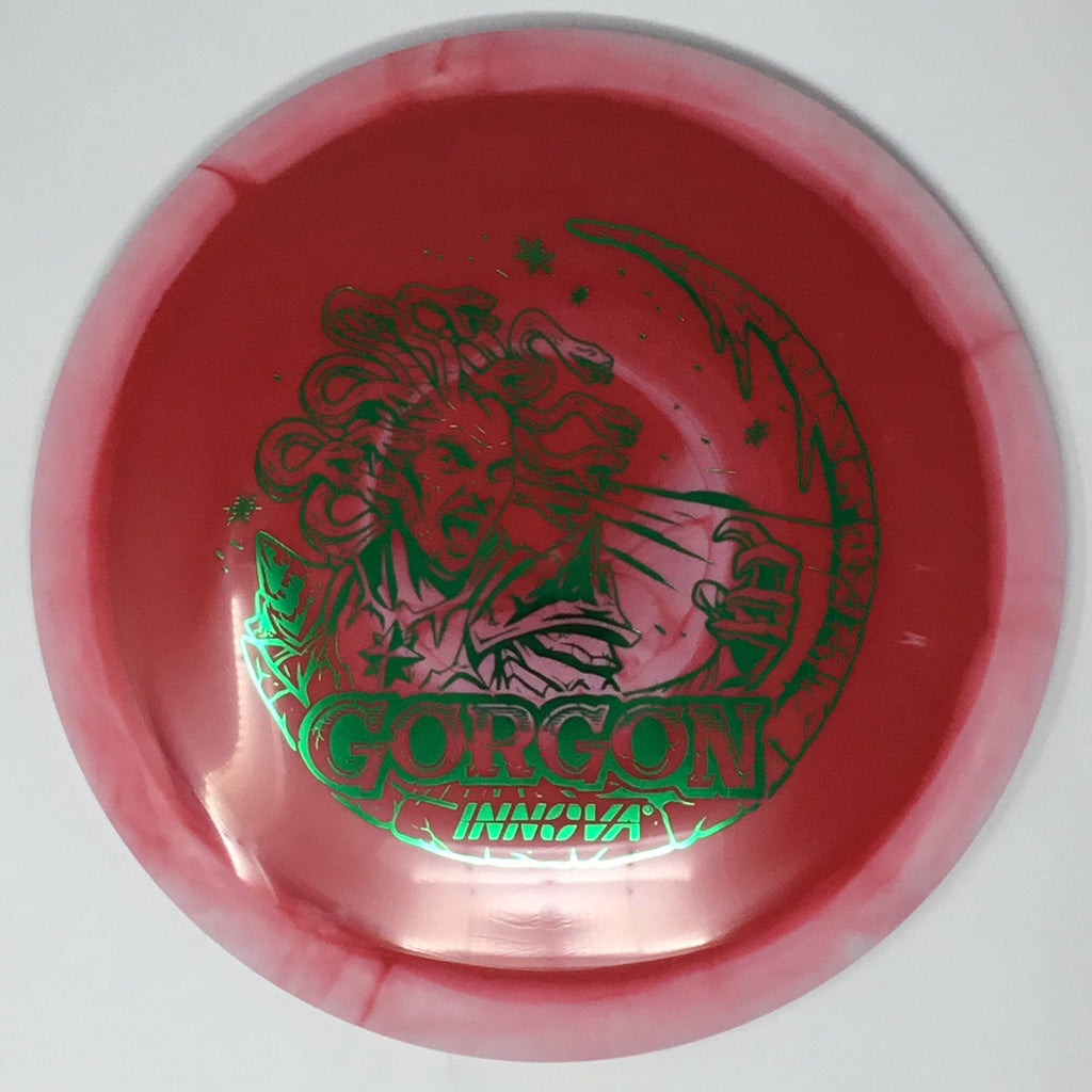 Introducing the Gorgon, a disc that merges the feel, precision, and ease of a fairway driver with the reach of a distance driver. Its flight? Arrow-straight glide with a steadfast fade, mirroring the Gorgon's unwavering gaze. Look to the GStar Gorgon for even more high speed turn. Experience the legend—drive like a deity, conquer the course.