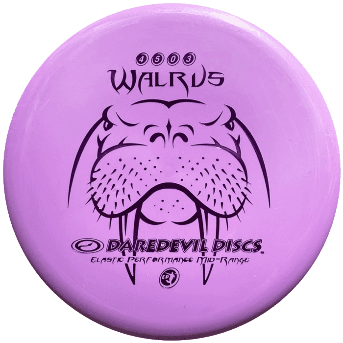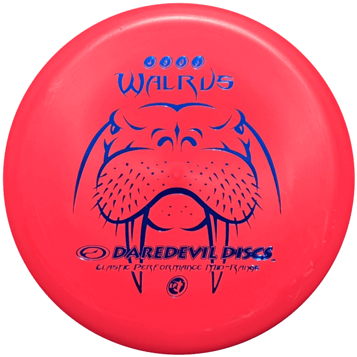 The Walrus is at your service right out of the box. Coo coo cachoo. A unique beaded mid-range using our super soft gummy ‘Elastic Performance’ plastic. It has surprising glide and if you miss your target it doesn’t skip or roll away! It does not require a lot of arm speed to perform for you on many holes, courses and lines. At full power it flies straight with a little fade. If thrown with full power anhyzer it will stay turned over. If thrown with 50% power it will be over-stable. Perfect in cold weather conditions.