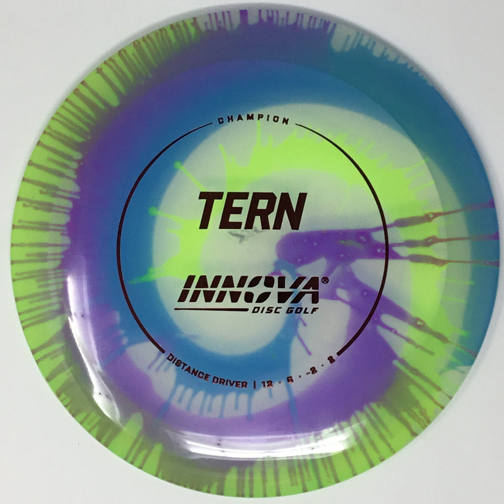 Like the name, this disc has natural turn. Similar to the Archon, the Tern is a fast slightly understable disc that is designed for long shot shaping throws. In the hands of a powerful player, it just may be one of the farthest flying discs due to the long glide and natural turn. The Champion Tern flight numbers reflect a more stable flight. (12, 6, -2, 2)