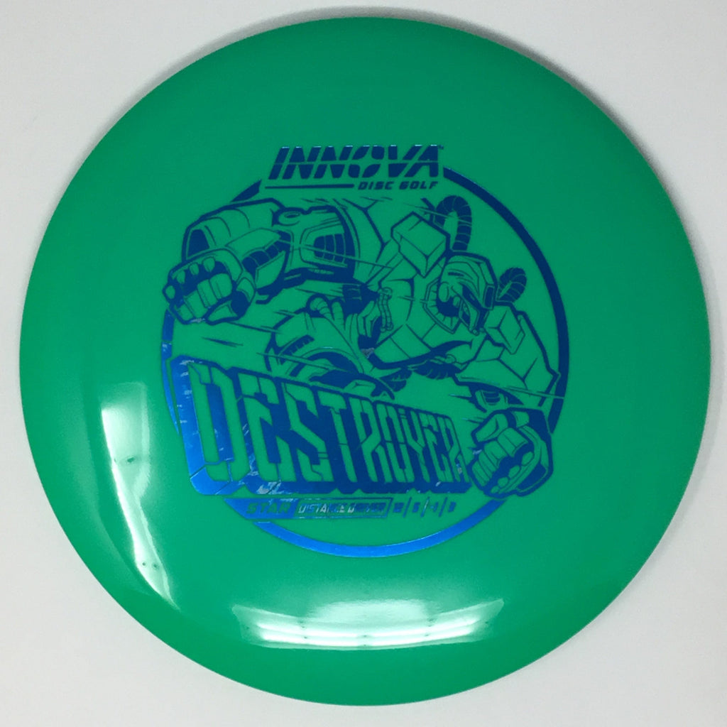 The Destroyer is a very fast stable long distance driver. This disc is much like a faster Wraith, but with a little more high and low speed stability. Great disc for sidearm throwers and those with lots of power. Can handle headwinds and throws with off axis torque. Not suggested for beginning players.