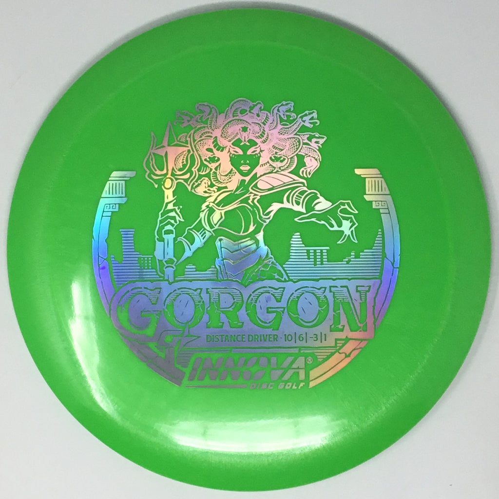 Introducing the Gorgon, a disc that merges the feel, precision, and ease of a fairway driver with the reach of a distance driver. Its flight? Arrow-straight glide with a steadfast fade, mirroring the Gorgon's unwavering gaze. Look to the GStar Gorgon for even more high speed turn. Experience the legend—drive like a deity, conquer the course.