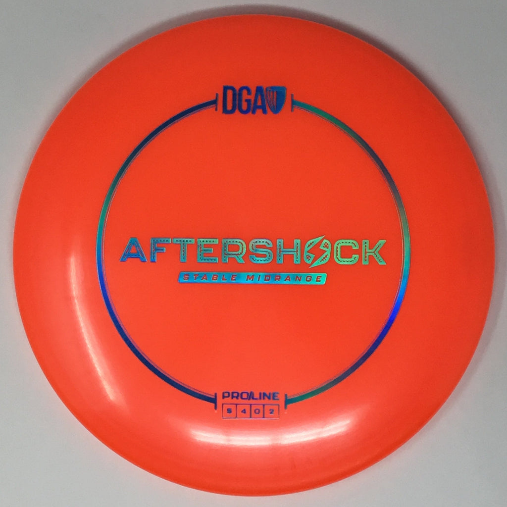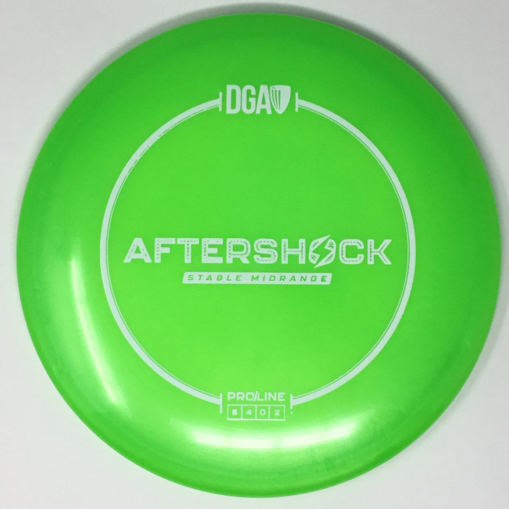 The DGA Aftershock midrange disc is stable to slightly overstable and will hold reliable lines for players of all skill levels. This utility midrange can be thrown on straight flight paths as well as trustworthy hyzer lines. Use the Aftershock off the tee or for pinpoint approach shots. The Aftershock is a staple midrange disc in the DGA lineup and players of any skill level should have one in their bag.