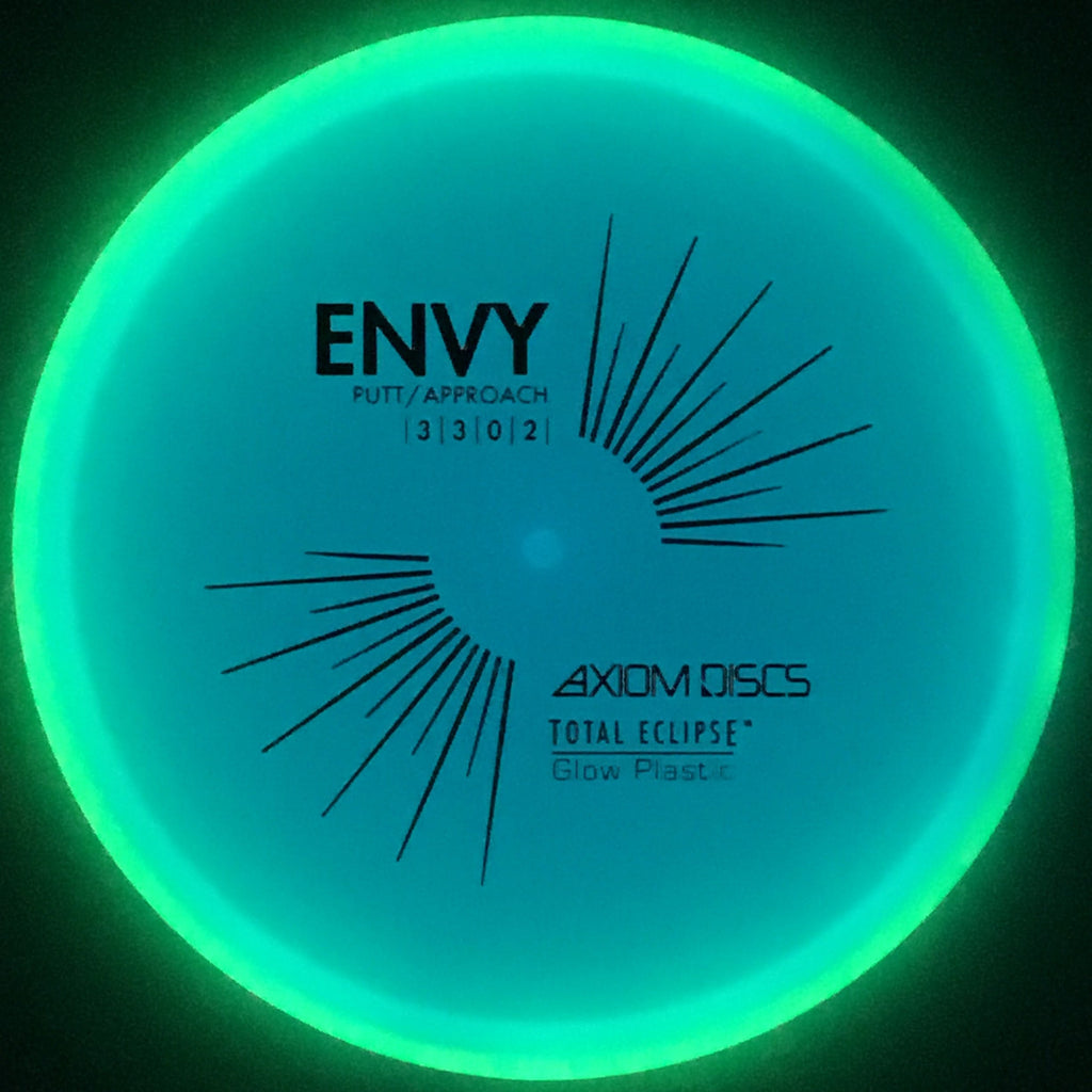 The Envy is a slightly overstable putt and approach disc. The Envy has a smooth modern feel that fits in the hand perfectly, lending confidence for both putt and approach duties. The Envy exhibits reliable high-speed stability and a minimal fade. With a slightly lower profile and cruising speed than the Ion and Anode class, the Envy is a uniquely “lid-like” stable putter. The Envy’s defining flight characteristic is its ability to hold a straight flight for power throwers, but also be a dependably stable approach disc for lower power throwers. Its medium depth offers a healthy balance of straight flight paired with an easy clean release. While its flight stability is largely similar to the MVP Ion, the Envy offers an entirely new feel. Its versatile stability on any type of shot will help the Envy find its way into every Axiom thrower’s bag.