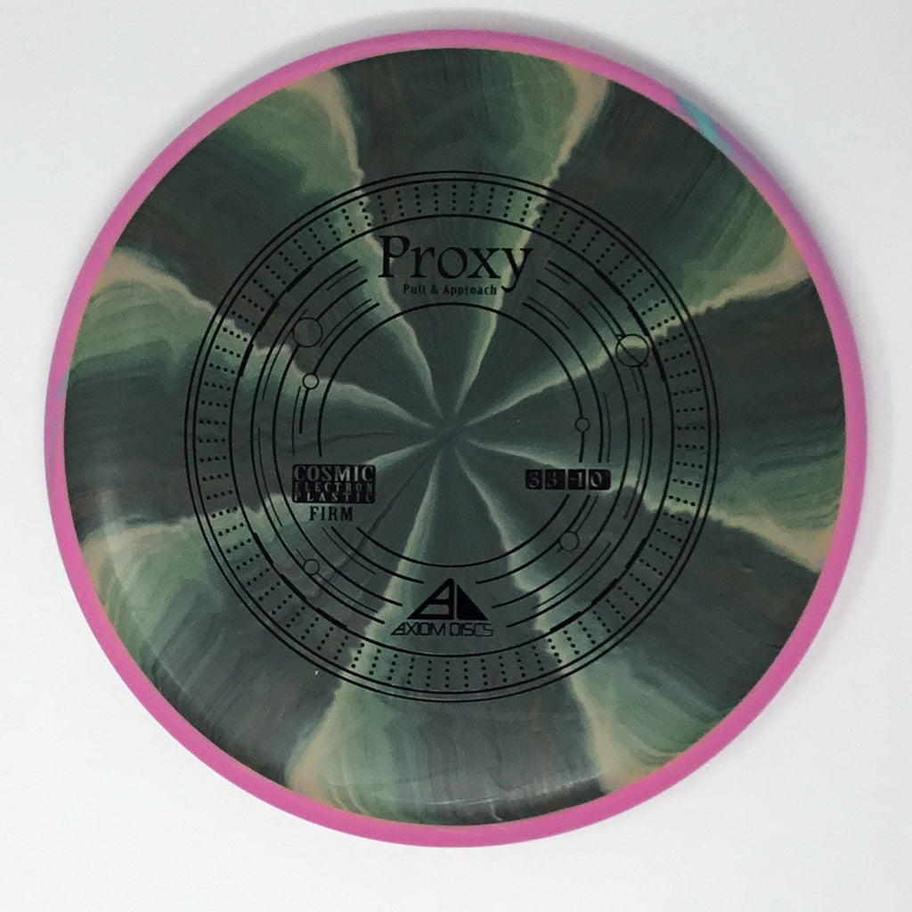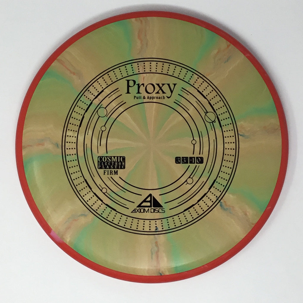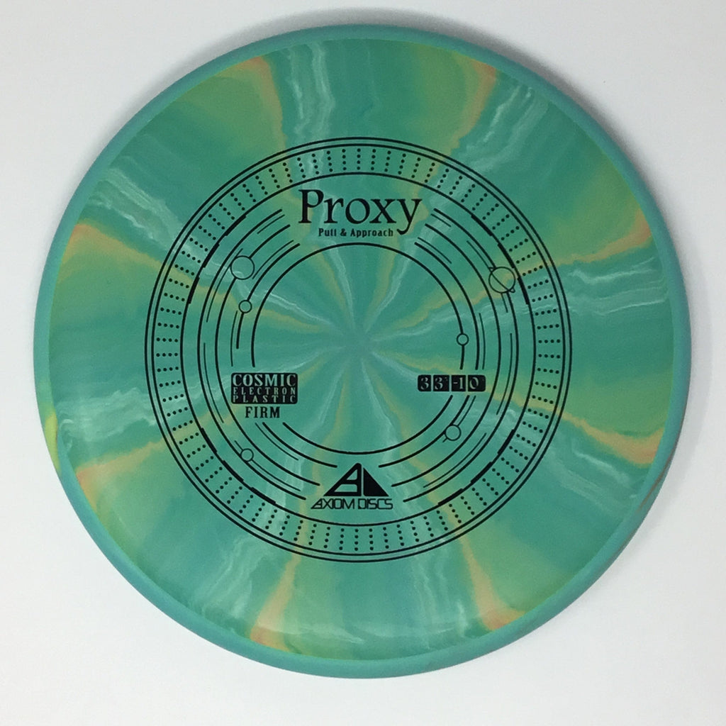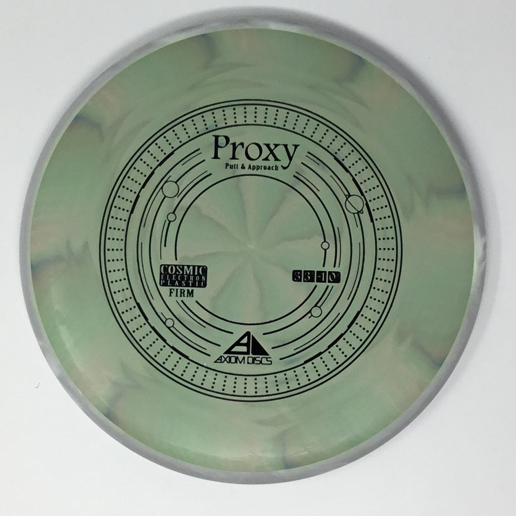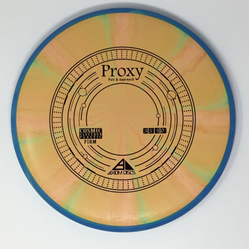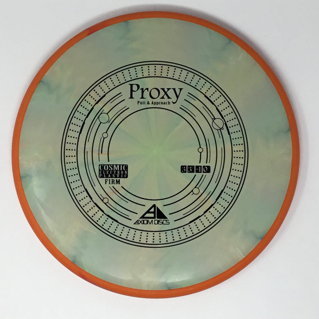 The Proxy is a straight-stable putt and approach disc. The Proxy shares the Envy mold’s core, lending the same low-profile feel and solid grip, along with a short wing width and wide flight plate diameter for superior glide. The Proxy sets itself apart from the Envy with a remarkably straight forward-fading finish. A bit of high-speed turn potential allows the Proxy’s lines to be manipulated over a broad range of power and helps less powerful throwers achieve straight putter drives. The Proxy’s defining flight characteristic is its ability to hold a straight flight at high speeds, but demonstrate the low-speed straight properties of a much more understable model’s ending stage. The Proxy is designed to exhibit the neutral straight-flying characteristic of classic “main” putters. Rather than requiring an extra wind-resistant overstable complement solely for harder throws, the Proxy is able to lock in with a similar high-speed stability as the Envy. Its neutral stability at a wide range of speeds will help the Proxy find its way into every Axiom thrower’s bag.