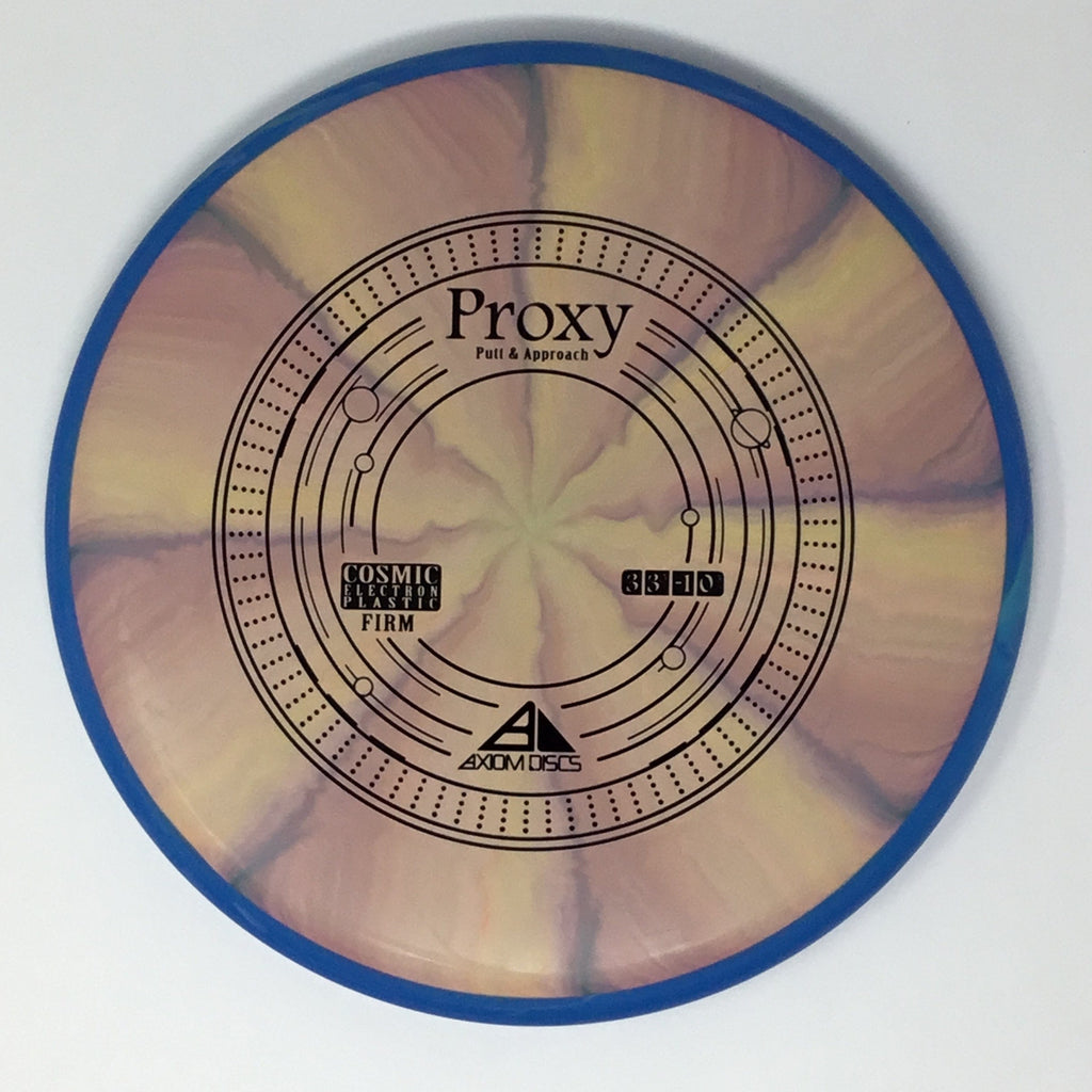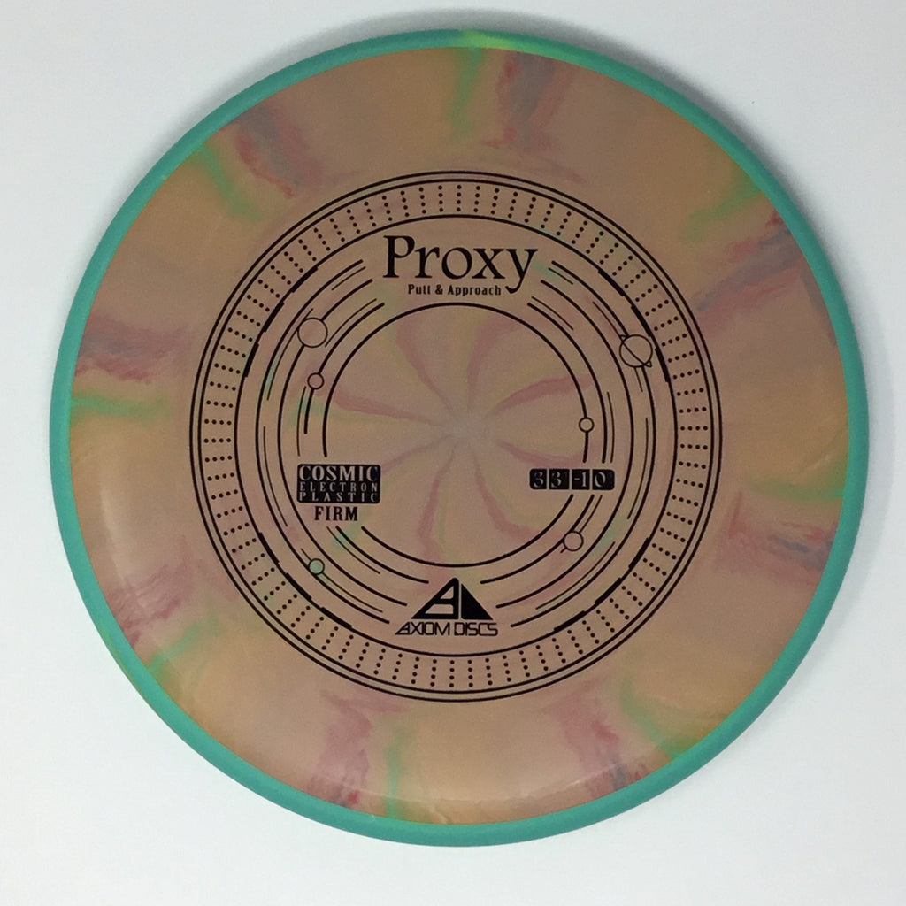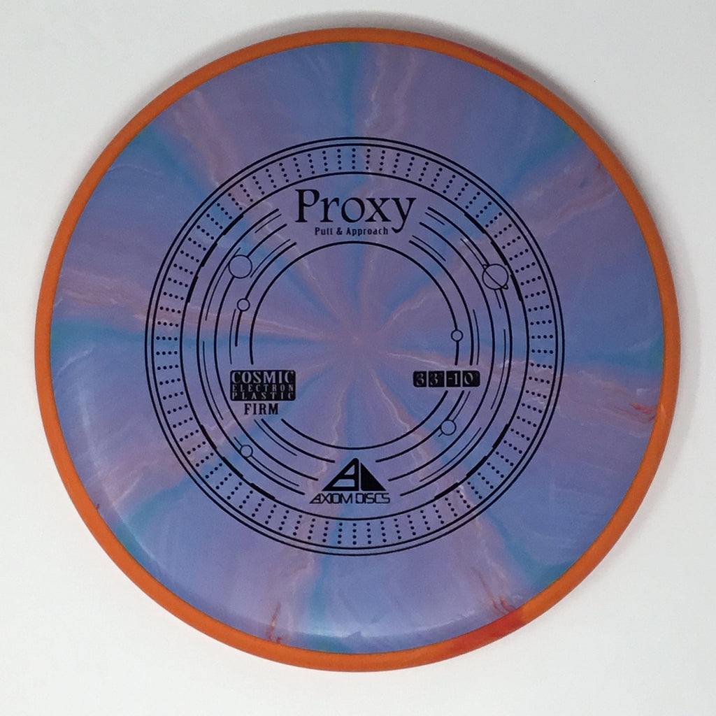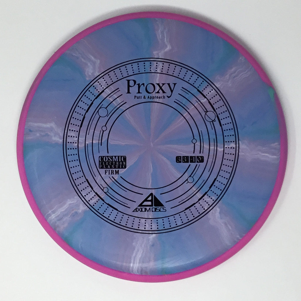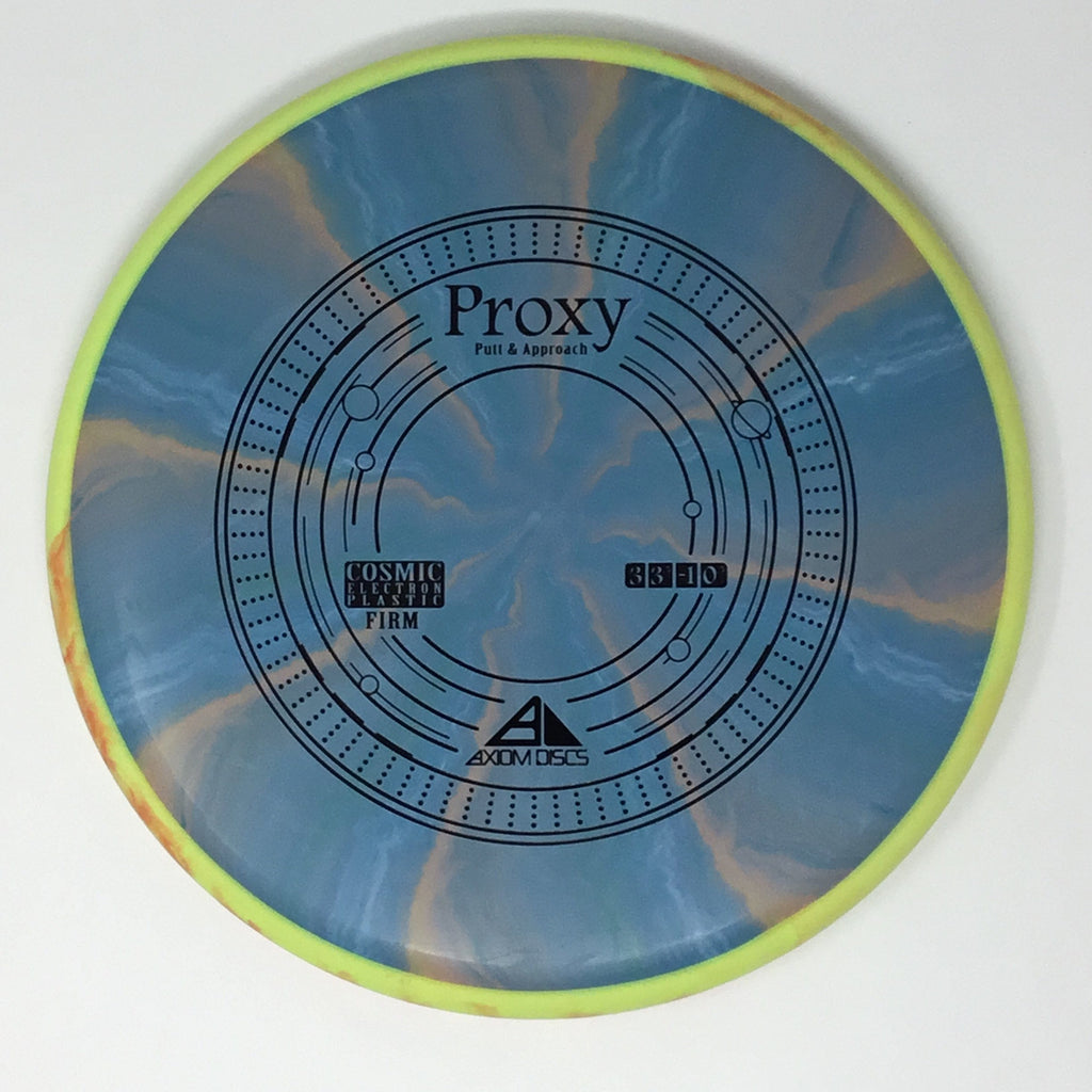 The Proxy is a straight-stable putt and approach disc. The Proxy shares the Envy mold’s core, lending the same low-profile feel and solid grip, along with a short wing width and wide flight plate diameter for superior glide. The Proxy sets itself apart from the Envy with a remarkably straight forward-fading finish. A bit of high-speed turn potential allows the Proxy’s lines to be manipulated over a broad range of power and helps less powerful throwers achieve straight putter drives. The Proxy’s defining flight characteristic is its ability to hold a straight flight at high speeds, but demonstrate the low-speed straight properties of a much more understable model’s ending stage. The Proxy is designed to exhibit the neutral straight-flying characteristic of classic “main” putters. Rather than requiring an extra wind-resistant overstable complement solely for harder throws, the Proxy is able to lock in with a similar high-speed stability as the Envy. Its neutral stability at a wide range of speeds will help the Proxy find its way into every Axiom thrower’s bag.