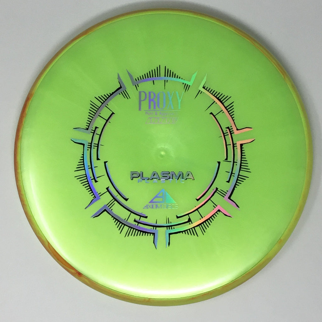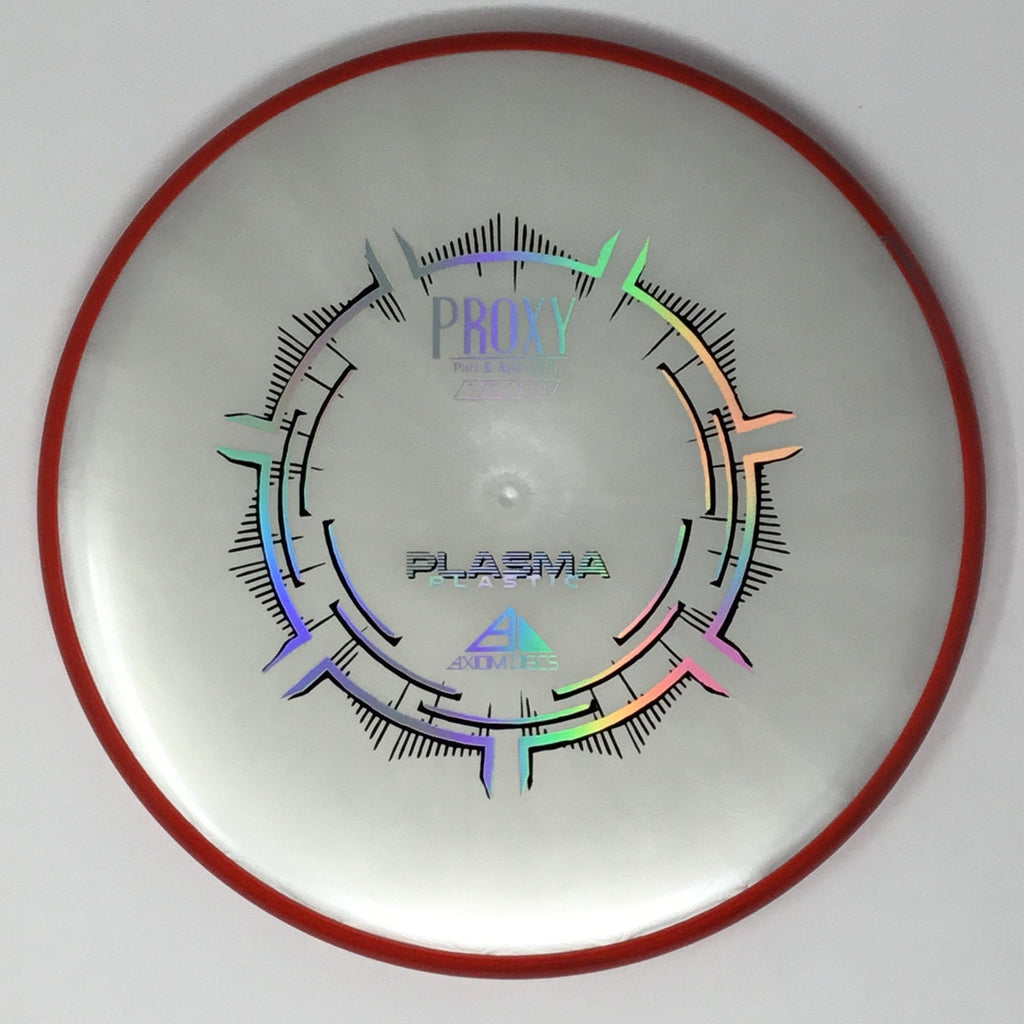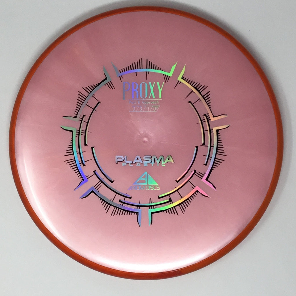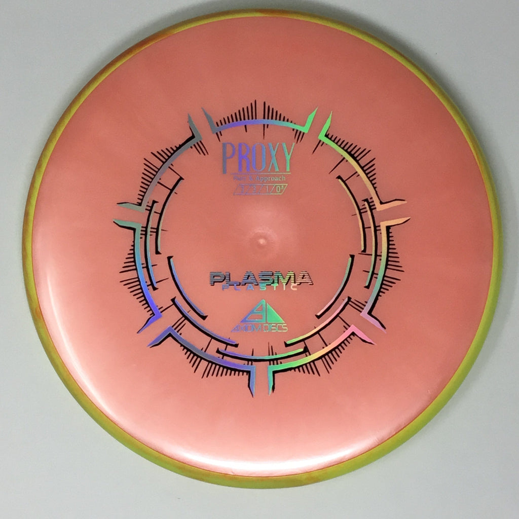 The Proxy is a straight-stable putt and approach disc. The Proxy shares the Envy mold’s core, lending the same low-profile feel and solid grip, along with a short wing width and wide flight plate diameter for superior glide. The Proxy sets itself apart from the Envy with a remarkably straight forward-fading finish. A bit of high-speed turn potential allows the Proxy’s lines to be manipulated over a broad range of power and helps less powerful throwers achieve straight putter drives. The Proxy’s defining flight characteristic is its ability to hold a straight flight at high speeds, but demonstrate the low-speed straight properties of a much more understable model’s ending stage. The Proxy is designed to exhibit the neutral straight-flying characteristic of classic “main” putters. Rather than requiring an extra wind-resistant overstable complement solely for harder throws, the Proxy is able to lock in with a similar high-speed stability as the Envy. Its neutral stability at a wide range of speeds will help the Proxy find its way into every Axiom thrower’s bag.