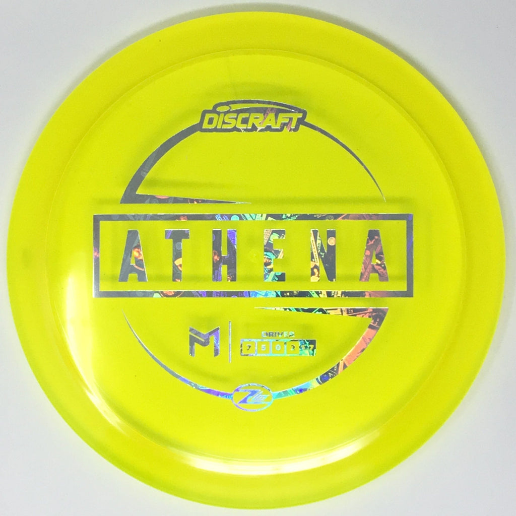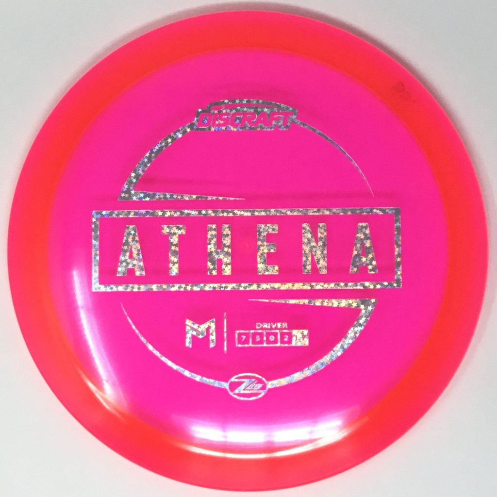 The Athena is a straight to stable fairway driver and is the 6th disc in Paul McBeth's signature lineup. The Athena has been described by McBeth as a slower Anax. The Athena is a 7-speed driver with a Discraft stability rating of 1.7. This is the first release of the Athena in UV Z plastic which changes color in sunlight.