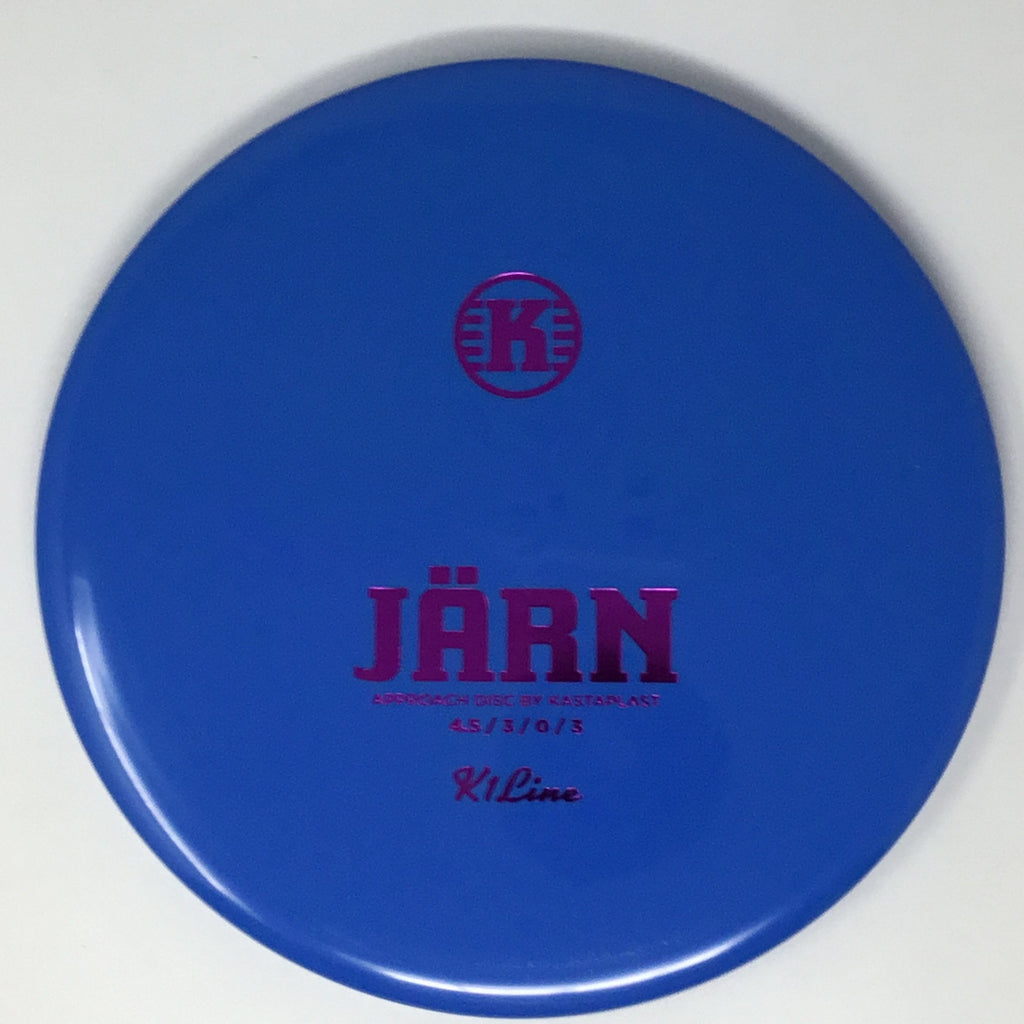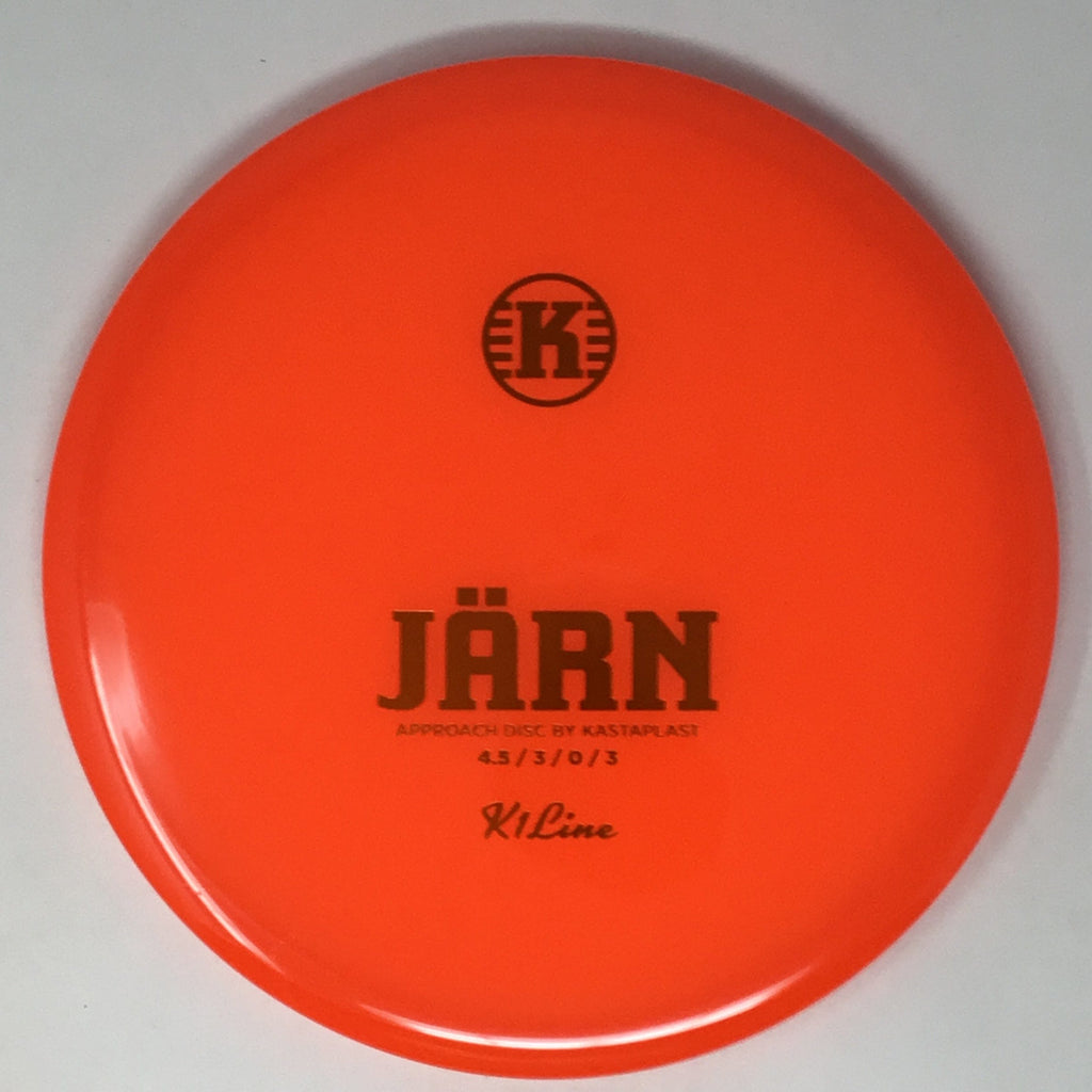 Play smart with JÄRN. Being overstable enough to beat the headwinds and fade predictably, this disc is dedicated to the controlled approach game. Järn’s flight pattern makes it just as competent for touchy flex shots as for flat-out hyzers. Its low profile makes it easy to grip and to release. Järn is Swedish for iron.