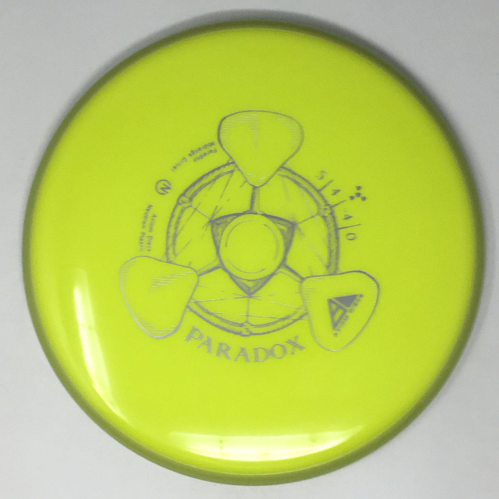 Among the most understable midranges ever produced, the Paradox is capable of some truly unique lines. High-power players will be using the Paradox for utility shots like rollers, low speed flip ups, massive nose up anhyzers, and other touch shots. Low-power players will find the Paradox is a great first midrange for straight or hyzer-flip flights. Whether you’re using it as a teaching tool, or a utility disc for woods golf, the Paradox’s understability won’t let you down. If you need it to turn, the Paradox is the disc for you!