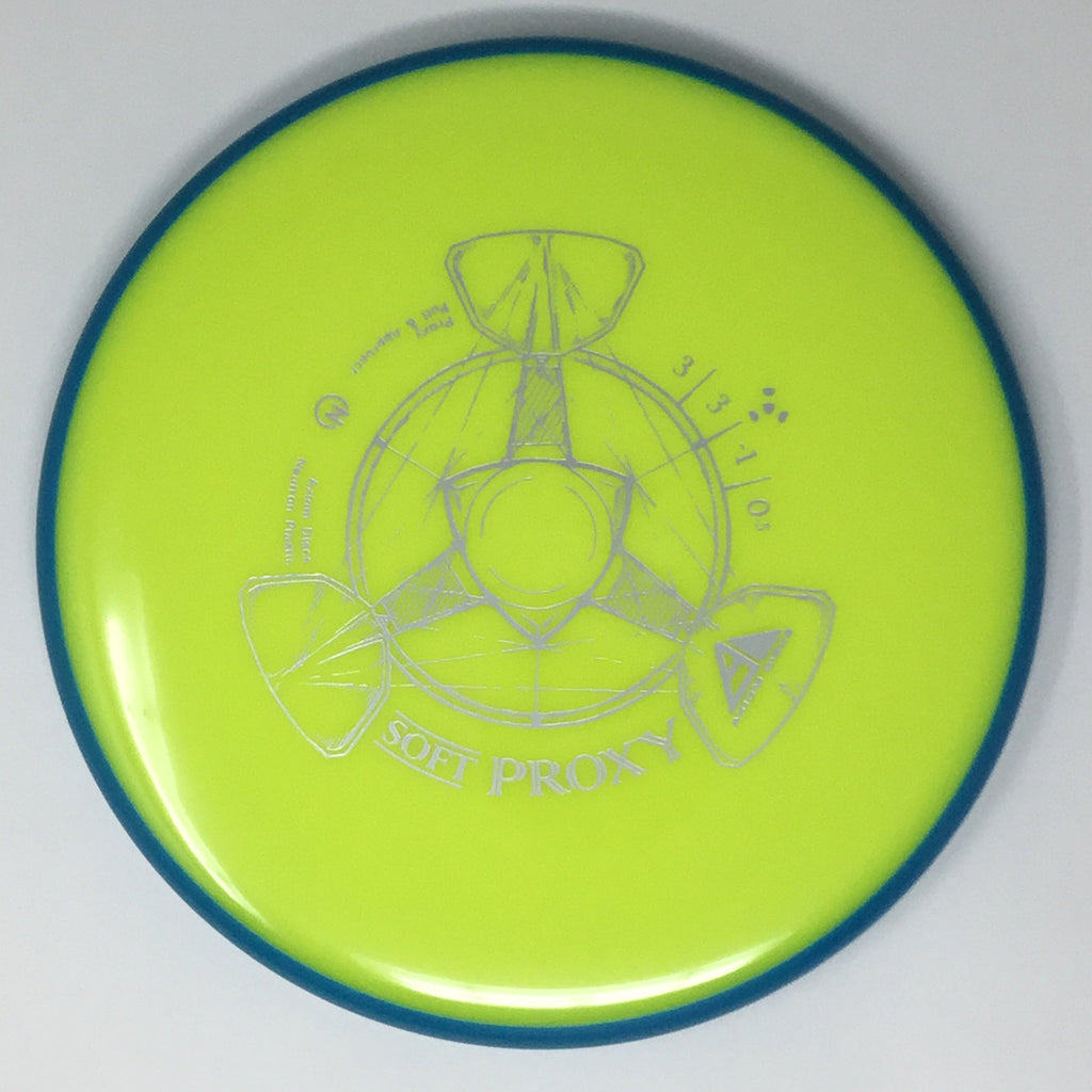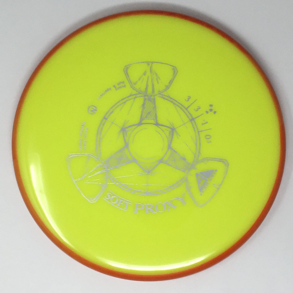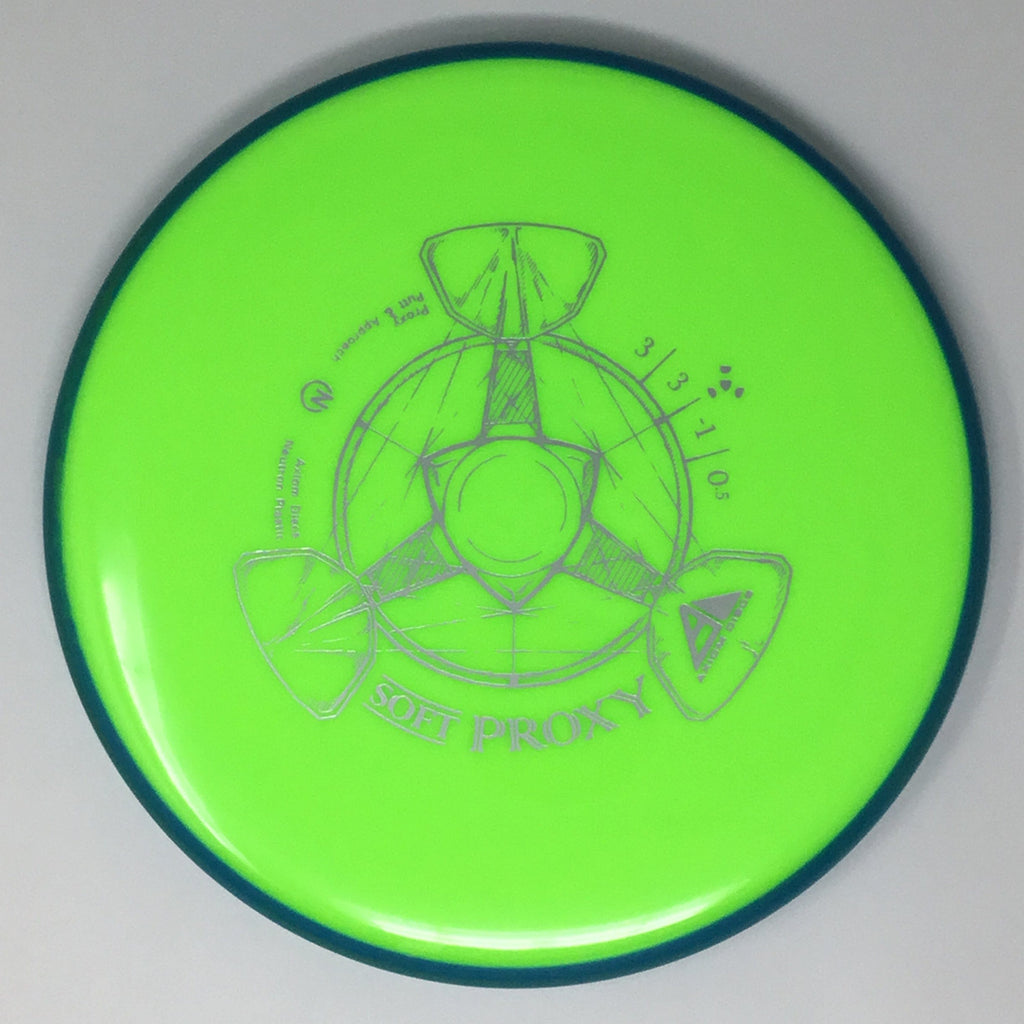The Proxy is designed to exhibit the neutral straight-flying characteristic of classic “main” putters. Rather than requiring an extra wind-resistant overstable complement solely for harder throws, the Proxy is able to lock in with a similar high-speed stability as the Envy. Its neutral stability at a wide range of speeds will help the Proxy find its way into every Axiom thrower’s bag.