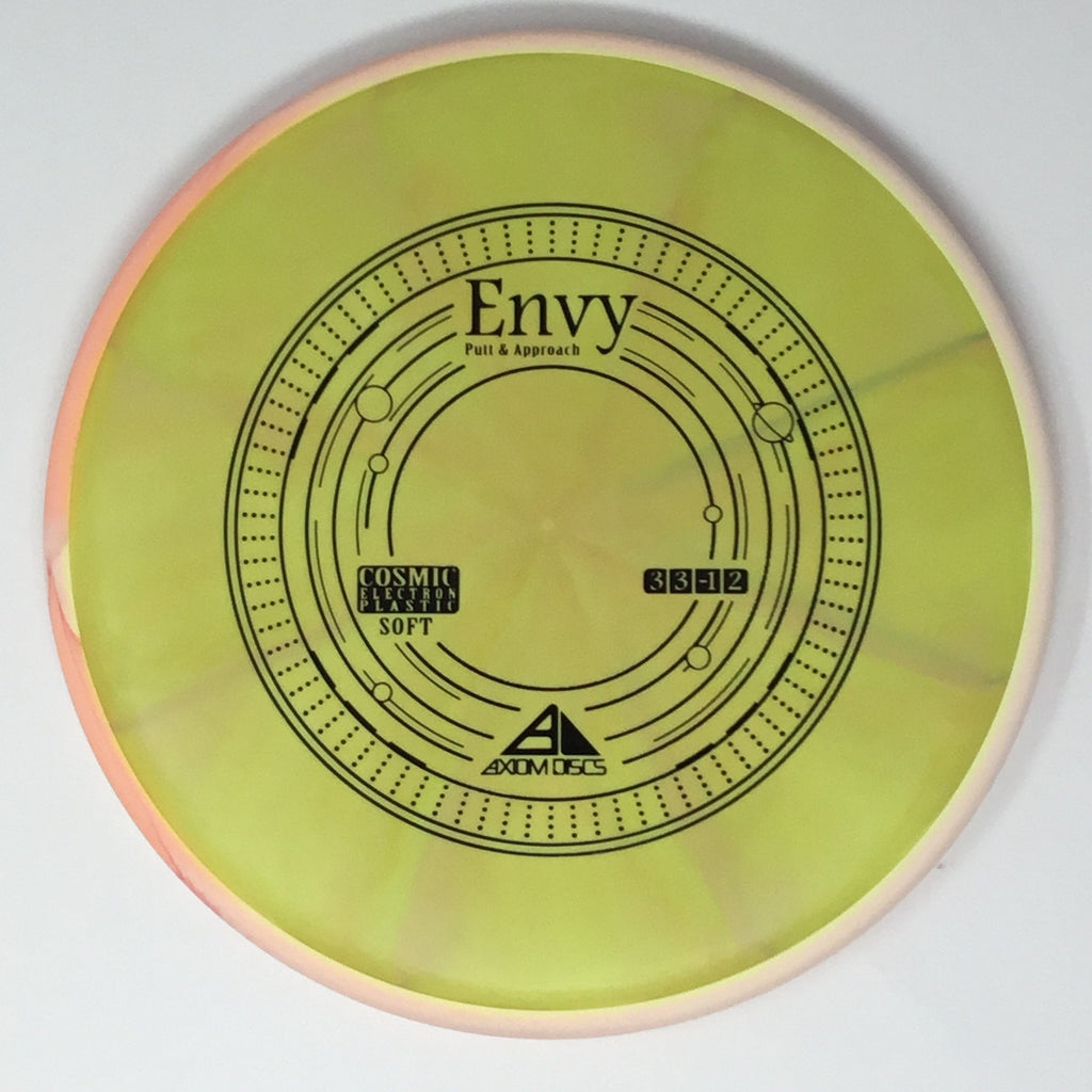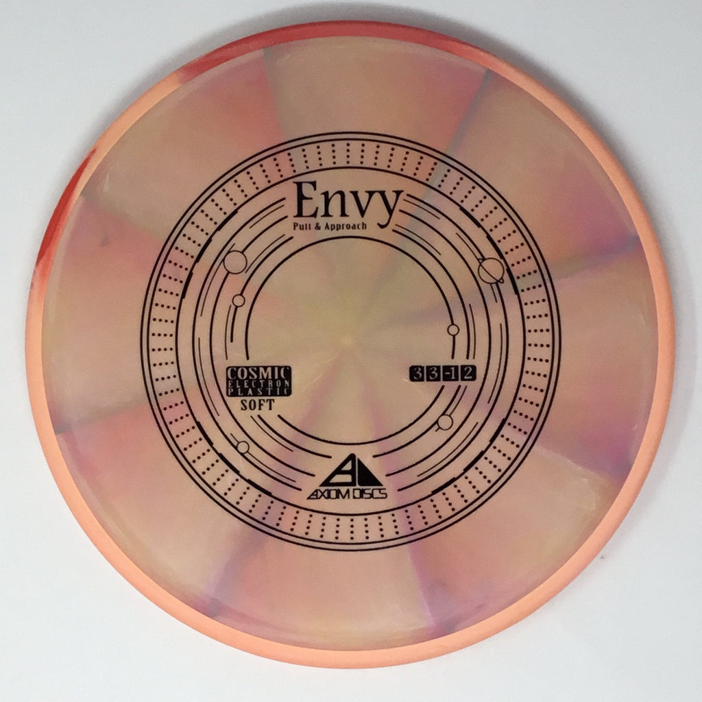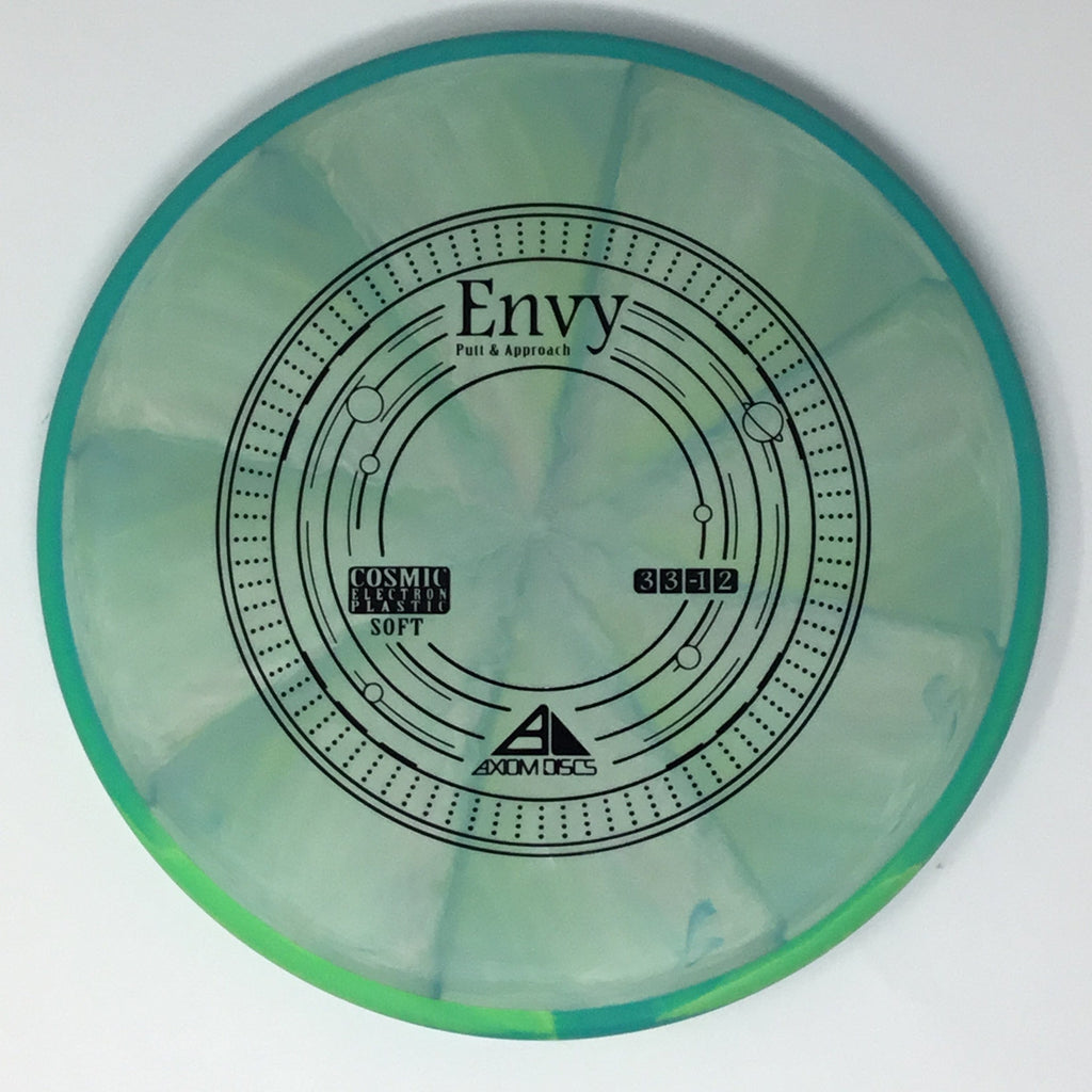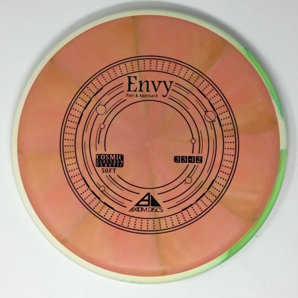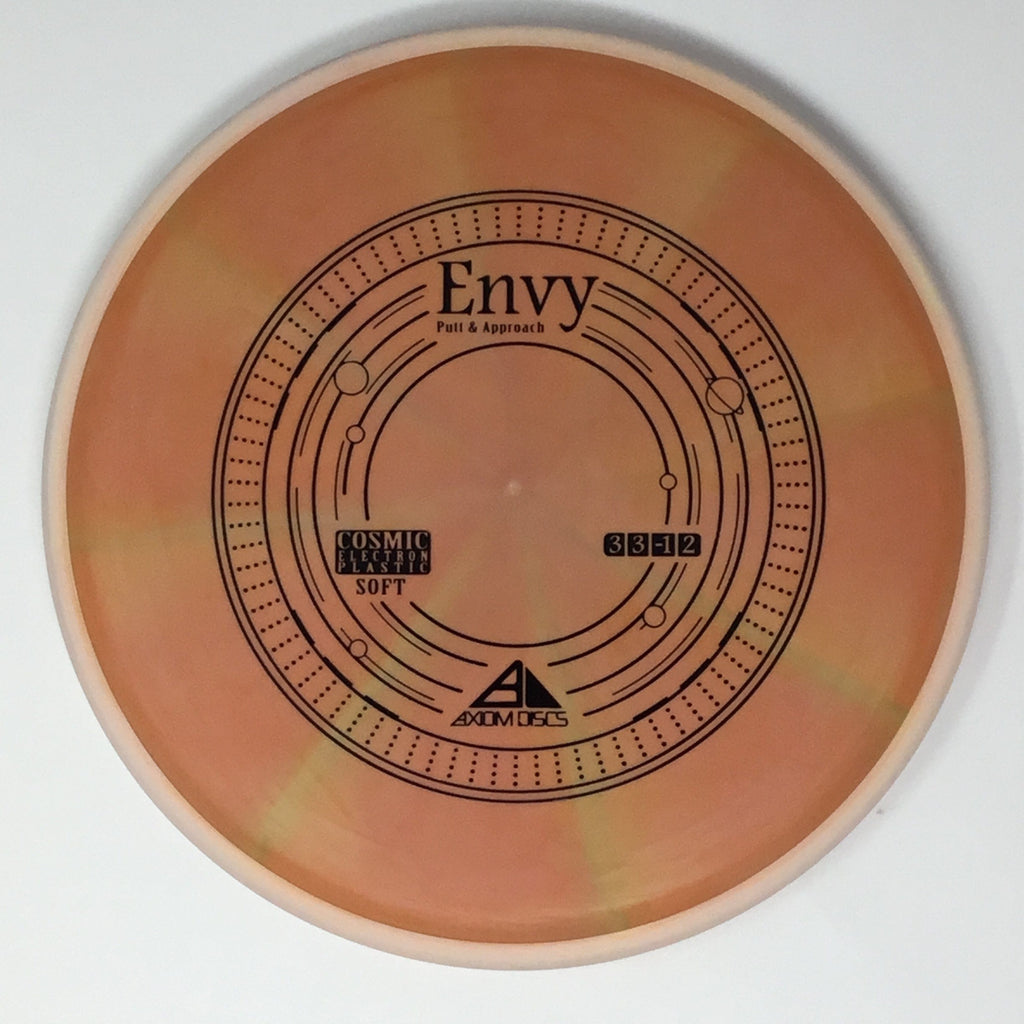 The Envy is a slightly overstable putt and approach disc. The Envy has a smooth modern feel that fits in the hand perfectly, lending confidence for both putt and approach duties. The Envy exhibits reliable high-speed stability and a minimal fade. With a slightly lower profile and cruising speed than the Ion and Anode class, the Envy is a uniquely “lid-like” stable putter. The Envy’s defining flight characteristic is its ability to hold a straight flight for power throwers, but also be a dependably stable approach disc for lower power throwers. Its medium depth offers a healthy balance of straight flight paired with an easy clean release. While its flight stability is largely similar to the MVP Ion, the Envy offers an entirely new feel. Its versatile stability on any type of shot will help the Envy find its way into every Axiom thrower’s bag.