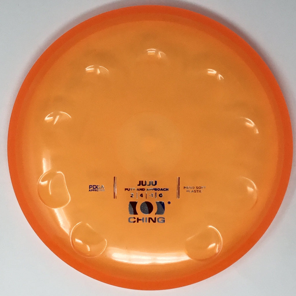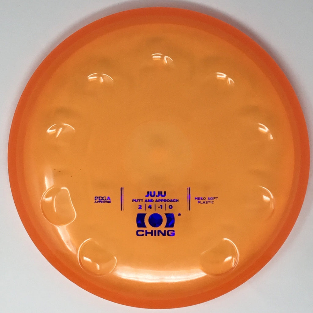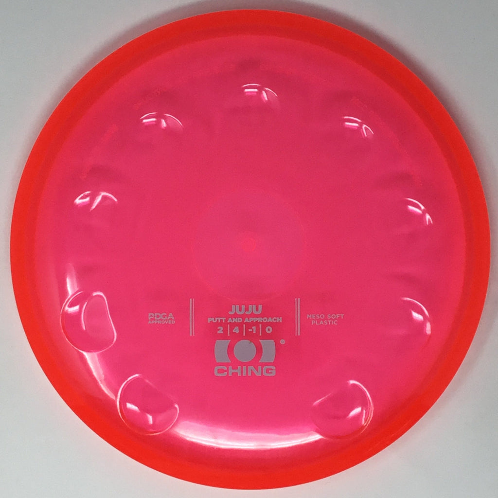 The Juju is an ultra-straight putter. It has innovative thumb tracks around the rim that allow you to adjust your grip in order to adjust the flight of the disc. Like the Precision midrange, the thumb tracks are located at different levels along the rim, and an empty slot is left for when the thumb track is not needed.