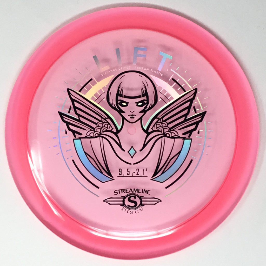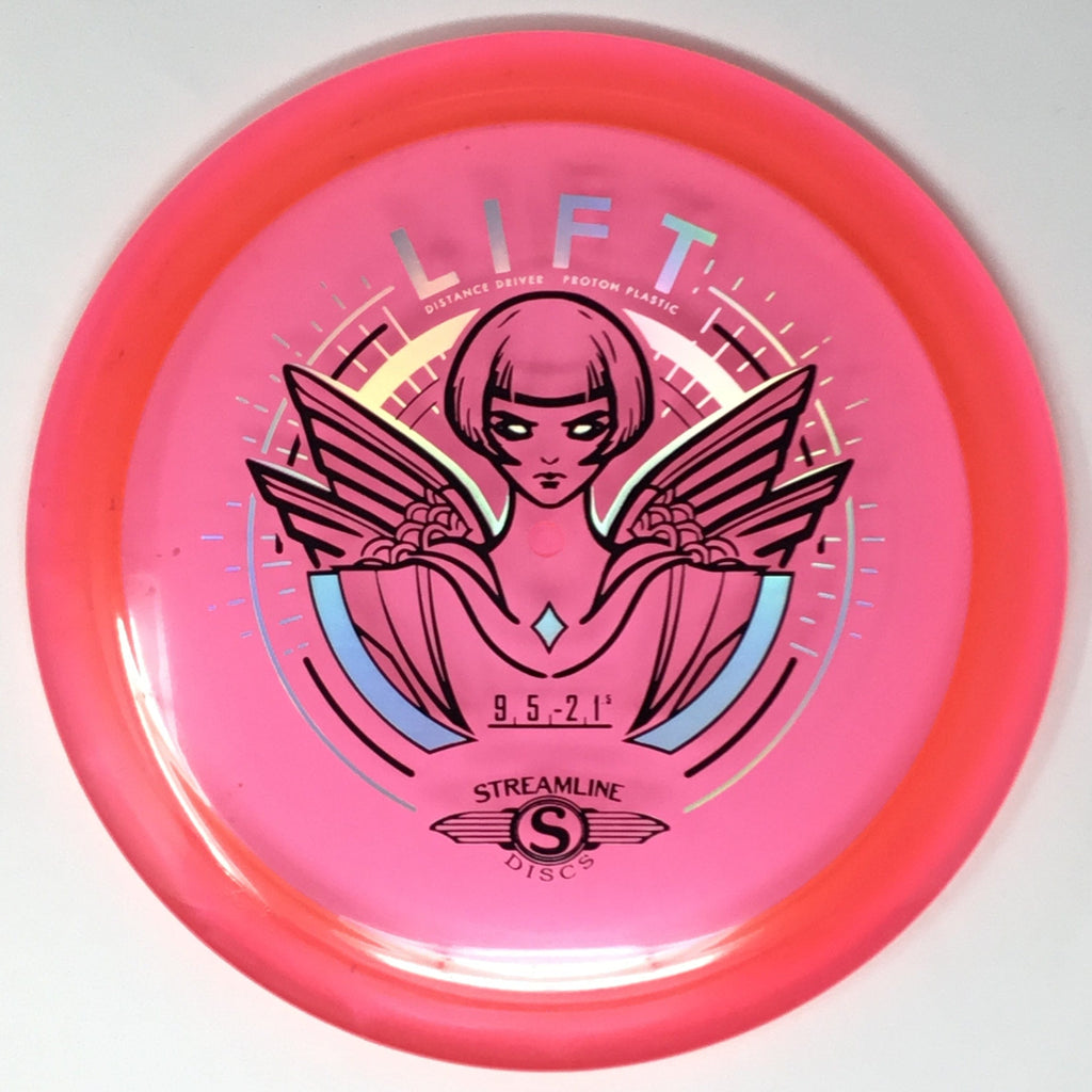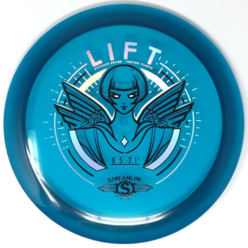 Prepare for liftoff with the new distance driver from Streamline, the Lift! The Lift is Streamline’s new understable distance driver, designed as a straight flying driver with a comfortable rim size and slightly domed profile. The Lift is the second disc along with the Flare in the new 19mm Speed 9 Driver Class for Streamline. In Streamline Neutron Plastic the Lift has premium grip and durability, along with a huge variety of Neutron and Cosmic Neutron color options. For controllable flight lines with effortless glide, activate Bernoulli’s principle with the new Streamline Neutron and Cosmic Neutron Lift!