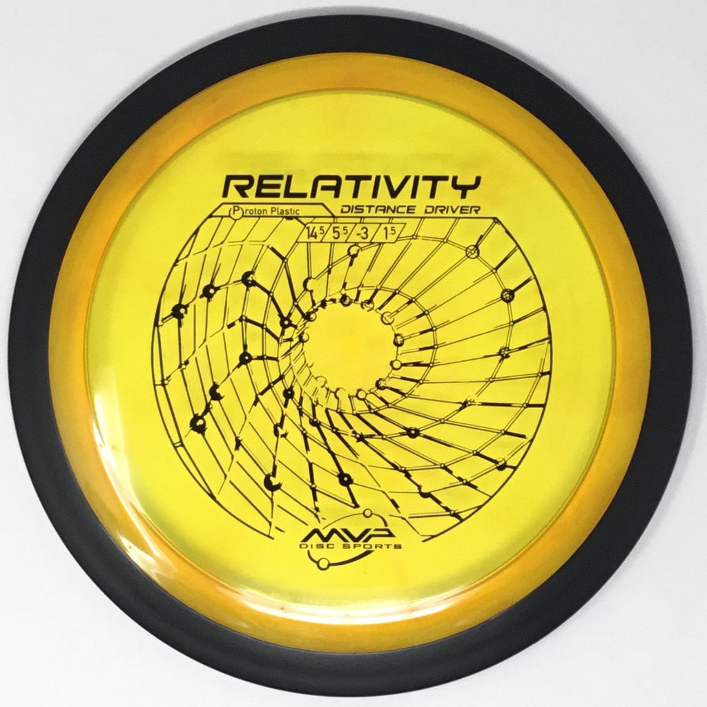Relativity is an understable high-speed distance driver. The Relativity has a useful understable profile that allows controllable turnovers, rollers, and high line distance shots. While its net landing spot will normally be to the understable side of its launch point, the Relativity’s high speed design forces an ending fade that nicely pans out of turnovers and high lines to prevent unwanted rollers. High-speed driver flight is relative to technique and power, and the Relativity is no exception. Expert throwers will find the Relativity highly manipulable in flight by tweaking release angle and height, while average and developing throwers will benefit from its forgiving responsiveness to power.