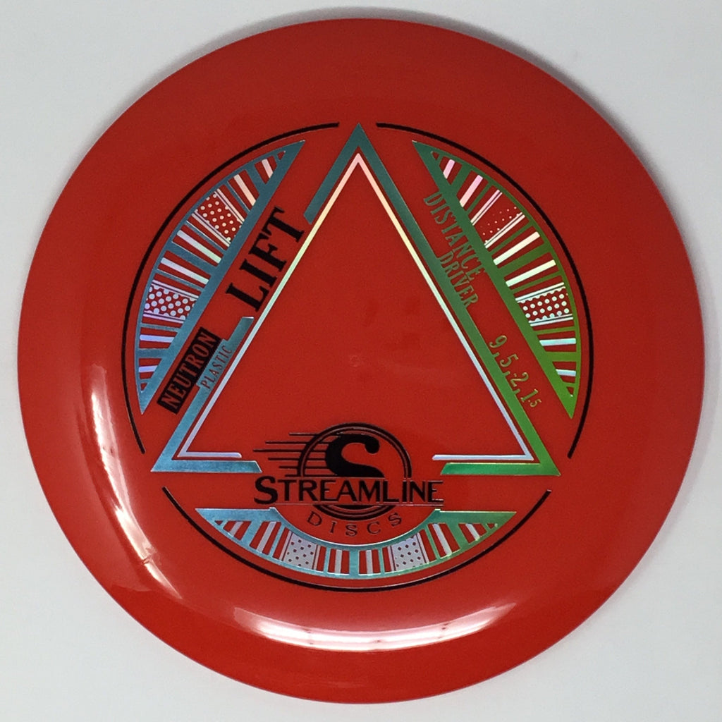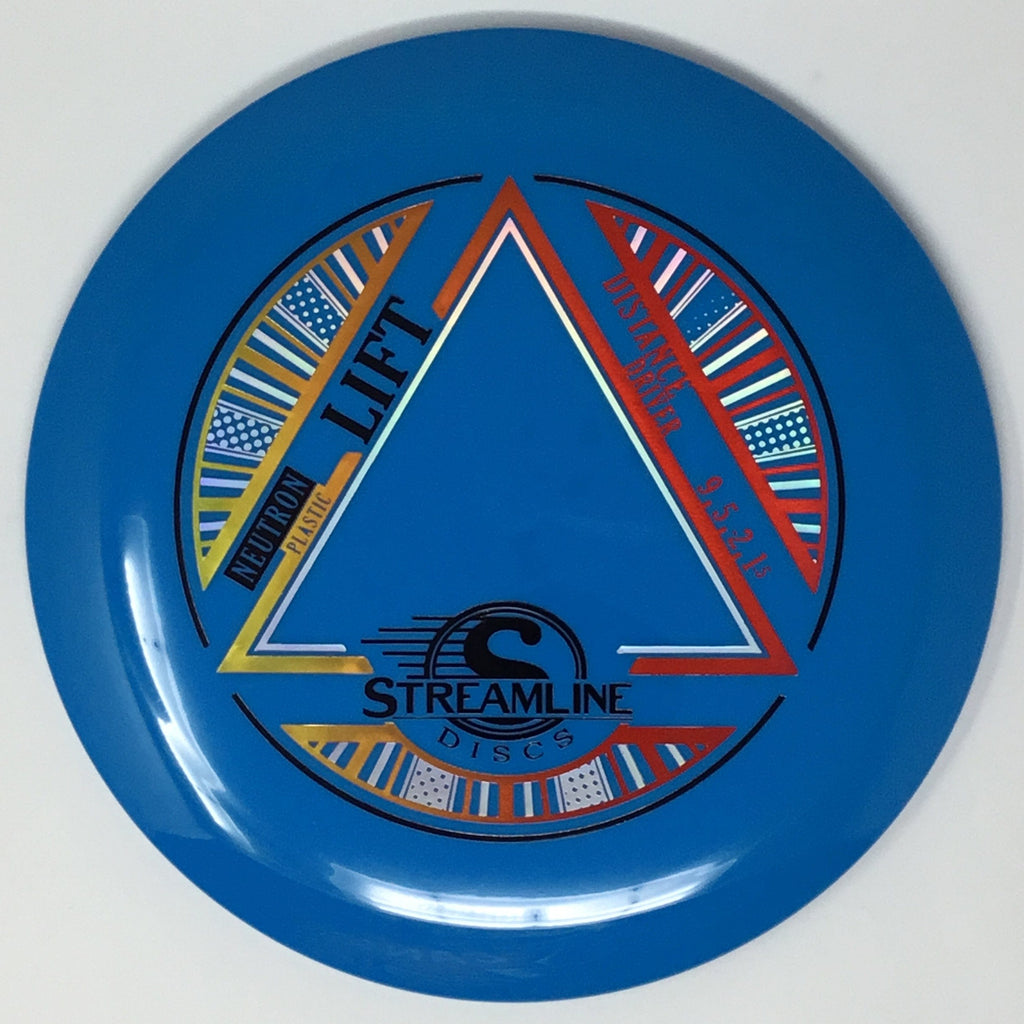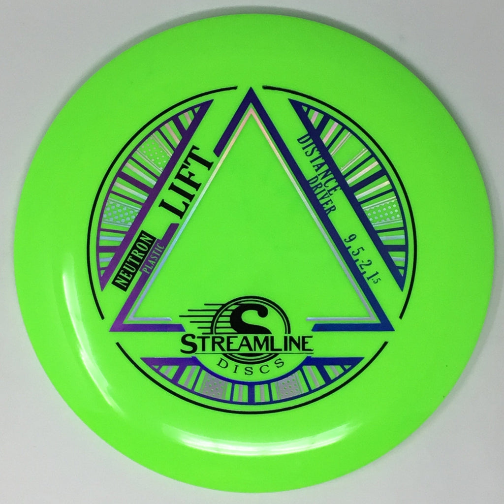 Prepare for liftoff with the new distance driver from Streamline, the Lift! The Lift is Streamline’s new understable distance driver, designed as a straight flying driver with a comfortable rim size and slightly domed profile. The Lift is the second disc along with the Flare in the new 19mm Speed 9 Driver Class for Streamline. In Streamline Neutron Plastic the Lift has premium grip and durability, along with a huge variety of Neutron and Cosmic Neutron color options. For controllable flight lines with effortless glide, activate Bernoulli’s principle with the new Streamline Neutron and Cosmic Neutron Lift!