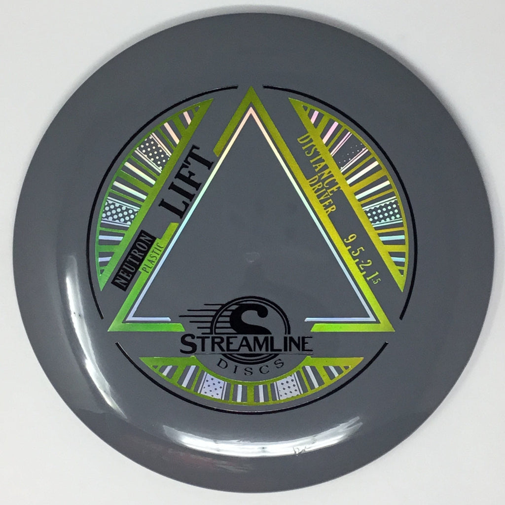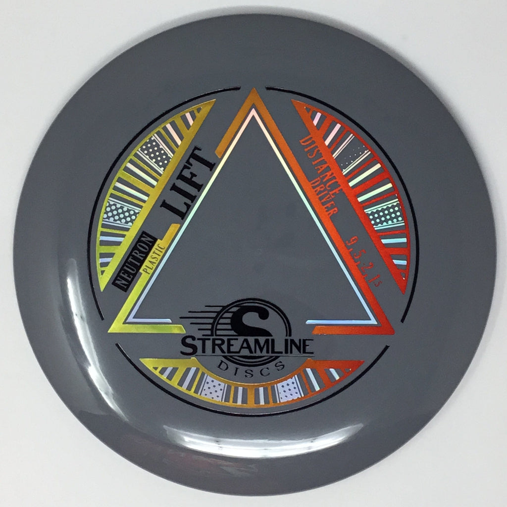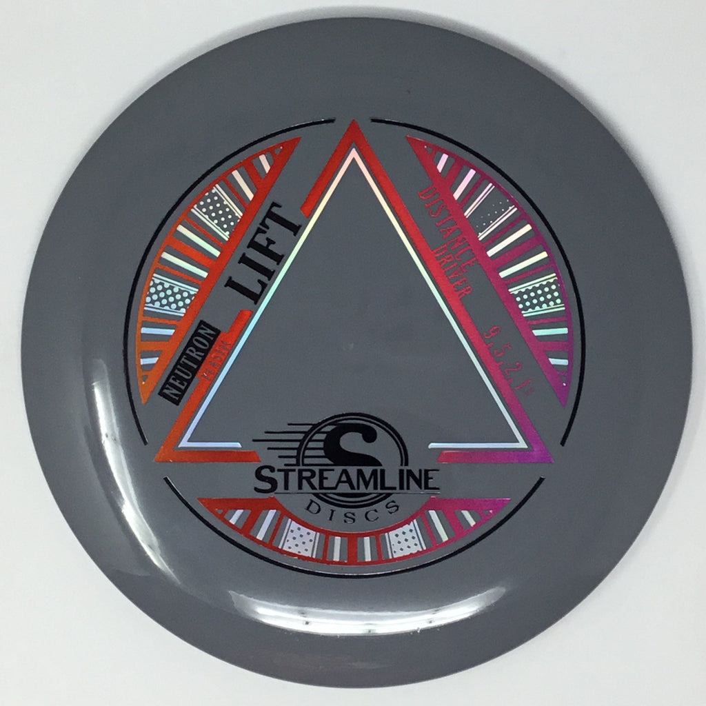 Prepare for liftoff with the new distance driver from Streamline, the Lift! The Lift is Streamline’s new understable distance driver, designed as a straight flying driver with a comfortable rim size and slightly domed profile. The Lift is the second disc along with the Flare in the new 19mm Speed 9 Driver Class for Streamline. In Streamline Neutron Plastic the Lift has premium grip and durability, along with a huge variety of Neutron and Cosmic Neutron color options. For controllable flight lines with effortless glide, activate Bernoulli’s principle with the new Streamline Neutron and Cosmic Neutron Lift!
