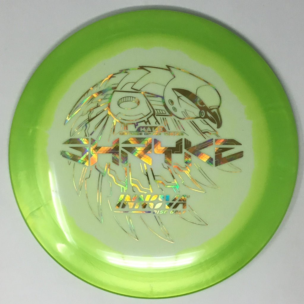 The Shryke is an easy to throw, very long range driver for a wide variety of players. A mild high speed turn puts the Shryke in glide mode, which along with its high aerodynamic speed, give it incredible distance. The low speed fade is also mild, which makes it easy to keep on the fairway. The Shryke is similar to the popular Tern but faster and slightly more high speed stable.