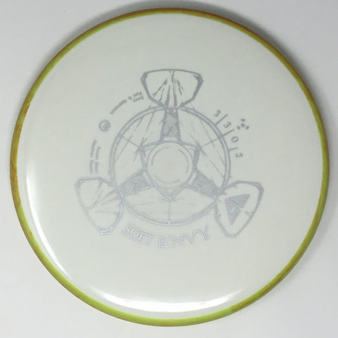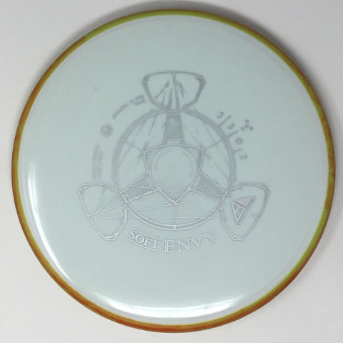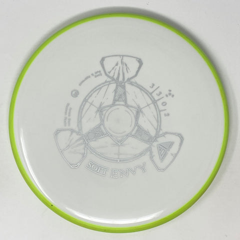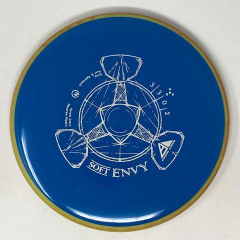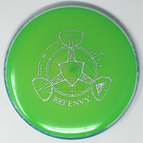 The Envy is a slightly overstable putt and approach disc. The Envy has a smooth modern feel that fits in the hand perfectly, lending confidence for both putt and approach duties. The Envy exhibits reliable high-speed stability and a minimal fade. With a slightly lower profile and cruising speed than the Ion and Anode class, the Envy is a uniquely “lid-like” stable putter. The Envy’s defining flight characteristic is its ability to hold a straight flight for power throwers, but also be a dependably stable approach disc for lower power throwers. Its medium depth offers a healthy balance of straight flight paired with an easy clean release. While its flight stability is largely similar to the MVP Ion, the Envy offers an entirely new feel. Its versatile stability on any type of shot will help the Envy find its way into every Axiom thrower’s bag.