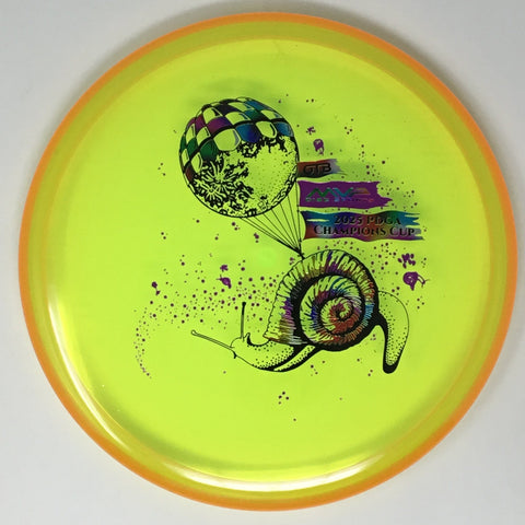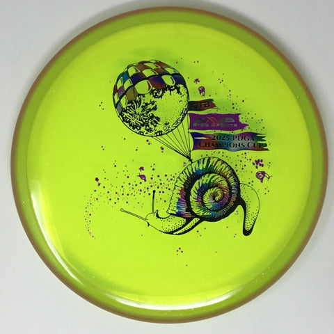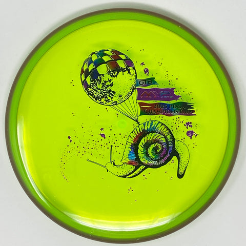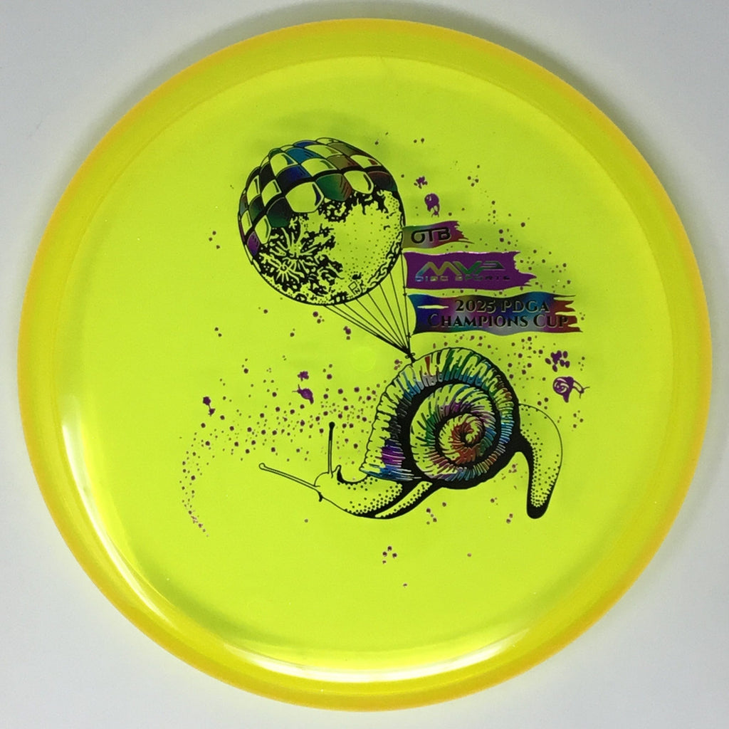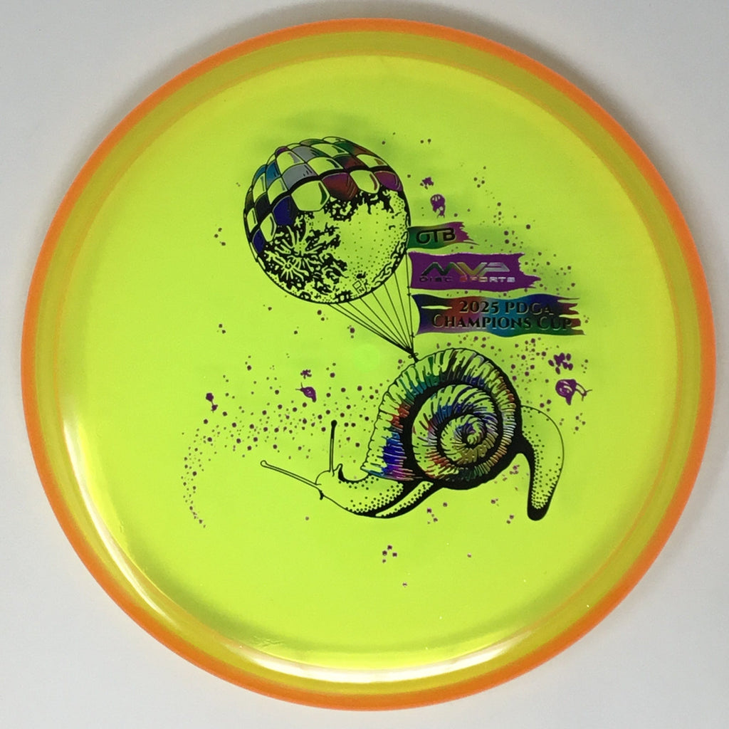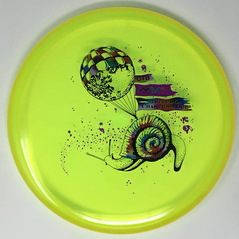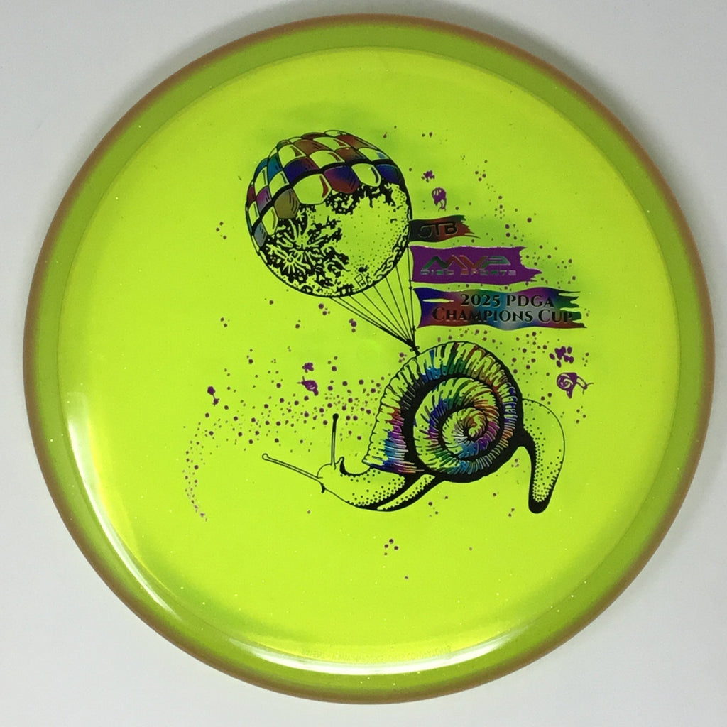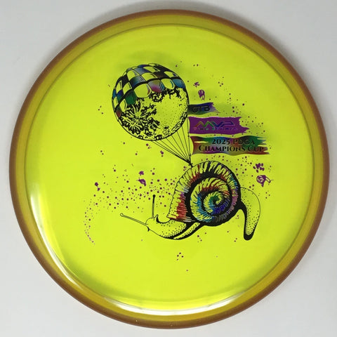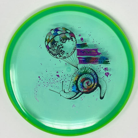 2025 Champions Cup Edition: It took a while, but snails always catch up eventually. Returning this year – along with many of his friends – is “Snail Mail” by Pirate Nate, on the Prism Proton Soft Envy! One of the most popular throwing putters in the MVP family of discs, the dependable straight to overstable flight of the Envy will get your shot right where you want it – chains.