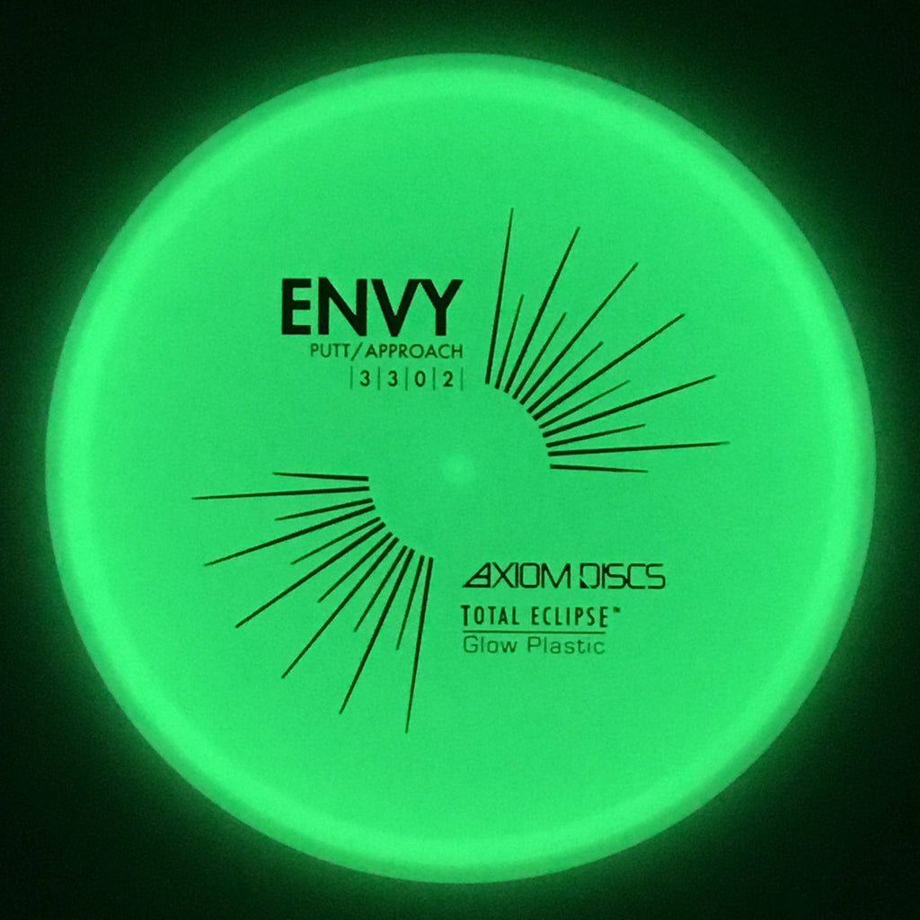 The Envy is a slightly overstable putt and approach disc. The Envy has a smooth modern feel that fits in the hand perfectly, lending confidence for both putt and approach duties. The Envy exhibits reliable high-speed stability and a minimal fade. With a slightly lower profile and cruising speed than the Ion and Anode class, the Envy is a uniquely “lid-like” stable putter. The Envy’s defining flight characteristic is its ability to hold a straight flight for power throwers, but also be a dependably stable approach disc for lower power throwers. Its medium depth offers a healthy balance of straight flight paired with an easy clean release. While its flight stability is largely similar to the MVP Ion, the Envy offers an entirely new feel. Its versatile stability on any type of shot will help the Envy find its way into every Axiom thrower’s bag.