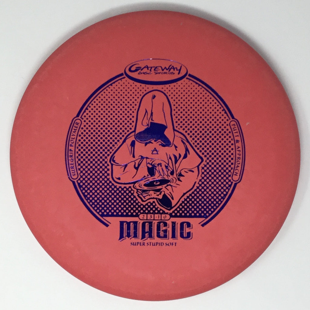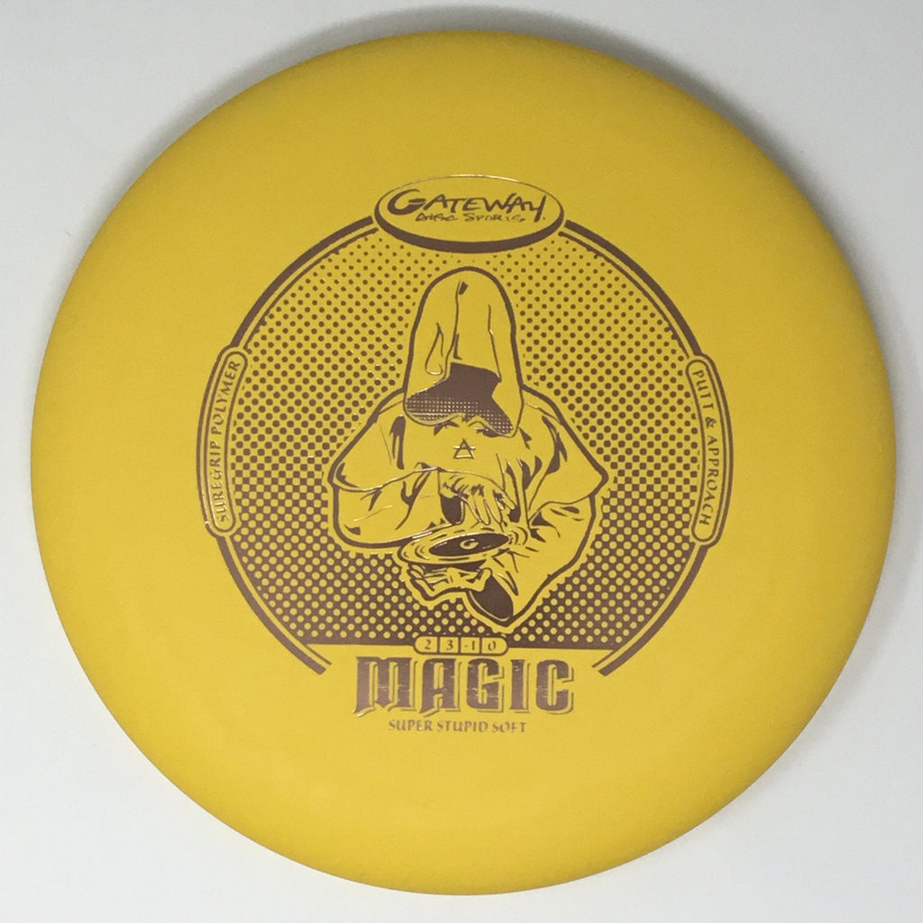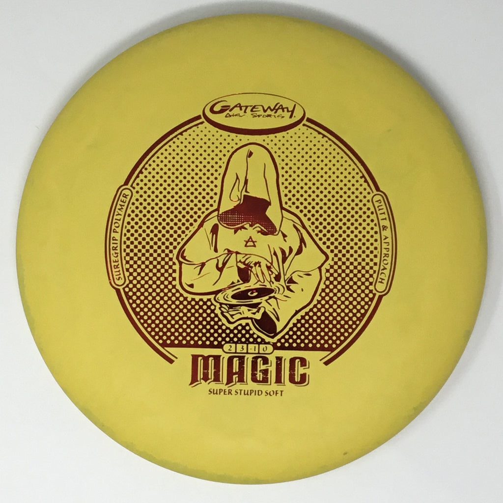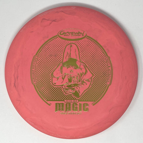 Need a little Magic in your game? This is a great disc for beginners. This straight flying putt and approach disc will help your game as it has minimal end-of-flight low-speed fade. The Magic is made to be easy to throw. The rim is designed with a gyroscopic weight distribution and a blunt nose that allows it to maintain its spinning motion longer. This great putter is available in several different Gateway plastics.