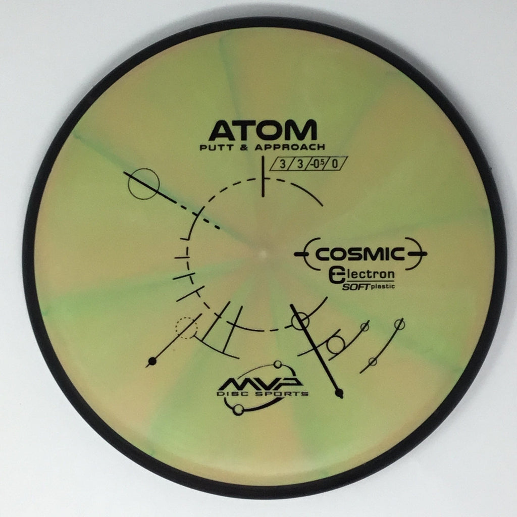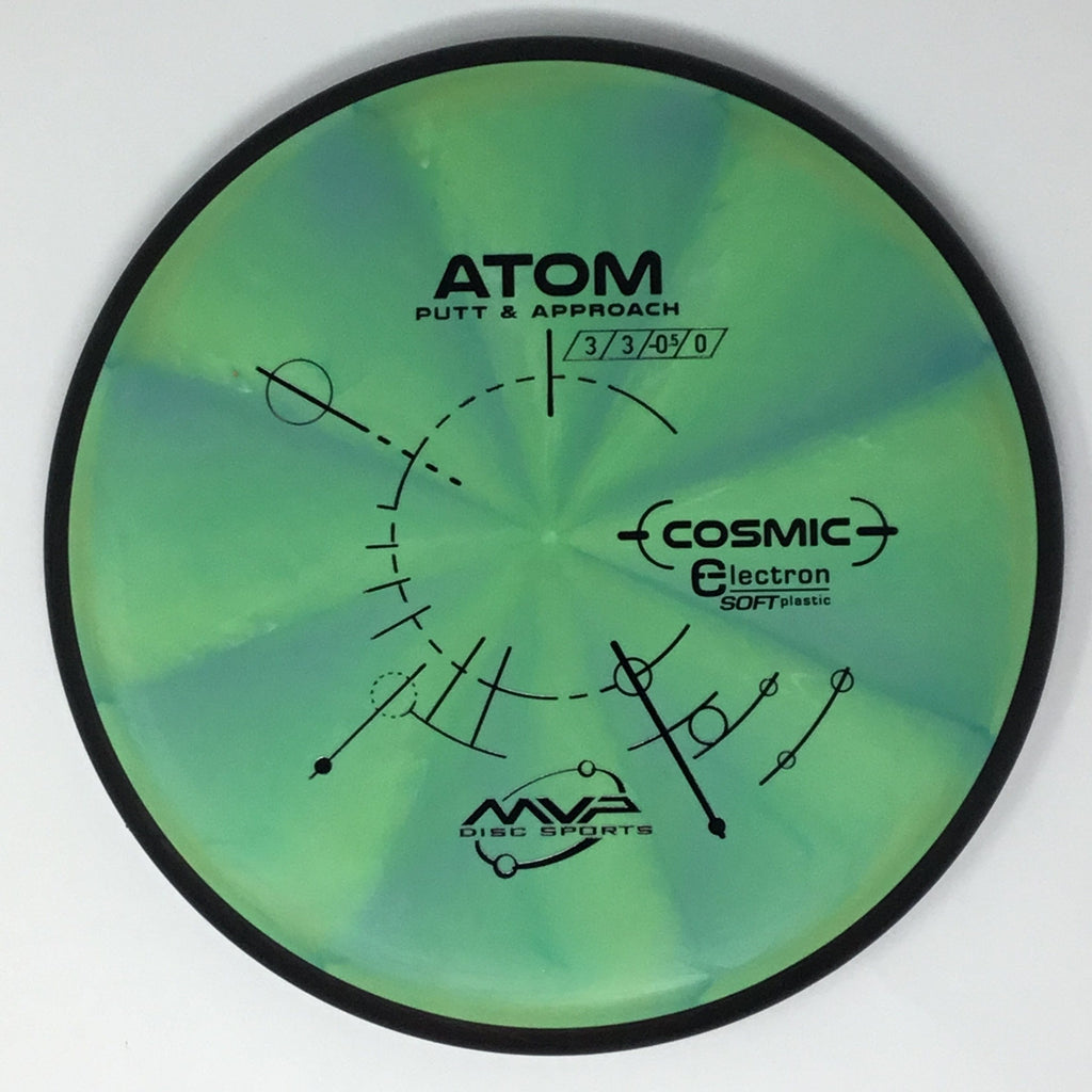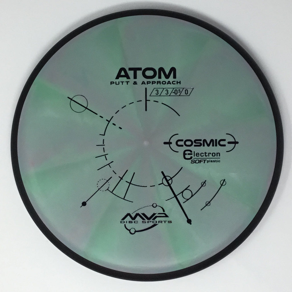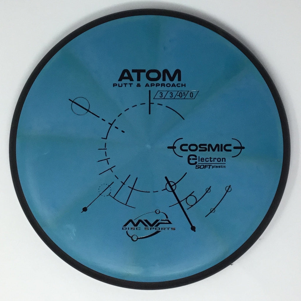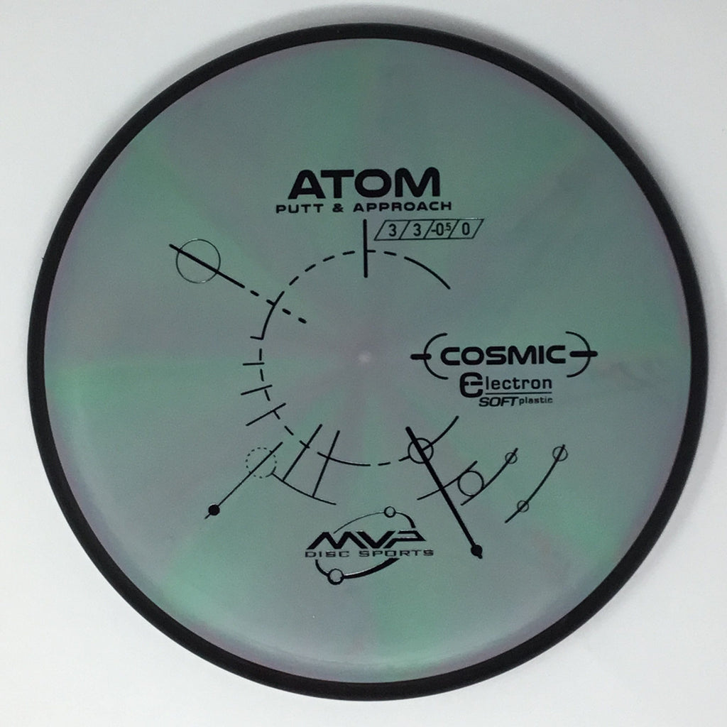 The Atom is a straight-stable putt and approach disc. The Atom is a straight flyer with enormous potential off the tee and on long approaches. Right off the shelf, the Atom has a neutral stability with just a bit of fade. In premium GYRO® plastics the Atom will retain its neutral stability indefinitely. In Electron baseline plastic the Atom will wear into an extremely straight and floaty putter, with extra tactile feedback inside the circle or in adverse weather. The Atom’s defining flight characteristic is its straight stable flight with a late subtle fade. For both high and lower power throwers, the Atom will hold a dependably straight line with a subtle fade. The Atom’s relatively large plate diameter and narrow wing design provide an exceptionally long-gliding line. This property combined with the stability neutralizing break-in of Electron and the line locking GYRO® flight phases make the Atom a remarkably controllable putter.