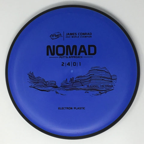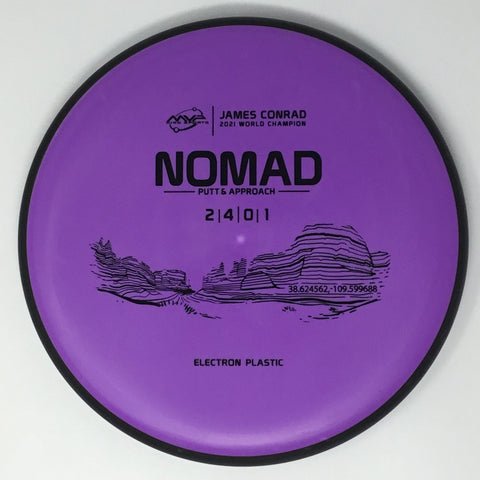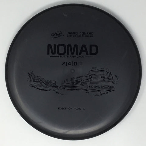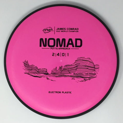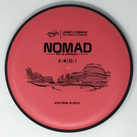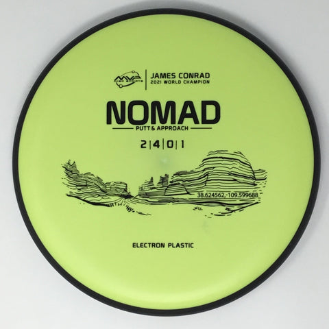 Designed by the World Champion himself - the Nomad has everything James Conrad desires in a putter. From the depth and shoulder height, all the way down to the size of the small bead - the Electron Nomad is James’ vision of an ideal putter. Expect a neutral flight inside the circle, with some fade kicking in at circle two - making the Nomad great at holding anhyzer or hyzer angles when need be. The Nomad is exactly how James wants a putter to feel in his hand, and exactly how he wants them to fly. Comfortable, with a clean and consistent release, the Nomad is ready for your disc golf journey - how far will you take it?