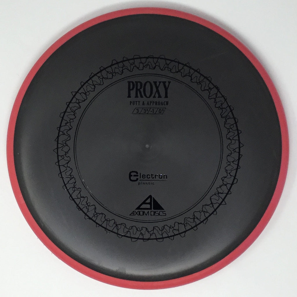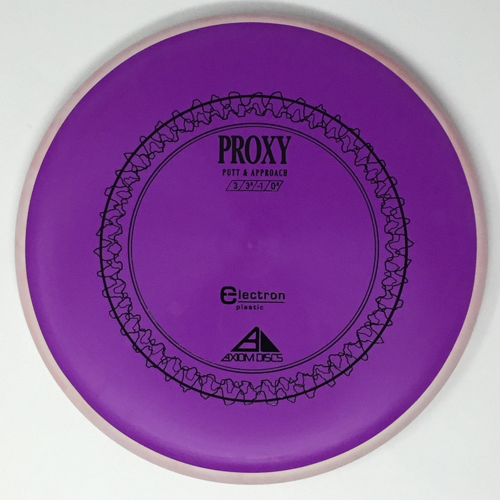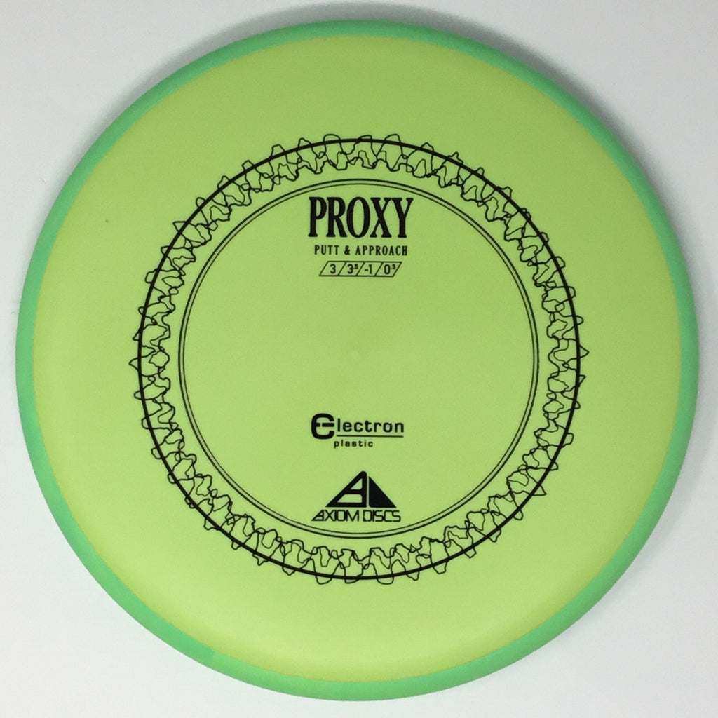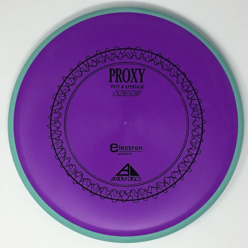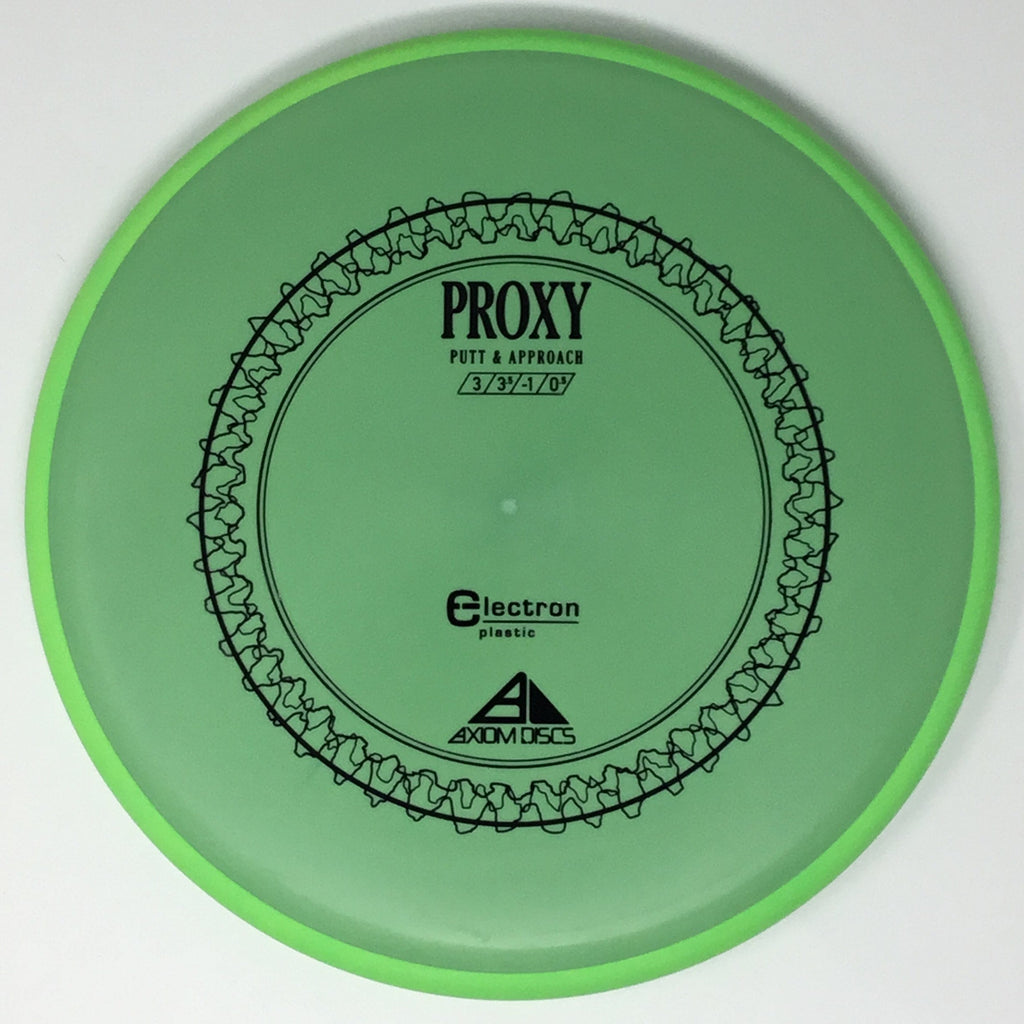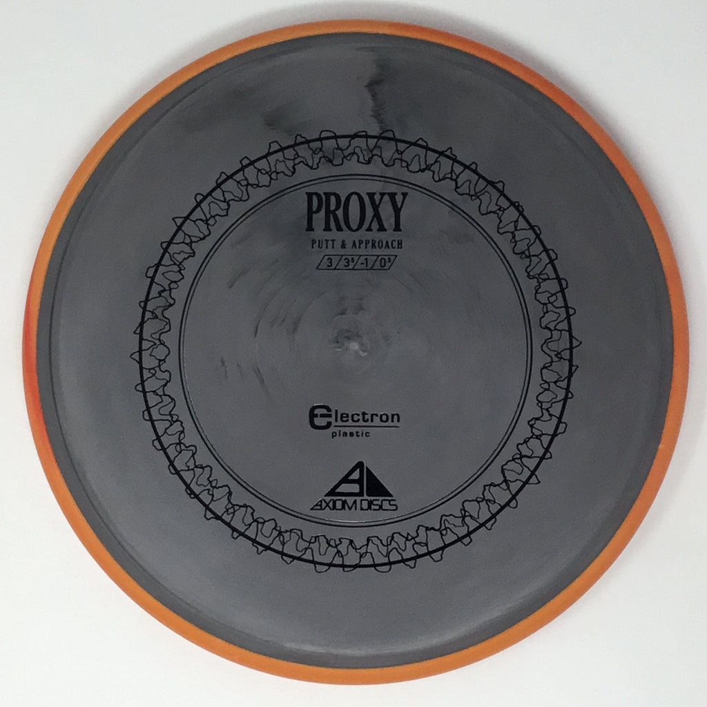 The Proxy is a straight-stable putt and approach disc. The Proxy shares the Envy mold’s core, lending the same low-profile feel and solid grip, along with a short wing width and wide flight plate diameter for superior glide. The Proxy sets itself apart from the Envy with a remarkably straight forward-fading finish. A bit of high-speed turn potential allows the Proxy’s lines to be manipulated over a broad range of power and helps less powerful throwers achieve straight putter drives. The Proxy’s defining flight characteristic is its ability to hold a straight flight at high speeds, but demonstrate the low-speed straight properties of a much more understable model’s ending stage. The Proxy is designed to exhibit the neutral straight-flying characteristic of classic “main” putters. Rather than requiring an extra wind-resistant overstable complement solely for harder throws, the Proxy is able to lock in with a similar high-speed stability as the Envy. Its neutral stability at a wide range of speeds will help the Proxy find its way into every Axiom thrower’s bag.