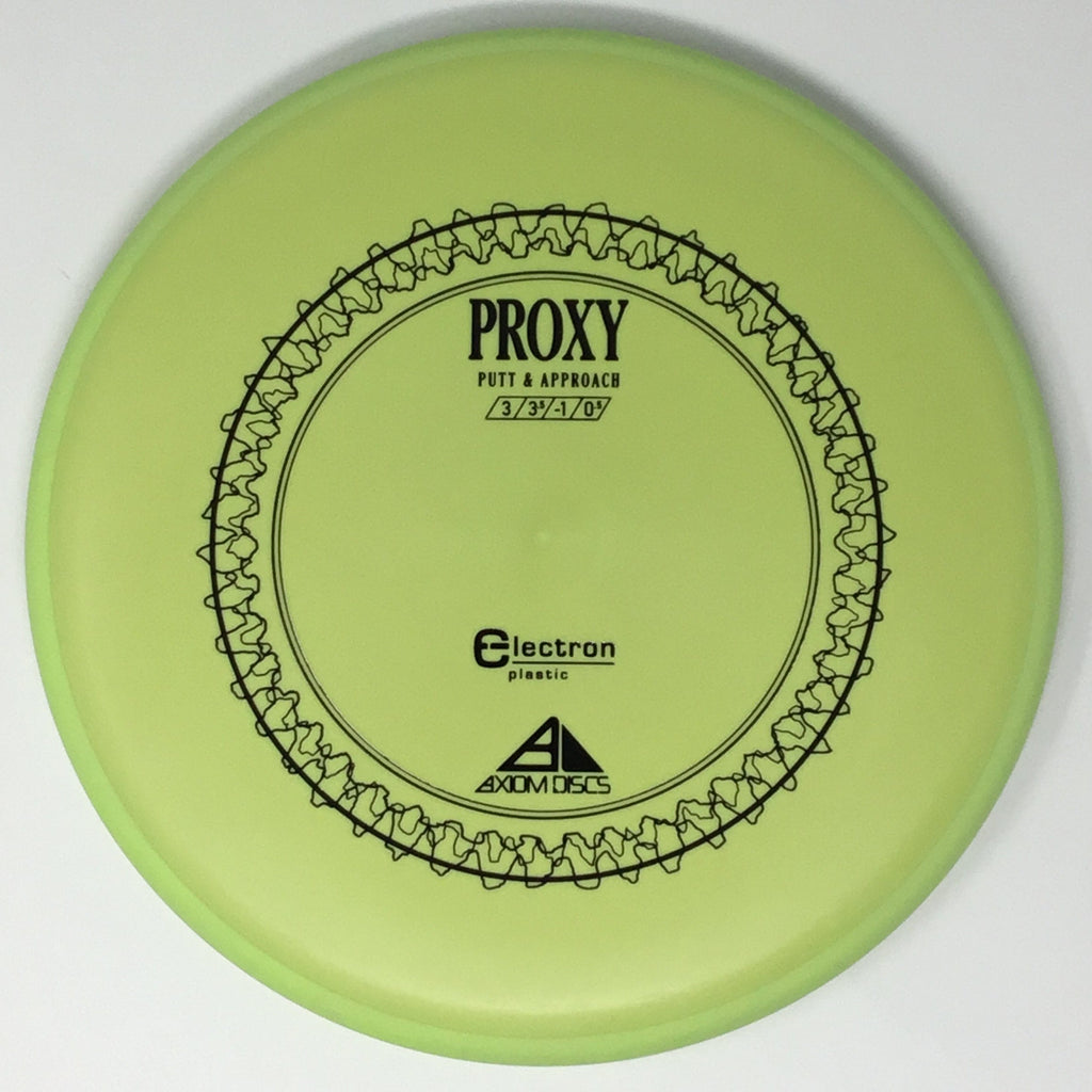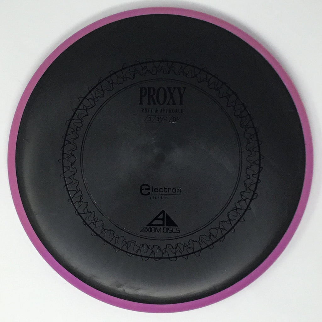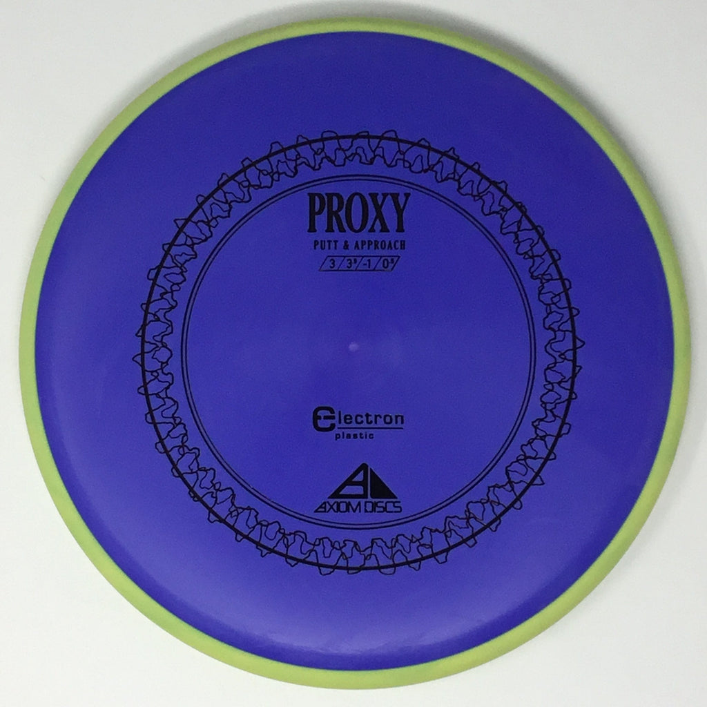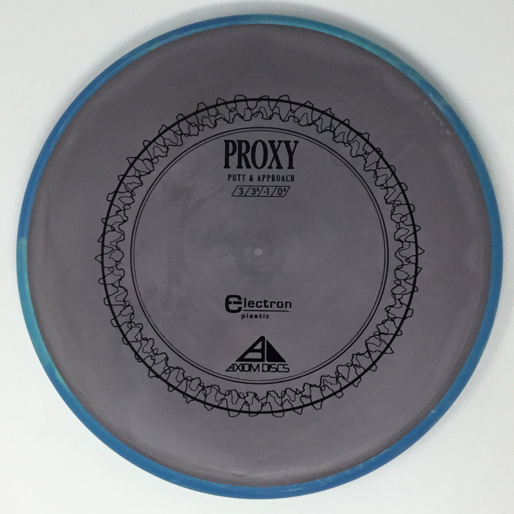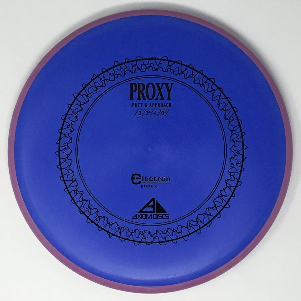 The Proxy is a straight-stable putt and approach disc. The Proxy shares the Envy mold’s core, lending the same low-profile feel and solid grip, along with a short wing width and wide flight plate diameter for superior glide. The Proxy sets itself apart from the Envy with a remarkably straight forward-fading finish. A bit of high-speed turn potential allows the Proxy’s lines to be manipulated over a broad range of power and helps less powerful throwers achieve straight putter drives. The Proxy’s defining flight characteristic is its ability to hold a straight flight at high speeds, but demonstrate the low-speed straight properties of a much more understable model’s ending stage. The Proxy is designed to exhibit the neutral straight-flying characteristic of classic “main” putters. Rather than requiring an extra wind-resistant overstable complement solely for harder throws, the Proxy is able to lock in with a similar high-speed stability as the Envy. Its neutral stability at a wide range of speeds will help the Proxy find its way into every Axiom thrower’s bag.