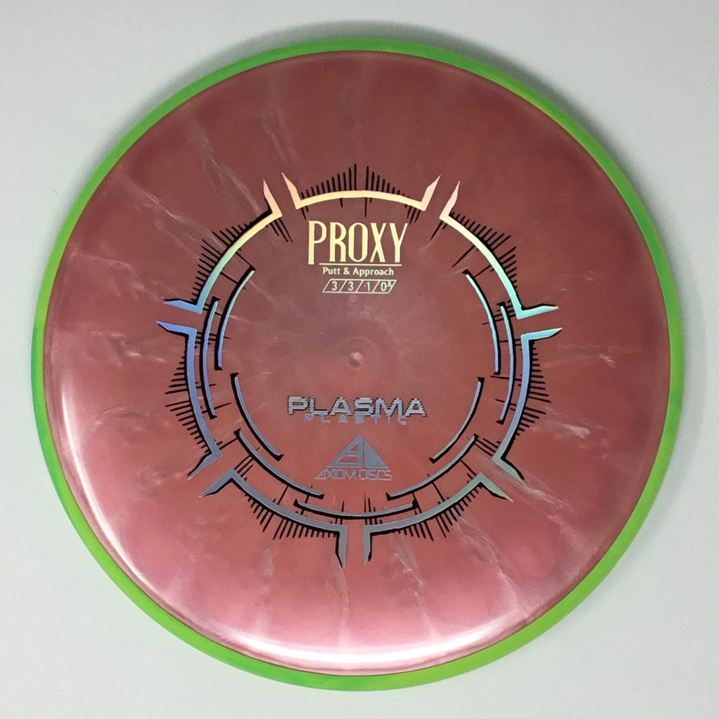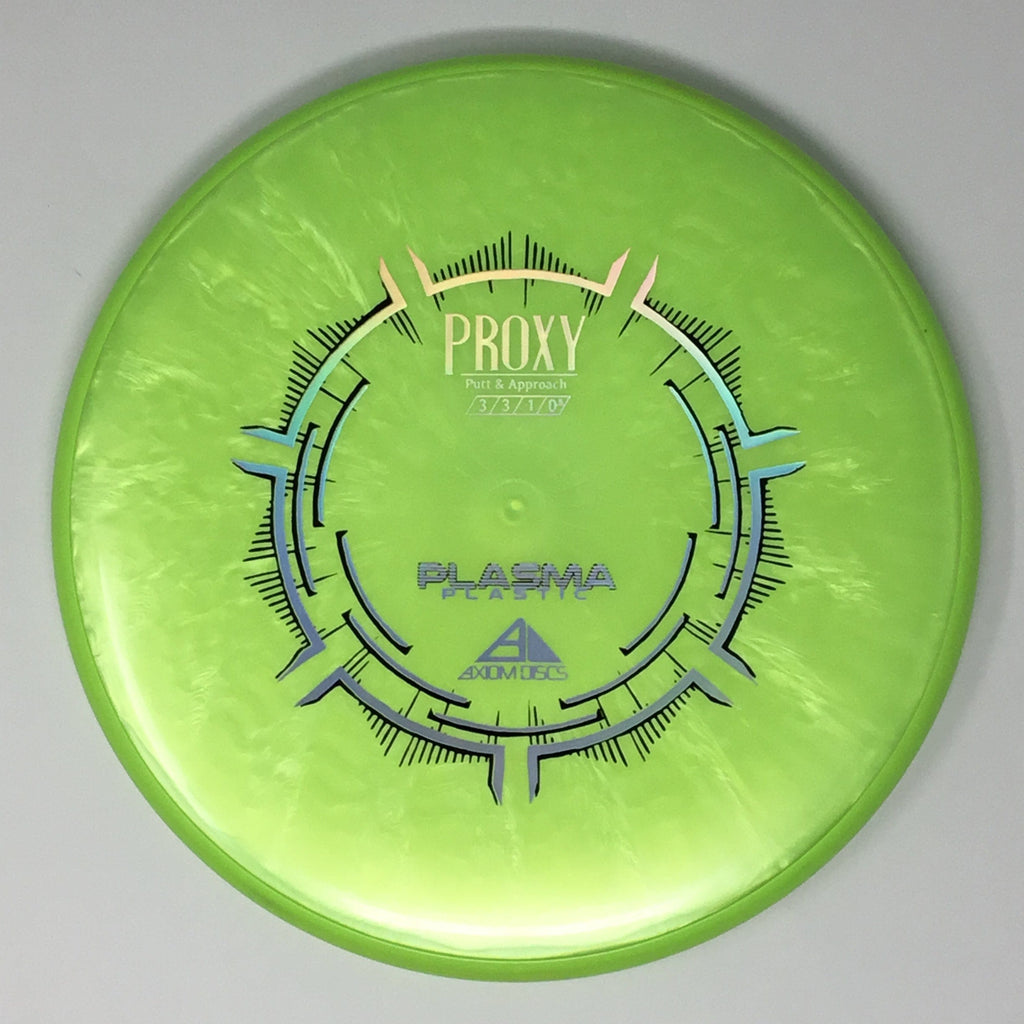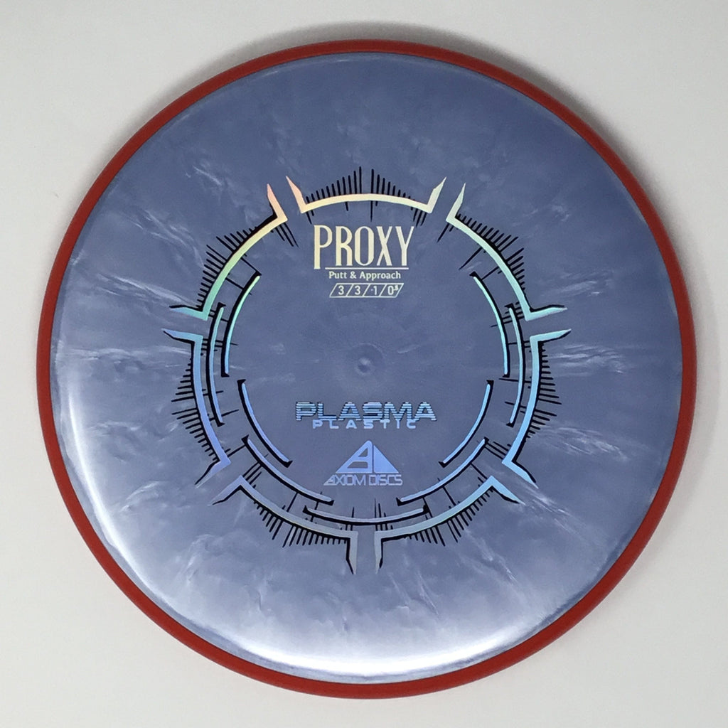 The Proxy is a straight-stable putt and approach disc. The Proxy shares the Envy mold’s core, lending the same low-profile feel and solid grip, along with a short wing width and wide flight plate diameter for superior glide. The Proxy sets itself apart from the Envy with a remarkably straight forward-fading finish. A bit of high-speed turn potential allows the Proxy’s lines to be manipulated over a broad range of power and helps less powerful throwers achieve straight putter drives. The Proxy’s defining flight characteristic is its ability to hold a straight flight at high speeds, but demonstrate the low-speed straight properties of a much more understable model’s ending stage. The Proxy is designed to exhibit the neutral straight-flying characteristic of classic “main” putters. Rather than requiring an extra wind-resistant overstable complement solely for harder throws, the Proxy is able to lock in with a similar high-speed stability as the Envy. Its neutral stability at a wide range of speeds will help the Proxy find its way into every Axiom thrower’s bag.