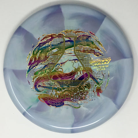 The conclusion to Eagle McMahon’s Elemental Series, water, has arrived! Reflecting the mentality that Eagle maintains - flexibility, serenity, stoicism - water felt like the natural way to wrap things up. Releasing on the Streamline Cosmic Neutron Range, a disc that Eagle has taken notable interest in for its own versatility, this marks the first time the Range will be available outside of the 2024 Space Race. Green C Studio lends his talents to complete the Elemental Series, with a gorgeous, flowing, triple-foil illustration, perfectly encapsulating the inspiration behind this release.