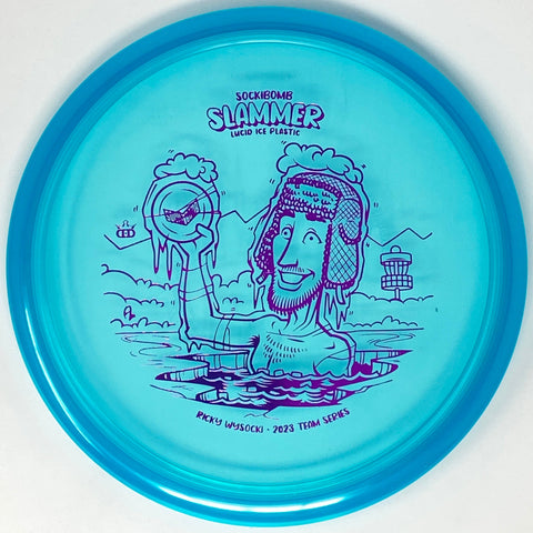 Introducing the NEW Lucid-Ice Sockibomb Slammer, the first premium plastic Sockibomb Slammer approach disc for retailers to offer disc golfers! With a classic Sockibomb stock-stamp design, this disc is a must-have for any fan of the 2x World Champ.