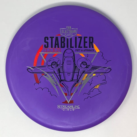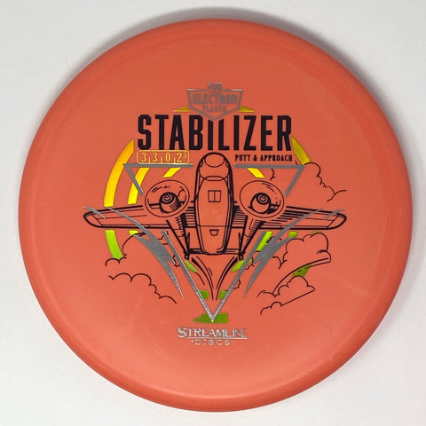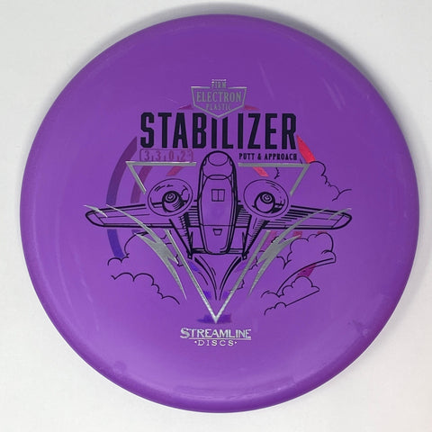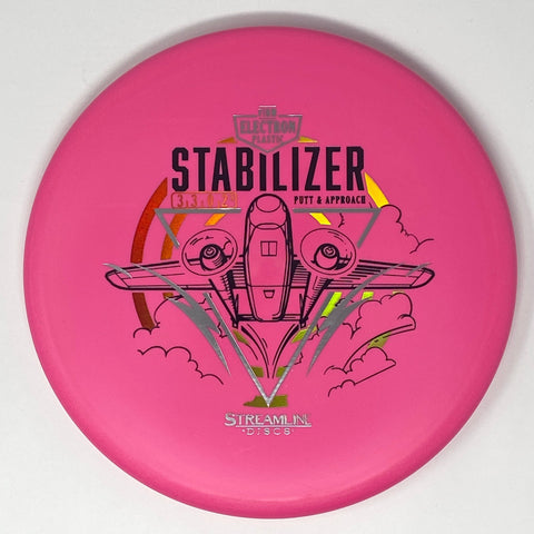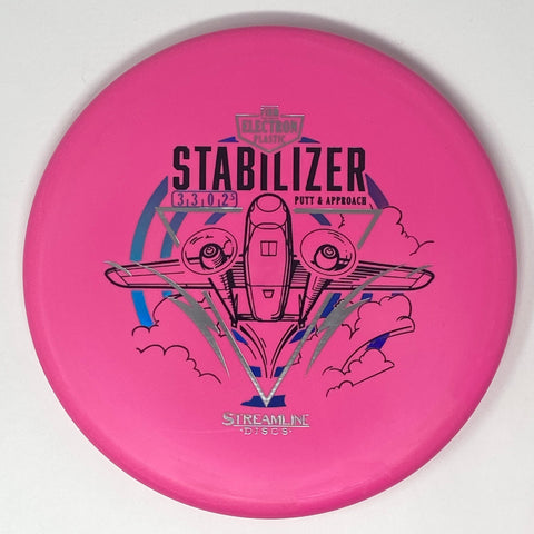 The Stabilizer is the second putter from Streamline Discs and is the overstable compliment to the Streamline Pilot. The Stabilizer has a similar hand feel and depth as the Neutron Pilot, but with a slightly raised shoulder and more pointed nose that produces a flatter and more stable putter. The Stabilizers defining flight characteristic is straight flights with minimal turn, into a strong finishing fade for point and shoot accuracy on the approach.