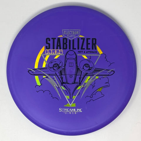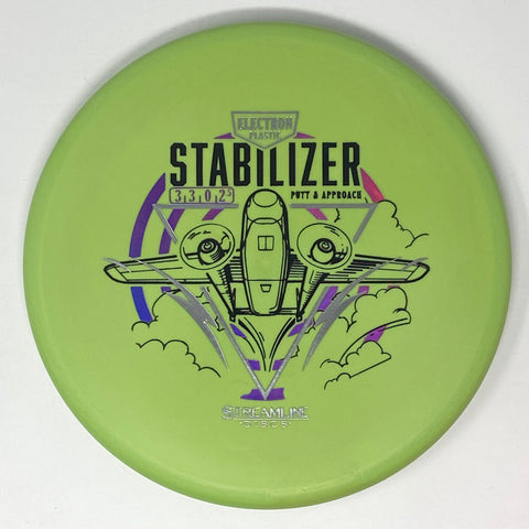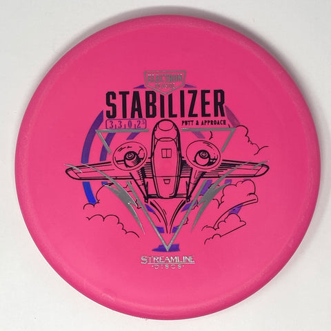 The Stabilizer is the second putter from Streamline Discs and is the overstable compliment to the Streamline Pilot. The Stabilizer has a similar hand feel and depth as the Neutron Pilot, but with a slightly raised shoulder and more pointed nose that produces a flatter and more stable putter. The Stabilizers defining flight characteristic is straight flights with minimal turn, into a strong finishing fade for point and shoot accuracy on the approach.