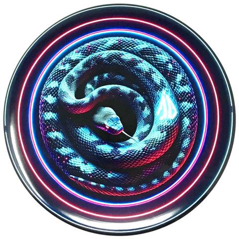 Anthony Barela 2024 Season Commemorative: Introducing the Anthony Barela Full Foil SuperColor Zone! Featuring a mesmerizing snake coiled up in its design, this disc stands out with its full foil SuperColor print, delivering a holographic shine that mimics the vibrant glow of a neon sign. Whether you're aiming for precision on the fairway or making a bold statement in your collection, the Anthony Barela full foil SuperColor Zone is a must-have for any serious disc golfer.