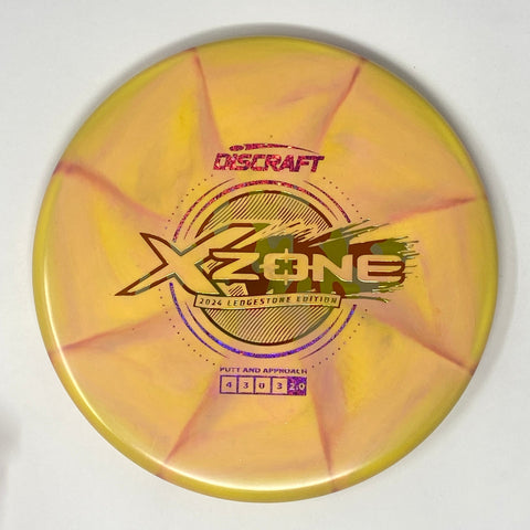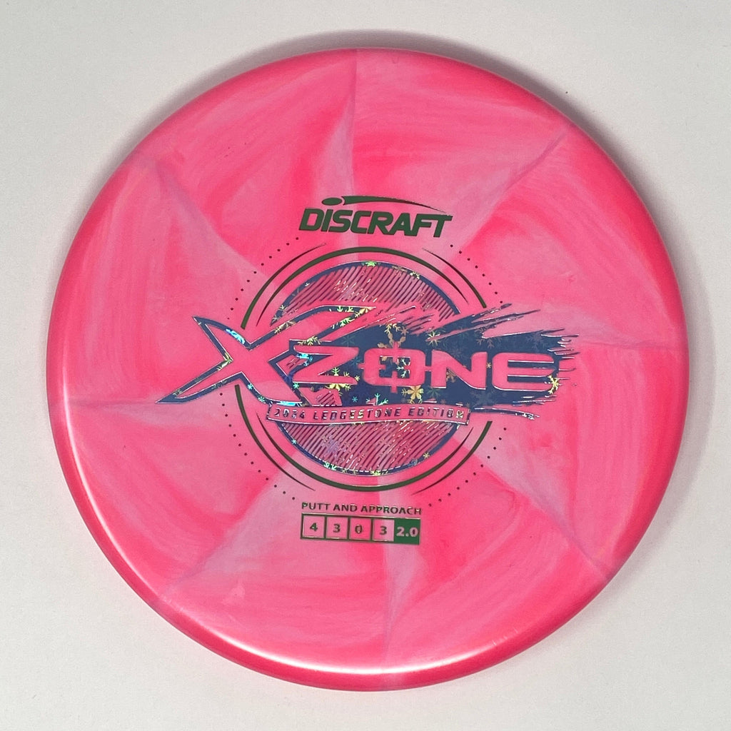 2024 Ledgestone Edition - The Zone is Discraft’s most popular approach disc. Good for both forehands and backhands, this extremely overstable mold can handle significant torque and always provides a reliable finish to its flight, no matter the angle. These Zones are durable, predictable, and true.