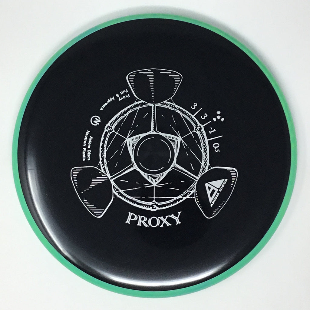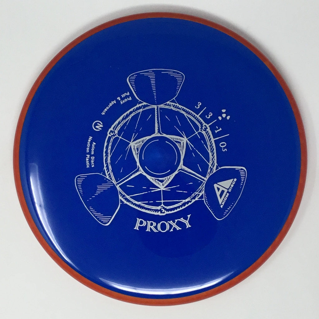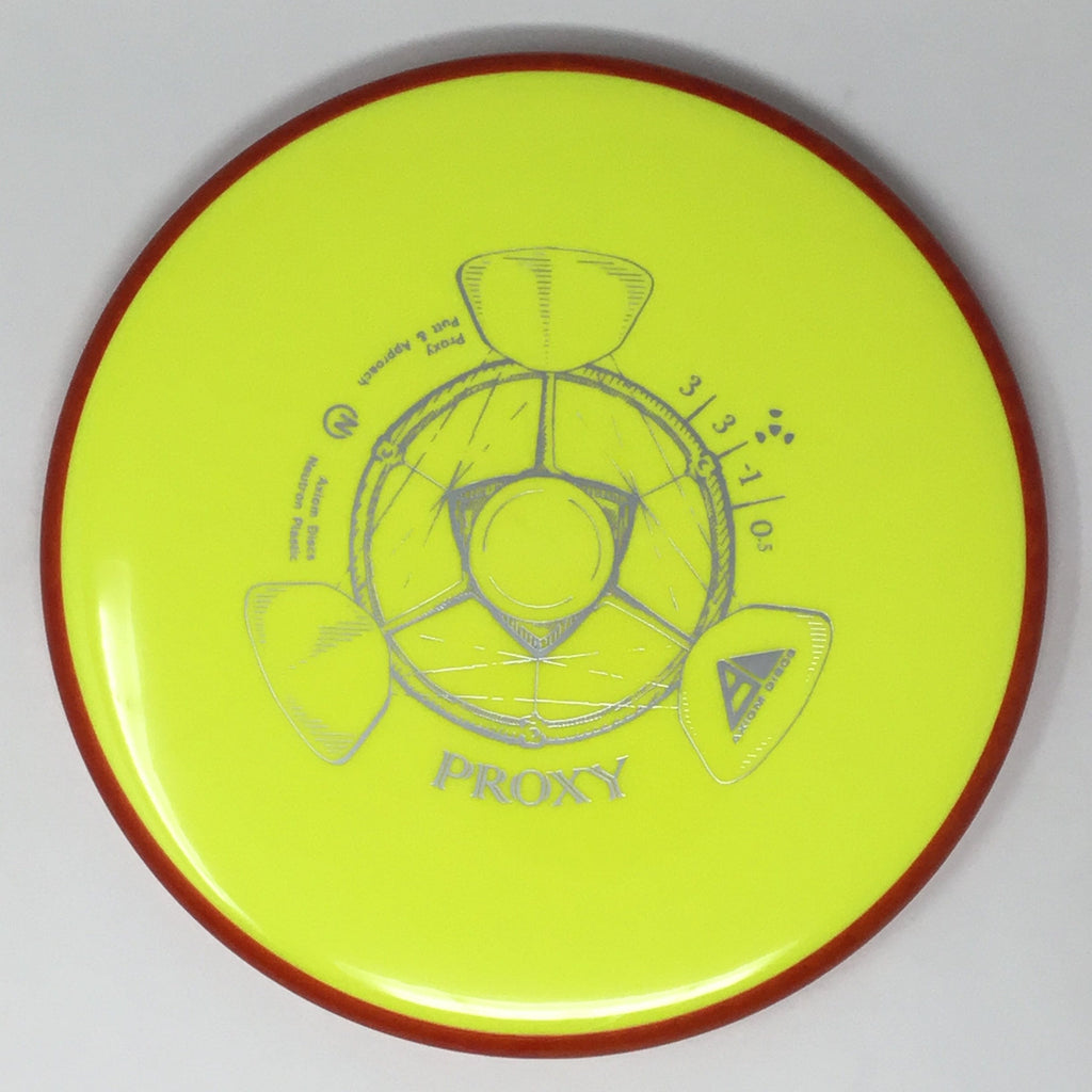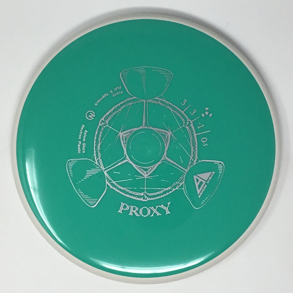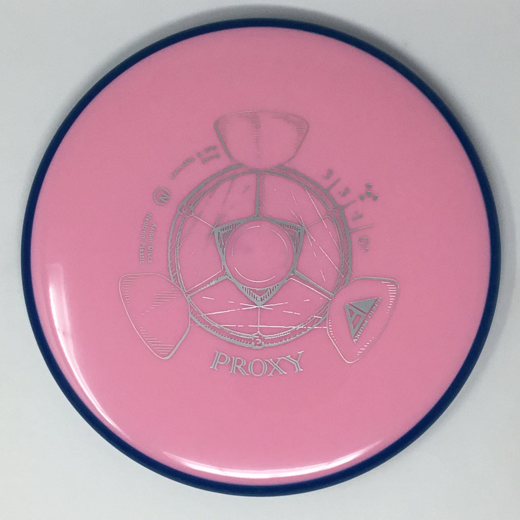 The Proxy is a straight-stable putt and approach disc. The Proxy shares the Envy mold’s core, lending the same low-profile feel and solid grip, along with a short wing width and wide flight plate diameter for superior glide. The Proxy sets itself apart from the Envy with a remarkably straight forward-fading finish. A bit of high-speed turn potential allows the Proxy’s lines to be manipulated over a broad range of power and helps less powerful throwers achieve straight putter drives. The Proxy’s defining flight characteristic is its ability to hold a straight flight at high speeds, but demonstrate the low-speed straight properties of a much more understable model’s ending stage. The Proxy is designed to exhibit the neutral straight-flying characteristic of classic “main” putters. Rather than requiring an extra wind-resistant overstable complement solely for harder throws, the Proxy is able to lock in with a similar high-speed stability as the Envy. Its neutral stability at a wide range of speeds will help the Proxy find its way into every Axiom thrower’s bag.