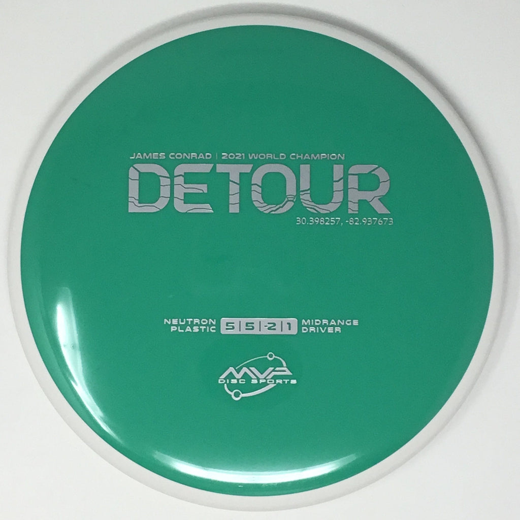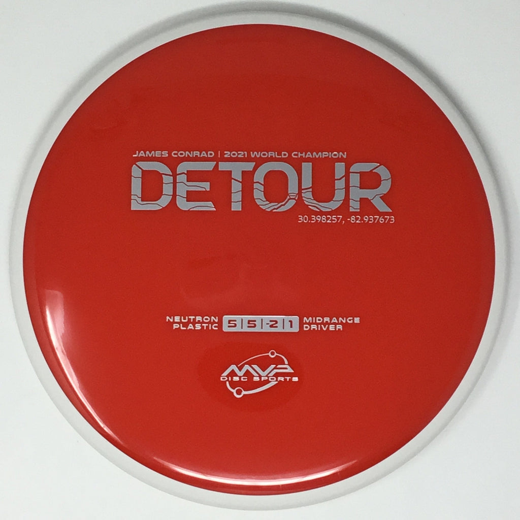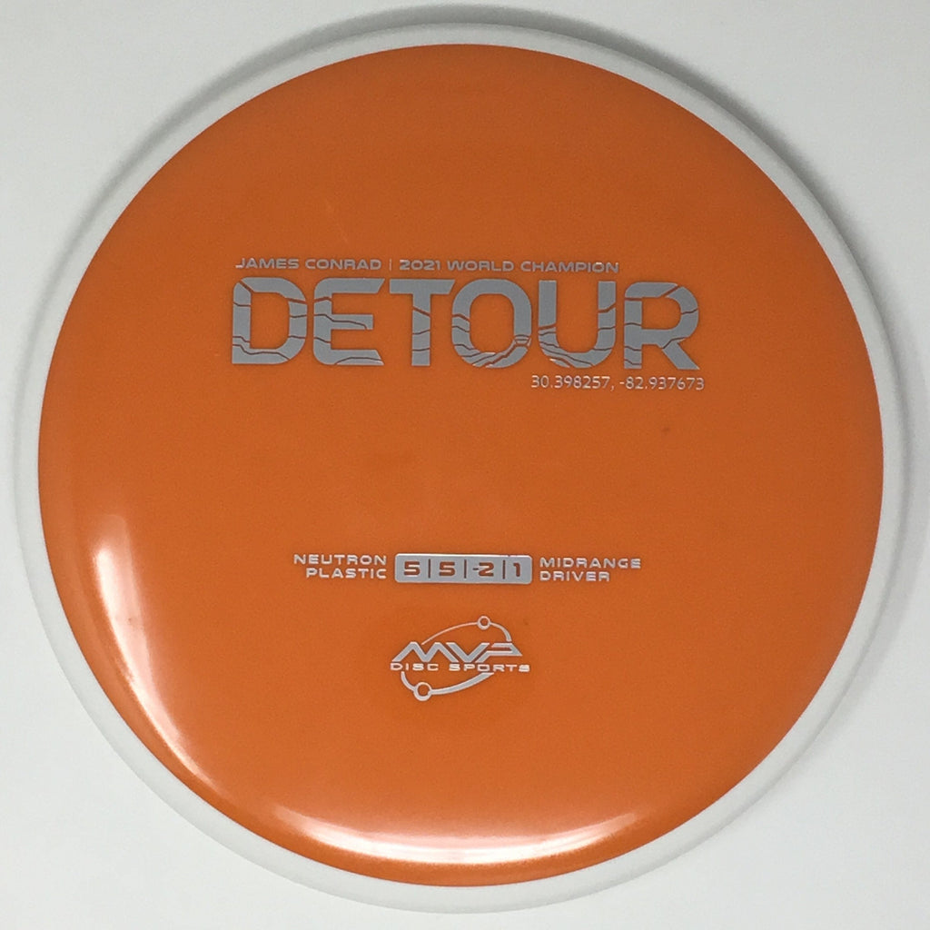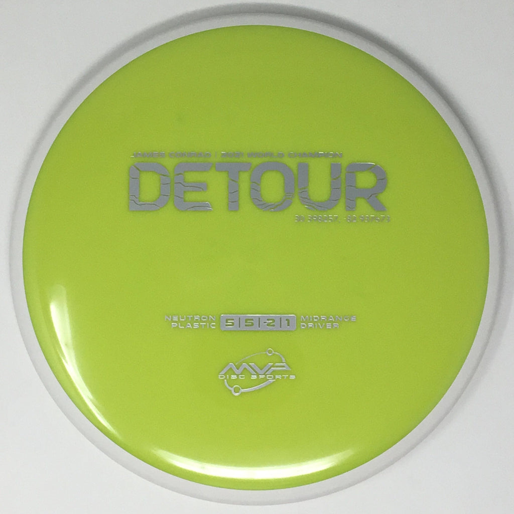 Fitting perfectly between the Axiom Hex and MVP Uplink, the newest addition to the James Conrad lineup slides in. As a backhand dominant player, Conrad is known for his beautiful turnover lines, and the Detour excels at those long panning turnovers as well as easy hyzer-flips. Experienced players will find the Detour to be exceptionally easy to manipulate for a wide variety of shot shapes, while newer players will find a delightfully straight flier, perfect for learning the game.