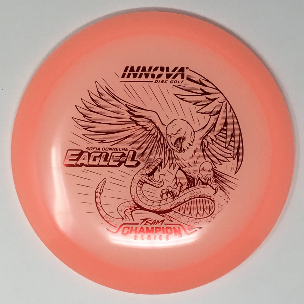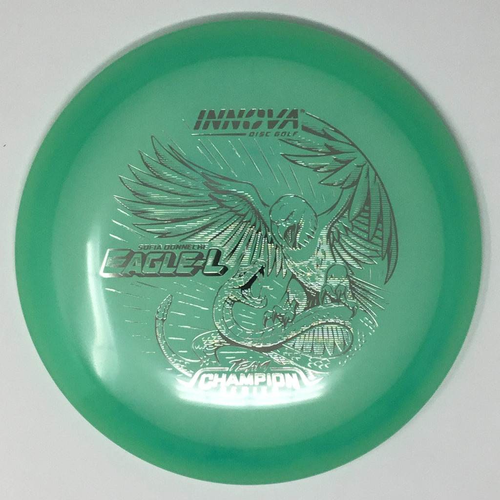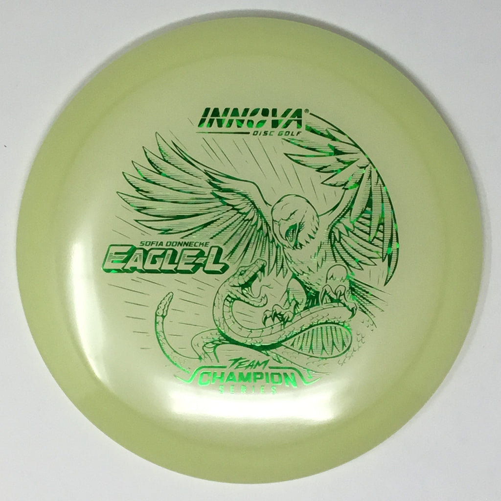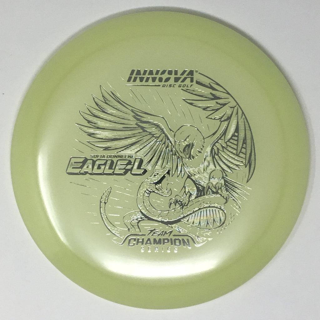 Sofia Donnecke burst onto the scene, taking 3rd at last year’s Portland Open. She is bringing back an old favorite Innova mold, the Eagle-L, in new Proto Glow Champion material.