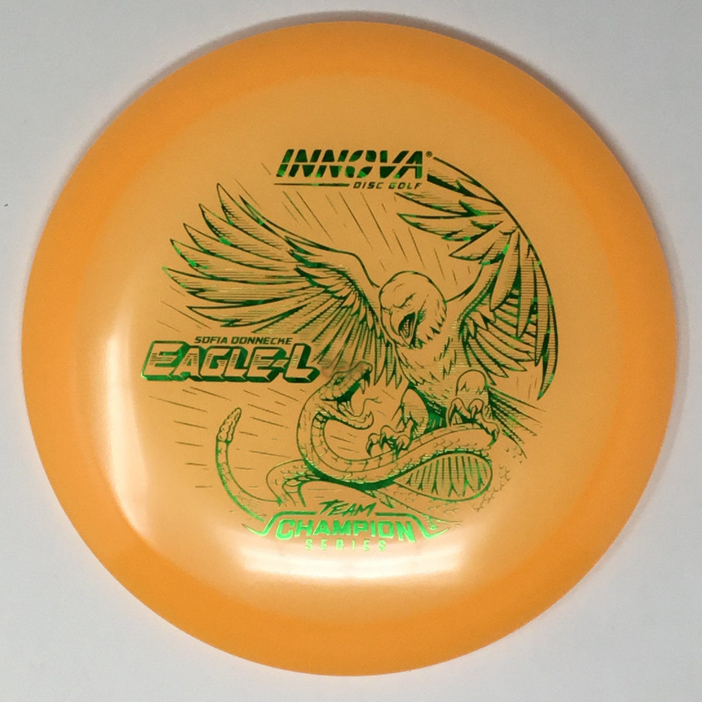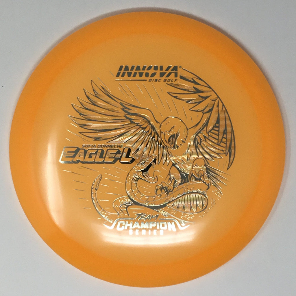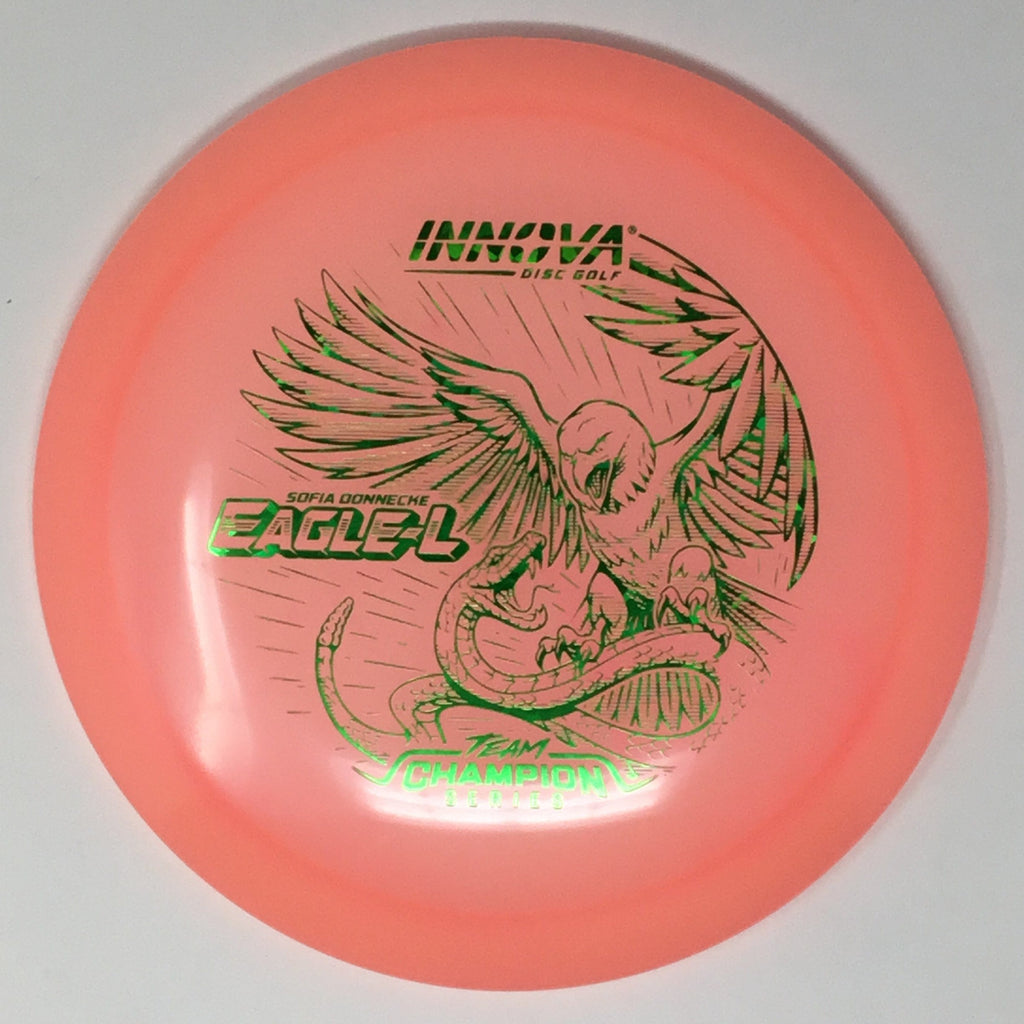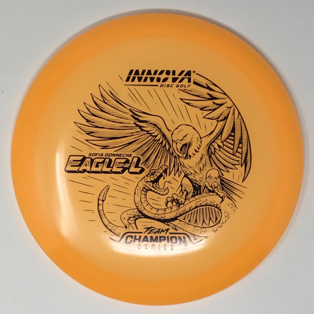 Sofia Donnecke burst onto the scene, taking 3rd at last year’s Portland Open. She is bringing back an old favorite Innova mold, the Eagle-L, in new Proto Glow Champion material.