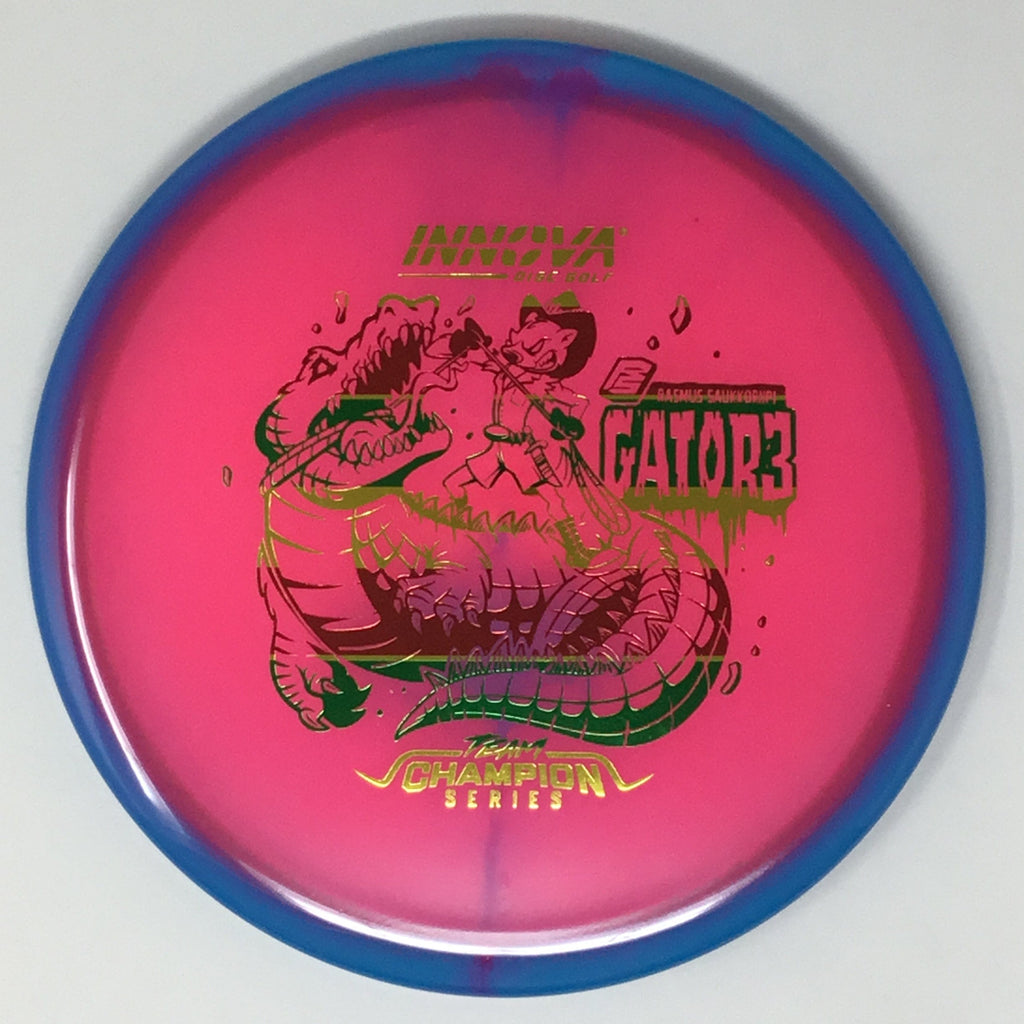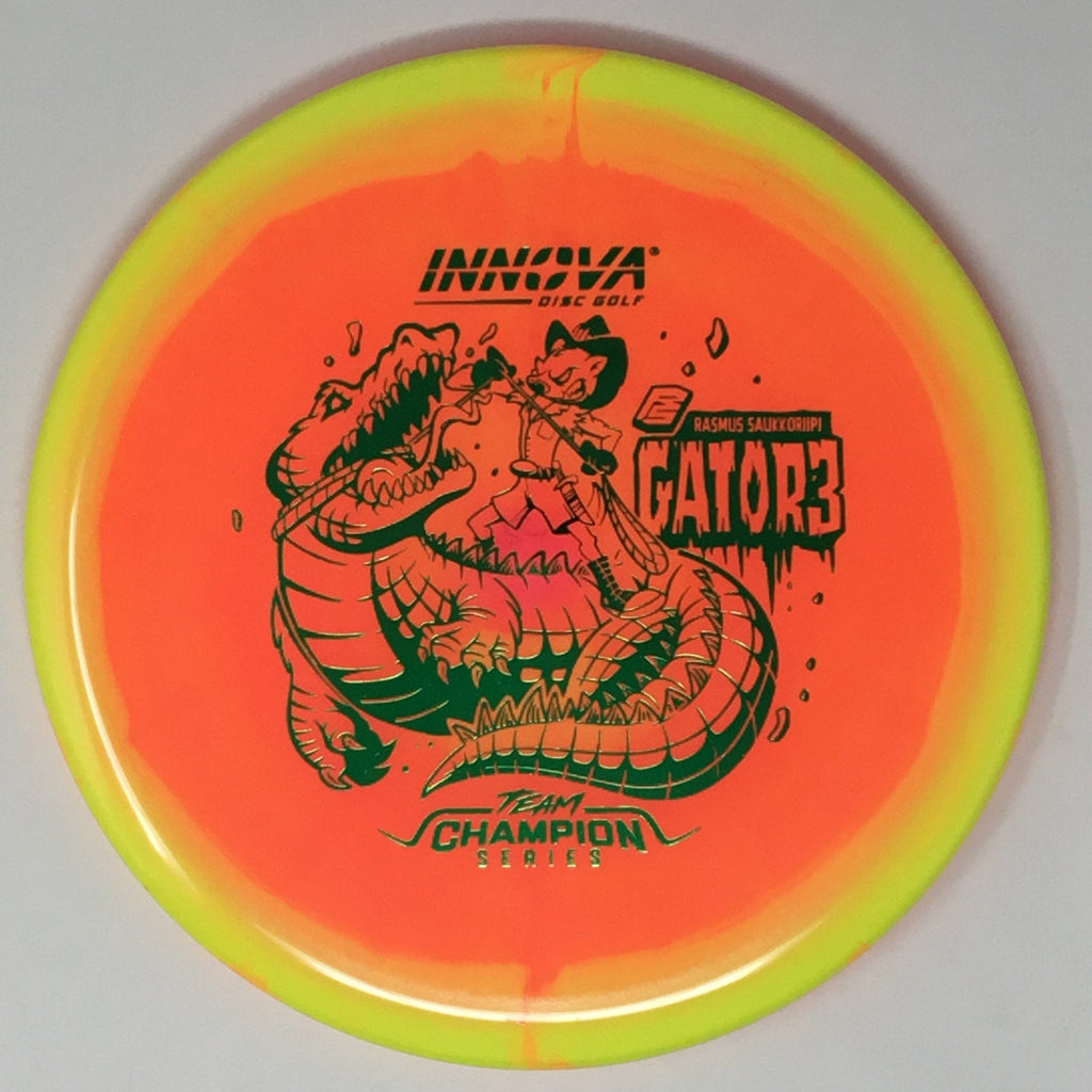 The Gator3 is a very reliable overstable Mid-Range disc with a predictable finish. It delivers pin-point accuracy for shorter drives and approach shots, even in windy conditions. The flatter top provides great feel in the hand and a consistent release for sidearm shots. Grab a Gator3, and never think twice about throwing into a headwind again!