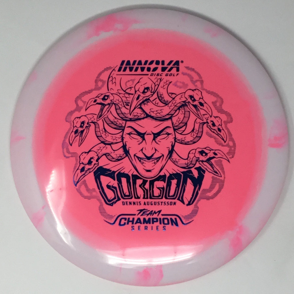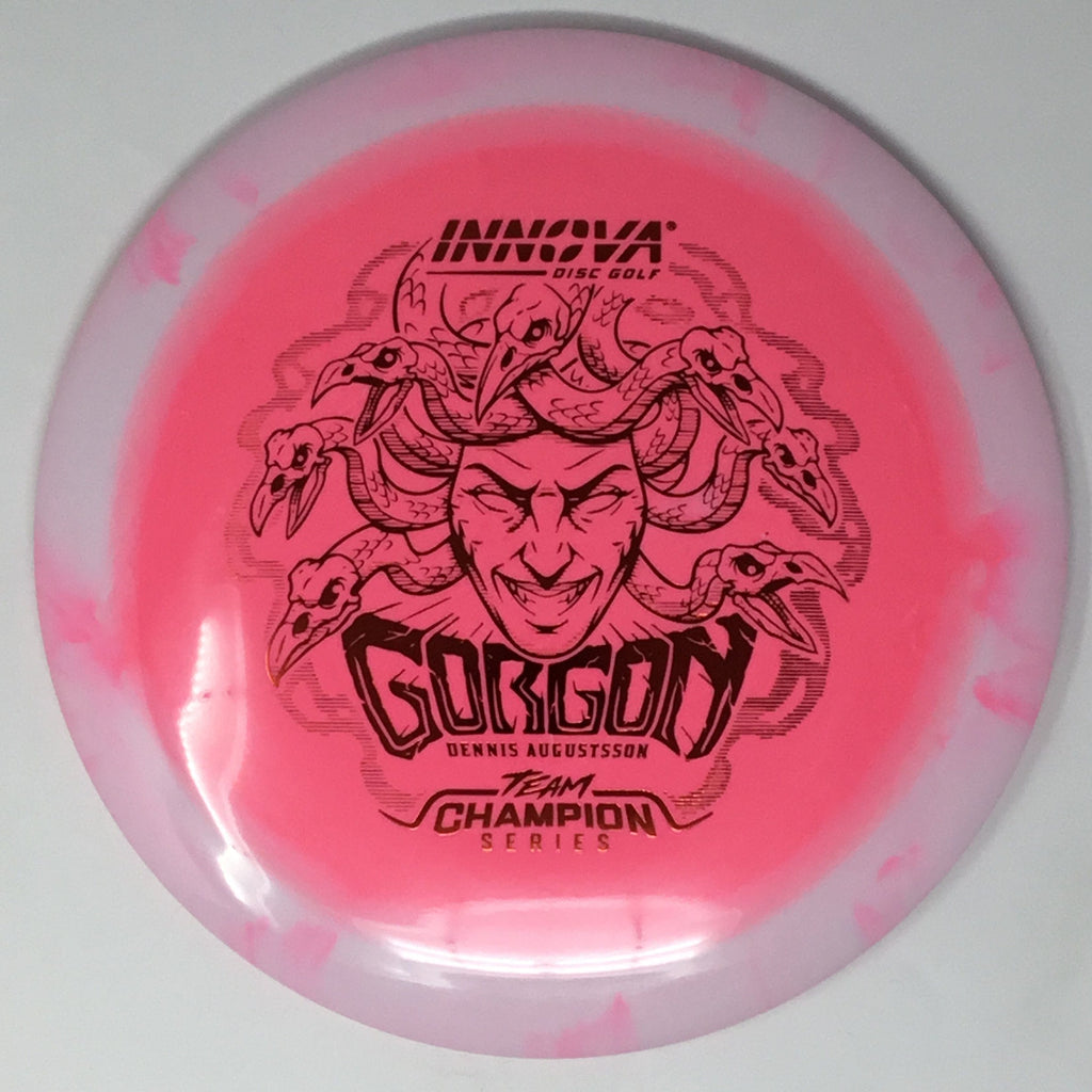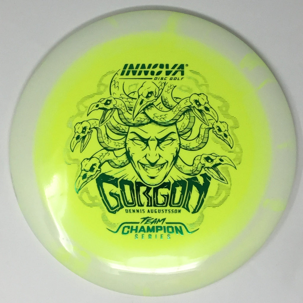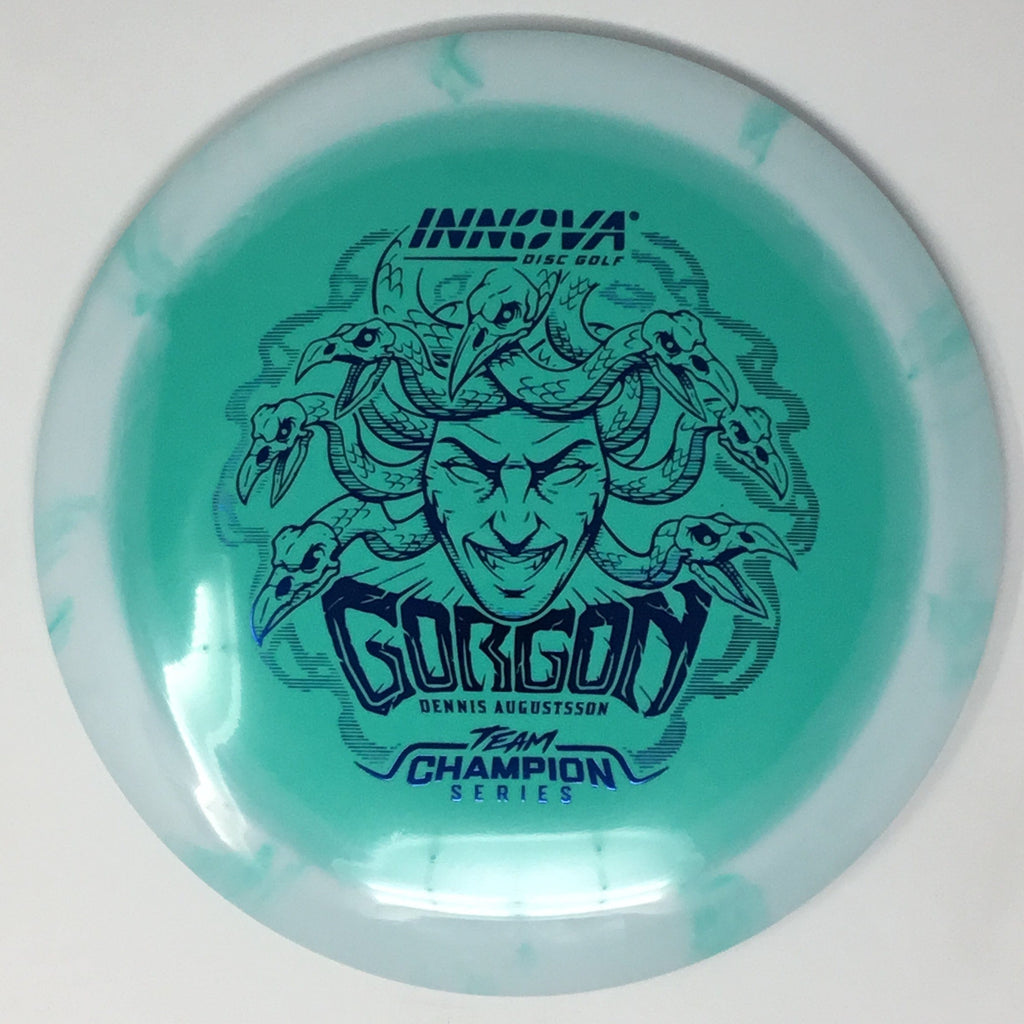 The Gorgon, a disc that merges the feel, precision, and ease of a fairway driver with the reach of a distance driver. Its flight? Arrow-straight glide with a steadfast fade, mirroring the Gorgon's unwavering gaze. Experience the legend—drive like a deity, conquer the course.