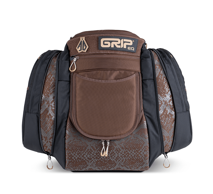 GRIPeq is proud to team up with Anthony and Discraft to create his first-ever Signature Series Bag. Inspired by his Arizona roots and lifelong love of reptiles, Anthony’s bag features a deep brown base with bold black accents and a snake-skin design that makes it stand out from the pack. It’s equal parts style and edge, just like AB’s game.