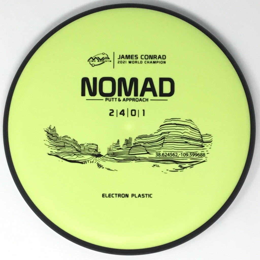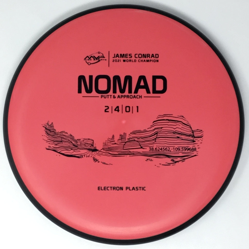 Designed by the World Champion himself - the Nomad has everything James Conrad desires in a putter. From the depth and shoulder height, all the way down to the size of the small bead - the Electron Nomad is James’ vision of an ideal putter. Expect a neutral flight inside the circle, with some fade kicking in at circle two - making the Nomad great at holding anhyzer or hyzer angles when need be. The Nomad is exactly how James wants a putter to feel in his hand, and exactly how he wants them to fly. Comfortable, with a clean and consistent release, the Nomad is ready for your disc golf journey - how far will you take it?