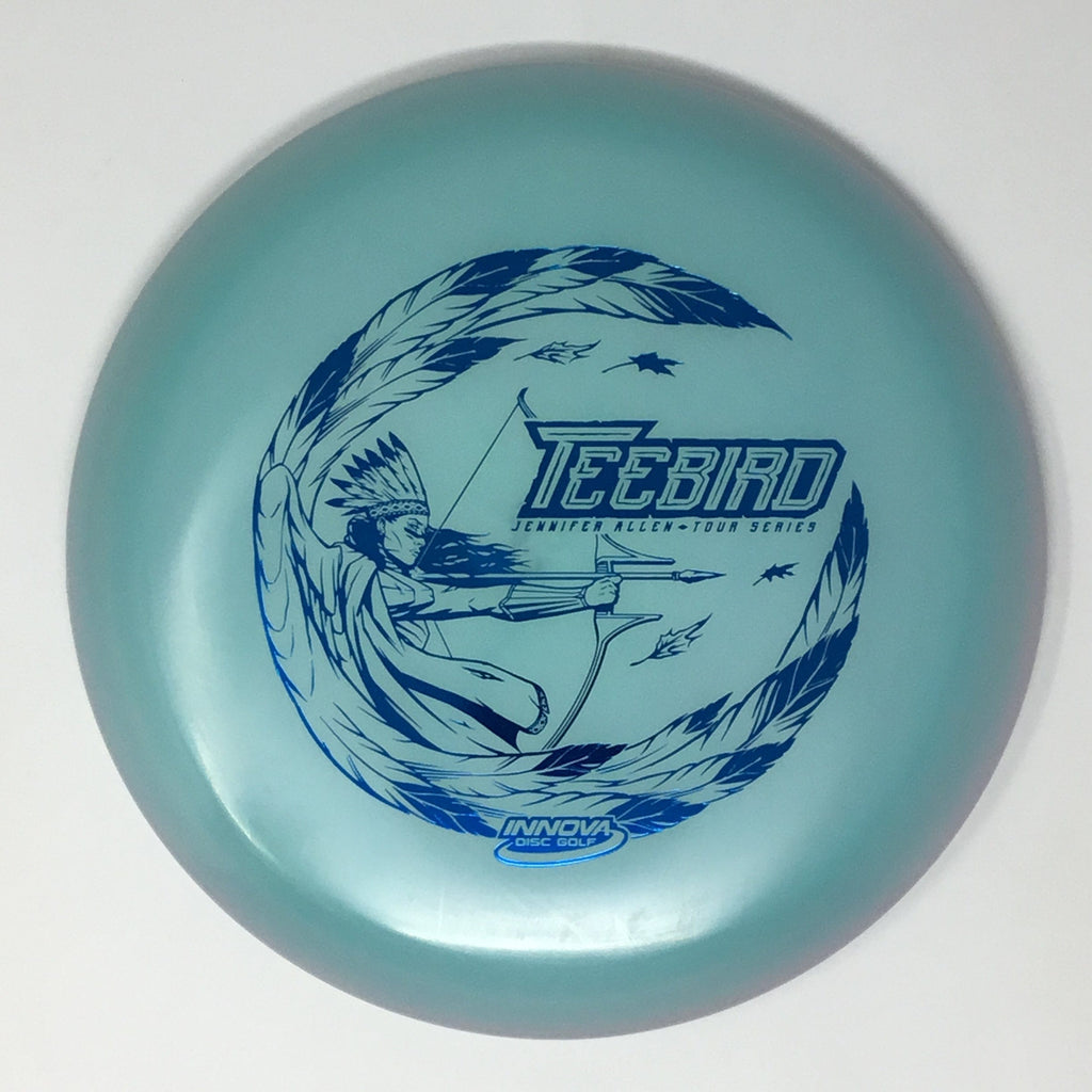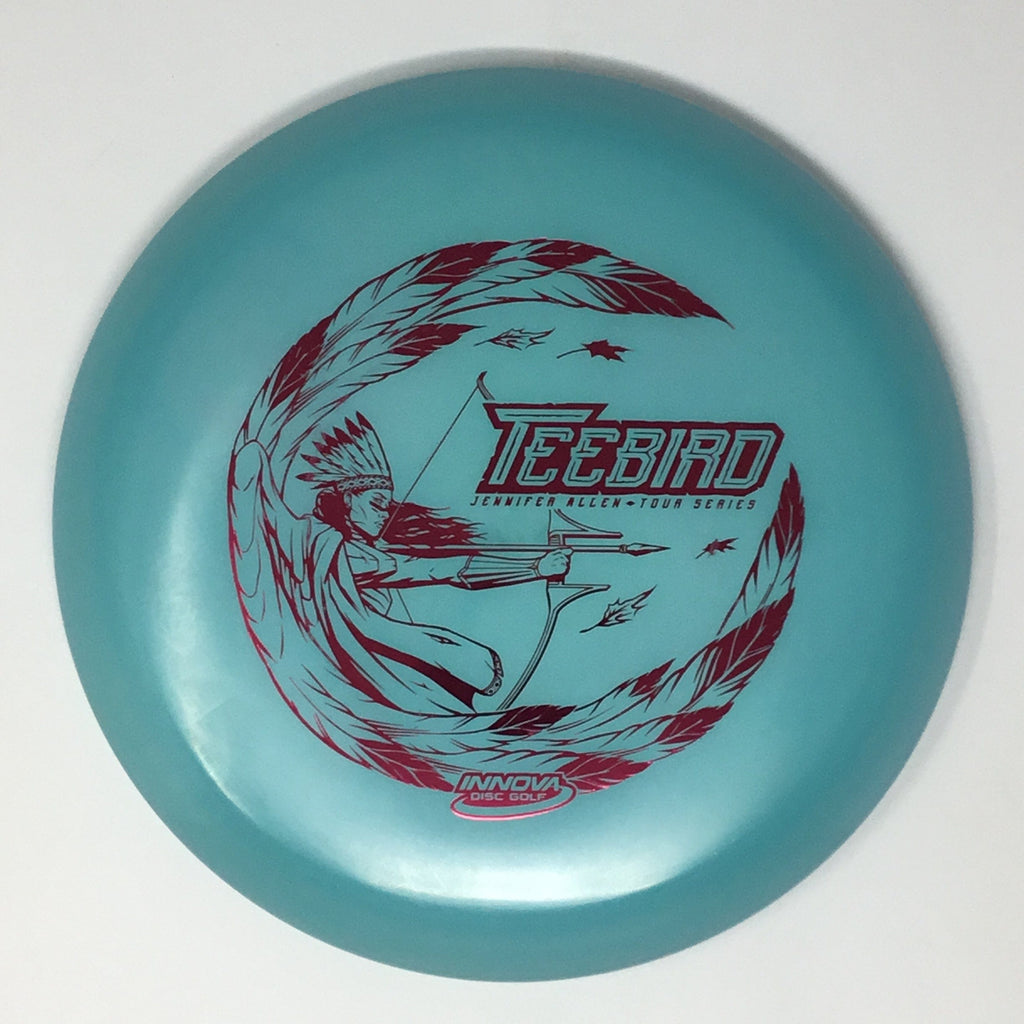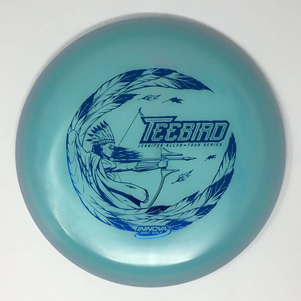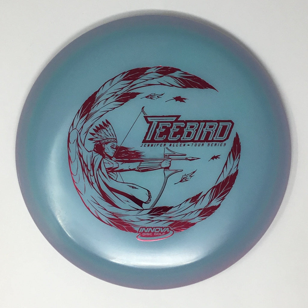 Jennifer Allen 2022 Tour Series: Team Star Captain Jen Allen trusts the Champion Color Glow Teebird for her Fairway needs. These have the perfect balance between soft and stiff with a traditional Teebird dome. Jen Allen Teebirds will fly as good as they look. Each disc is a unique combination of colors, with no two exactly alike. Jen Allen will receive a substantial portion of each sale of these discs to assist in her touring efforts.