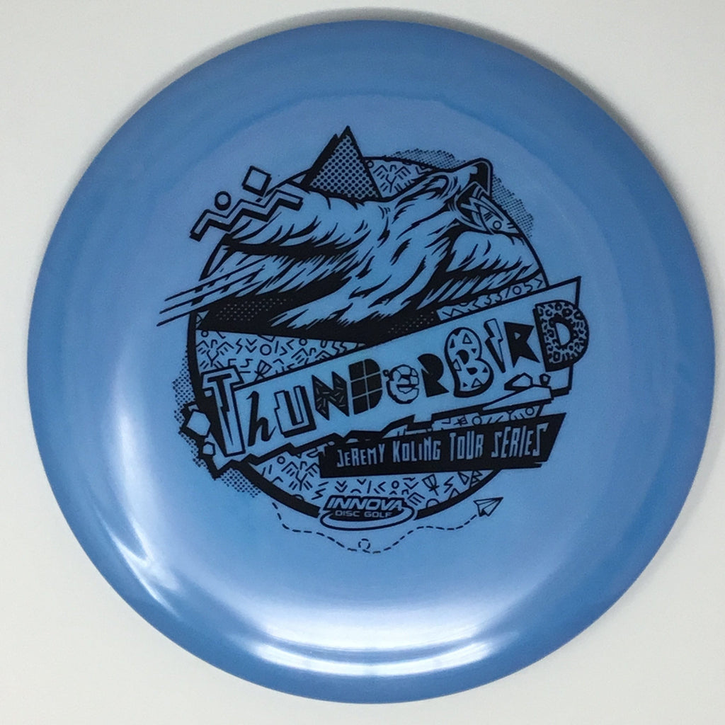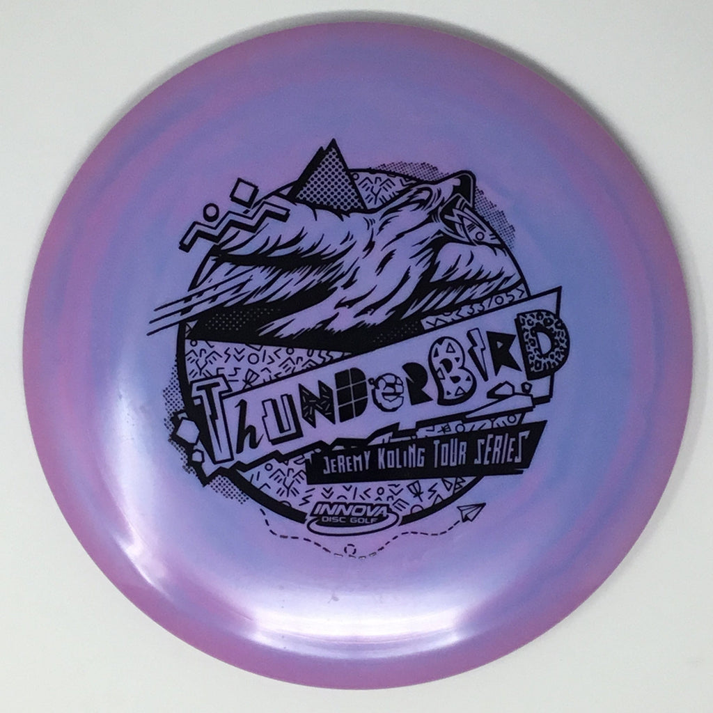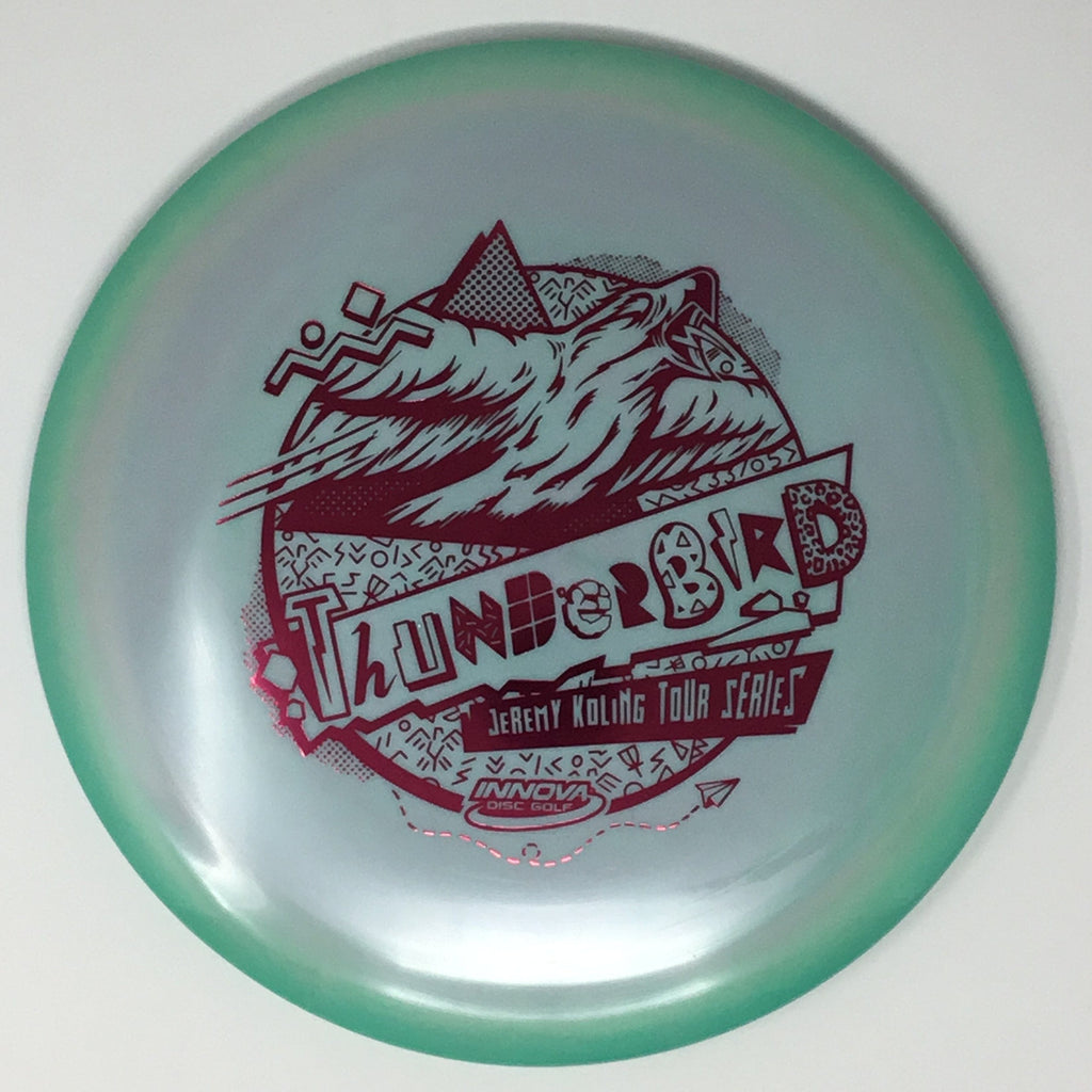 Jeremy Koling 2021 Tour Series: Big Jerm went radically retro with the Thunderbird this year. The Koling Thunderbird is just stiff enough for all the flicks while being soft enough to give you all the feel in the flight plate one would need to smash a backhand. As the Koling Thunderbird is known for, these have a bit more stability than your standard Thunderbird. A substantial portion of each sale will benefit Jeremy Koling and his touring efforts.