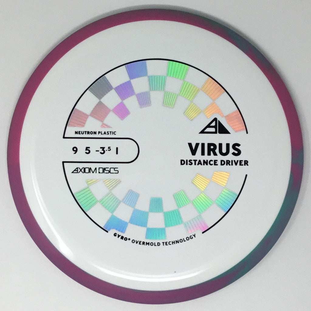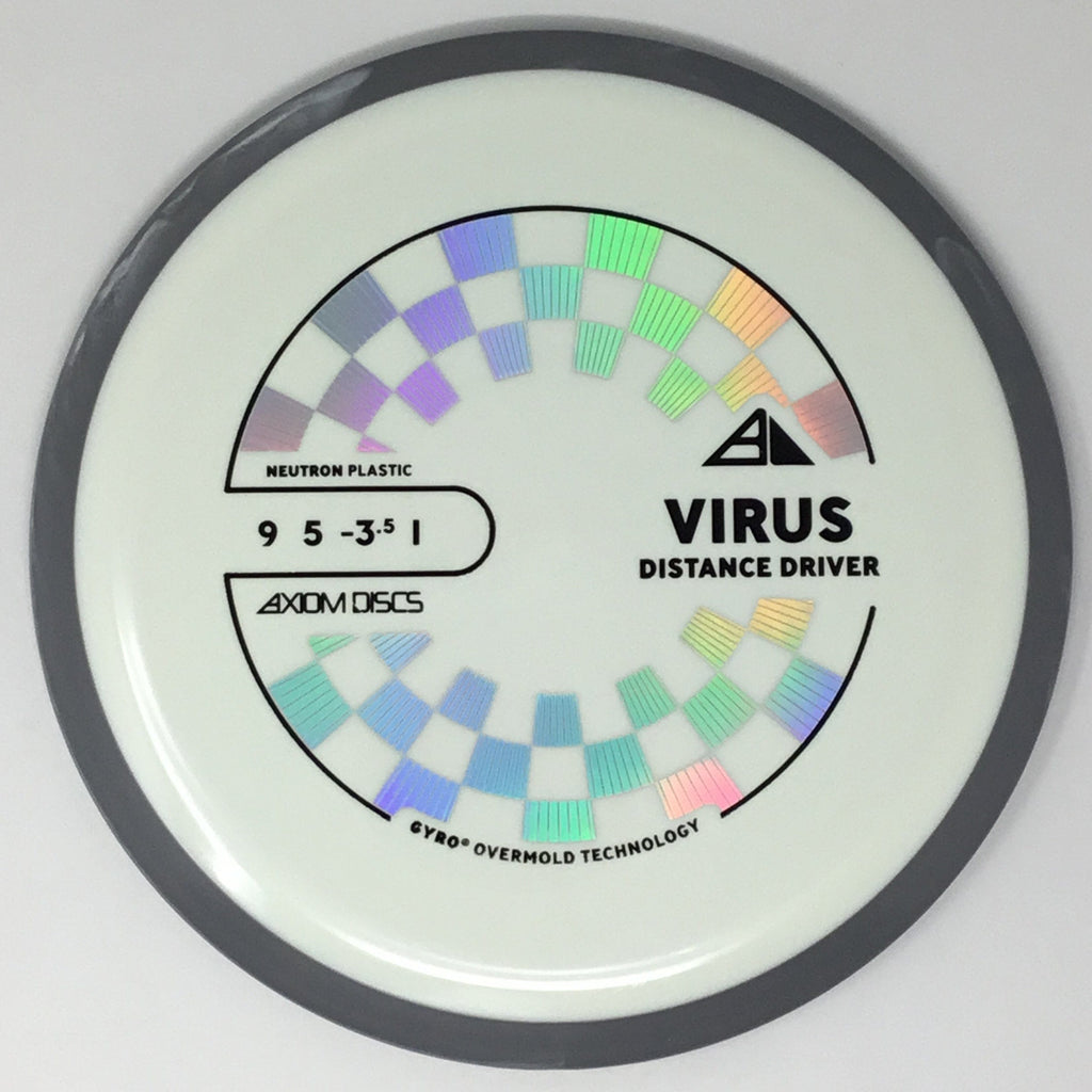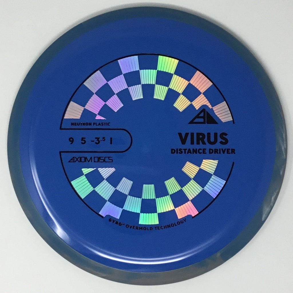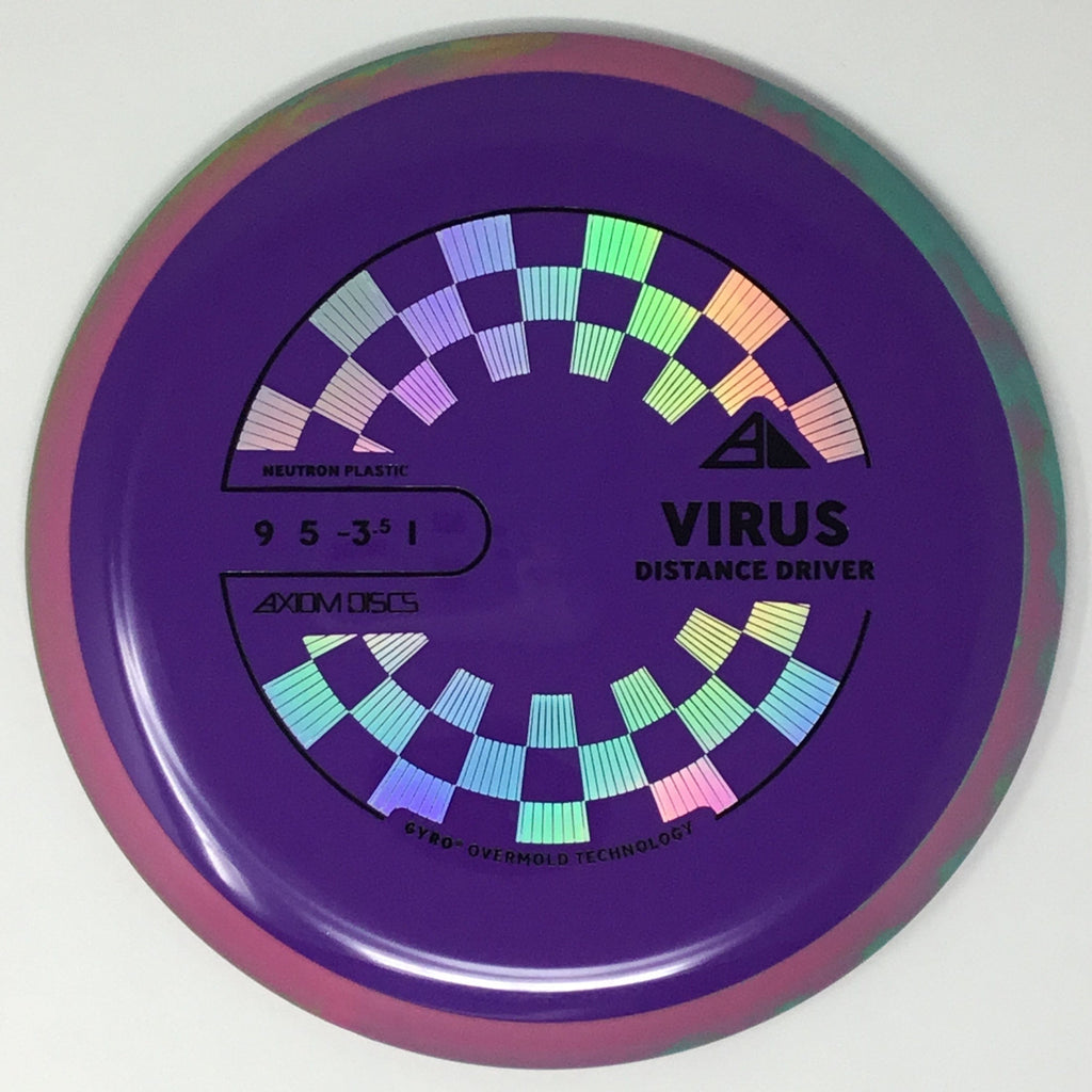 The Virus is an understable distance driver. The Virus is Axiom’s easiest to throw distance driver, with a glide and responsive understability that keeps it in the air. Power throwers will be able to flex huge turnover shots with straight forward fade. Average throwers will be able to extend and shape lines using the Virus’ turn and gentle fade. Compared to the MVP lineup, the Virus resembles a worn-in Impulse.